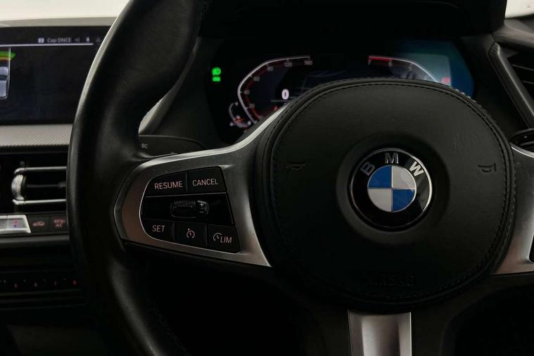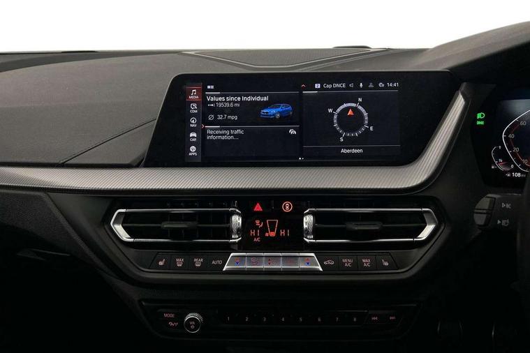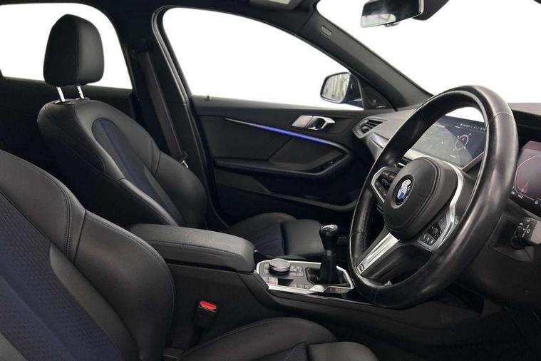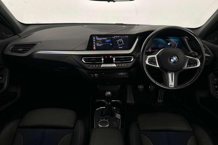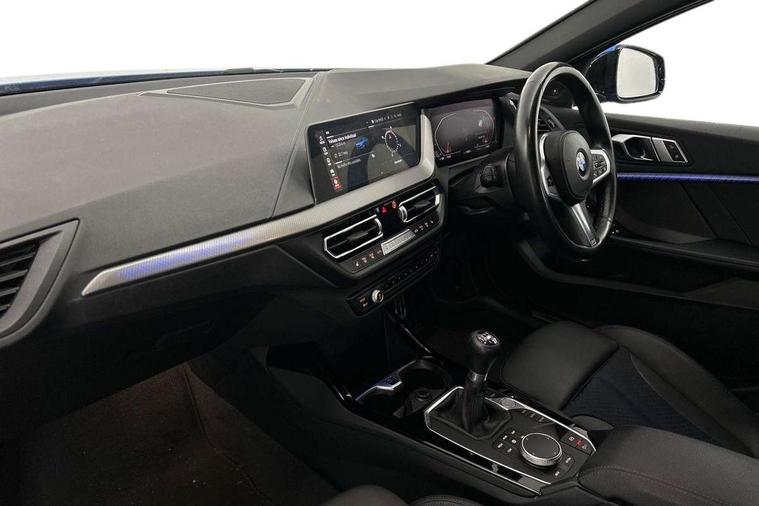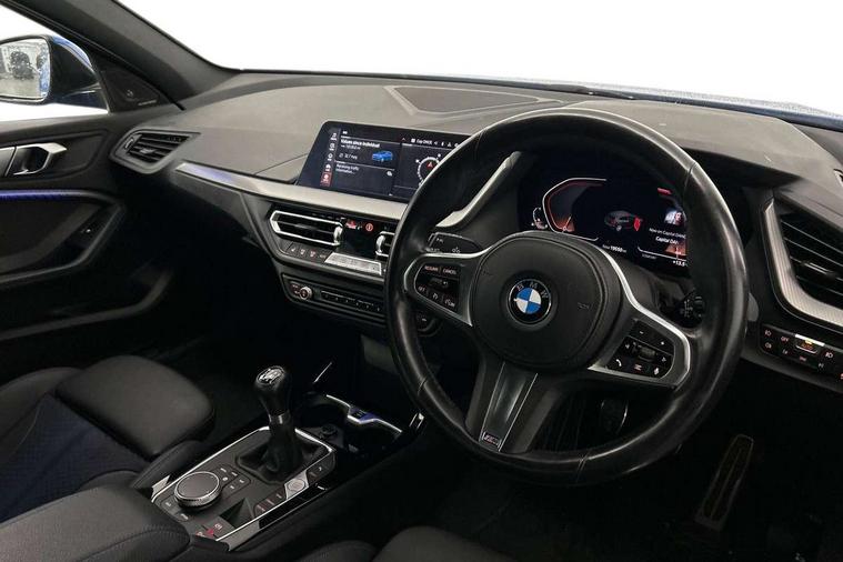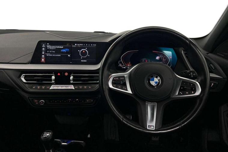 Active guard plus, Attentiveness assist, Bluetooth / WiFi interface for wireless connection of mobile terminal devices and audio streaming, BMW ConnectedDrive online services, BMW Teleservices, Check Control warning system for monitoring of lights and door/luggage compartment open warning, Cruise control with brake assist, Eco pro mode, Front axle single joint with specific axle kinematics to minimise drive influences on steering + provide increased rigidity agile driving behaviour, Head up Display, Integrated owners handbook, Lane departure warning system, Oil sensor for level and grade, On board computer, Optimum shift indicator, Park assist including reversing assistant, lateral parking aid and reversing assist camera, Personal Profile, Pull away assistant, Rigidly mounted rear subframe - Multi link construction with separate spring / damper configuration and excellent driving characteristics, Speed limit Info including no-overtaking indicator, Speed limiter, 6 speed manual transmission, Aluminium lightweight construction, Anti roll bar front and rear, Balancer shaft, Double VANOS twin scroll turbocharging system, Drive Performance Control, Electronic differential lock, High precision injection, M sport suspension, Petrol Particulate Filter, Twin tube gas filled shock absorbers with degressive characteristic curve, VALVETRONIC engine management, DAB Digital radio, Stereo speaker system with 2 mid range speakers in the front door trims and rear parcel shelf + 2 central bass speakers underneath the front seats, Auto dimming rear view mirror, Automatic headlight beam throw control, Automatic windscreen wipers and automatic headlight, BMW adaptive LED headlights, BMW individual high gloss shadow line with extended content, Body colour door handles, Body colour mirror caps, Body colour roof trims, Chrome 'M' logo side designation, Chrome exhaust twin tailpipes round 90mm in left, Chrome kidney grille frame with Satin Aluminium struts, Direction indicator side lights in exterior mirrors, Fading support, Folding side mirrors with auto dimming/folding wing mirrors with auto dimming, Follow me home headlights, Front and rear bumper system with replaceable deformation elements, Front and rear electric windows with open and close fingertip control, anti trap facility and comfort closing, Front door sill finishers in black plastic with M designation in metallic look, Green tinted heat protection glazing, Heated, electrically adjustable exterior mirror aspheric on driver side, convex on passenger side, High beam assistant, High gloss shadowline window frame, Recess cover mirror frames and B/C pillar embelisher trim, High level third brake light, Integrated front windscreen with washer jets, LED daytime running lights, LED eyebrow turn indicators, LED front fog lights, Lightweight engineering, M Sport spoiler, Matt black air guide grilles, Matt black wheel arch trim, Model designation on electric bootlid, Nearside reverse light in rear light cluster, Preparation for high beam assistant, Rear fog lights, Rear side wing doors, Rear window wiper, Shark fin antenna, Sun protection glass, Trailer stabilisation logic, Visible VIN plate, Welcome lighting, 12V power socket in front centre console with blanking plug, 3 rear seat head restraints, 3 seat bench in 2nd row, 3 spoke sports leather steering wheel in black leather with black stitching and decorative finisher in pearl chrome, specific M badge + leather knob, Ambient interior lighting, Anthracite headlining, Child seat ISOFIX attachment for two outer rear seats and front passenger seat with anchorage points, Conditioned based service, Driver and front passenger seat heating, Floor mats in anthracite velour with contrasting colour seam to match contrast stitching on instrument panel, Folding rear clothes hook, Four grab handles integrated in roof lining, Front and rear door pockets with bottle holders, Front and rear side armrest integrated into door trim, Front armrest, Front sports seats, Gearshift lever with M designation, Glove compartment, Height adjustable front head restraints, Luggage compartment for bag hooks on left and right, foldable luggage compartment liner and two lashing eyelets, Manual adjust steering wheel, Multi-function controls for steering wheel, Single front passenger seat, Storage compartment in centre console, Sun visors with vanity mirrors and insert tab, Two front centre console cupholders, Two zone automatic air conditioning, Additional interior lighting pack - 1 Series, Additional storage compartment pack with code 493 -1 series, BMW live cockpit professional pack- 1 Series, Connected pack professional - 1 Series, Interior lights pack - 1 Series, M Sport exterior styling aerodynamics pack - 1 Series, 2 tone horn, 3 point seatbelts on all seats, front pyrotechnic belt tensioners, stopper and belt force limiters, rear coded belt buckles, Airbags - Front driver/passenger, front and rear curtain head protection, front side, manual deactivation of front passenger airbag, Anti lock braking system (ABS) with brake assist, BMW emergency call, Brake drying, Braking readiness, Child proof locking system in rear door, City braking function, Comfort modes, Cornering brake control, Crash sensor activating central locking release, hazard warning lights, fuel cut off, interior lighting + activation of safety battery terminal clamp, Driver and front passenger seat belt security check, Dynamic stability control + (DSC+), Dynamic Traction Control - DTC, Electrically operated hand brake, Front and rear disc brakes, M Sport brakes with blue calipers M designation in front, M Sport seatbelts, Seatbelt warning, Side impact protection, Tyre pressure monitoring system, Warning triangle and first aid kit, Central locking switch for all doors, fuel filler cap and luggage compartment, Deadlocking function system to all doors, Drive away locking system on all doors and luggage compartment with de-activated in iDrive settings, Locking wheel bolts, Re