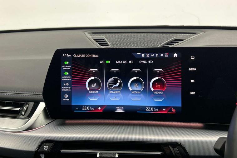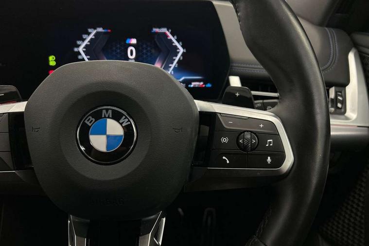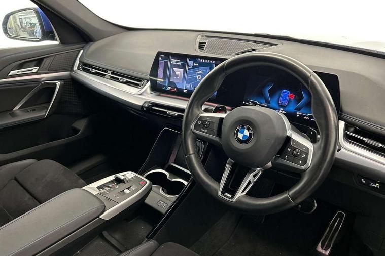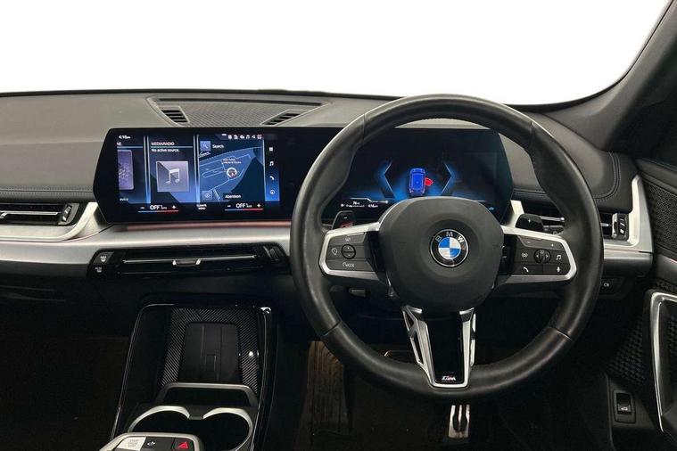 Active Guard + lane departure warning, speed limiting, front collision warning, Left turn warning with brake function and evasion assist, Attentiveness assist, Automatic start/stop function, BMW Live Cockpit Plus with 10.25" instrument cluster and 10.7" display, BMW Online services, BMW Teleservices, Brake pad wear indicator, Condition based service, Connected eDrive Services, Drive off assistant, Electrically opening/closing tailgate with opening/closing with remote control and contactless opening and closing, iDrive controller, Language version English, My Modes, Parking Assistant with Reversing Assistant, active PDC, Lateral Parking Aid, Rear View Camera and Park Distance Control, Personal Profile - automatic lock when driving away selectable, Servotronic PAS, Tyre puncture warning system, Widescreen display, Wireless charging, M Adaptive suspension, Performance Control, Petrol Particulate Filter, Steptronic transmission with double clutch and gear shift paddles, xDrive intelligent four wheel drive system, DAB Digital radio, Auto dimming interior rear view mirror, Badge on engine compartment lid and tailgate, Contoured rear roof spoiler in vehicle colour with side aeroblades in black high-gloss, Dynamic brake lights, Electric adjustable heated door mirrors, Electric windows - front and rear, with open/close fingertip control, anti-trap facility and comfort closing, Folding door handles integrated flush with surface, Folding wing mirrors with auto dimming, Follow me home headlights, Front and rear bumper panel with M specific design, in body colour with inserts in black high gloss, Front door exit lights, Front entry sills aluminium inserts with M inscription, Heated rear window, High gloss shadow line includes B-pillar trim panel/window cavity cover/window frame/window guide rail front doors/door mirrors in high gloss black, Invisible exhaust tailpipe, Key with M identification, LED 3rd brake light integrated in rear spoiler, LED daytime running lights, LED number plate light, M identification on the sides, M roof rails high gloss shadow line, M specific radiator grille in satinated aluminium, Matt black roof strips, Model inscription on right tailgate, Rain sensor including auto headlights activation, Rear side wing doors, Rear wiper, Side sill covers with M specific design in body colour, Trailer stabilisation logic, Welcome lighting, Windscreen washer nozzle for rear view camera, Windscreen wipers with front and rear heated washer nozzles, 12V - Power sockets with front centre console and luggage compartment, 2 cup holders in front, 2 x USB Type C ports for charging and data transmission (front centre console) and 2 x USB Type C ports for charging (rear centre console), 3 rear headrests, 3 seat bench in 2nd row, 3 upper retaining strap clips integrated into rear panels of seat backrests, 40:20:40 split folding rear seats, Ambient interior lighting, Anthracite headlining, Anthracite Velour front and rear floormats, Bottle trays in all doors, Child seat ISOFIX attachment for two outer rear seats and front passenger seat with anchorage points, Clothes hook rear, Driver and front passenger heated seats, Dual zone automatic air conditioning, Front and rear door pockets, Front centre console storage compartment, Front sports seats, Front/rear adjustable head restraints, Glove compartment, Light on right in luggage compartment, M sport leather steering wheel, Manual steering column height and depth adjustment, Map pockets, Middle centre console storage compartment, Rear armrest in door trim panel, Single front passenger seat, Sport leather multifunction steering wheel with thumbrests and operation of instrument display, audio, telephone and driver assistance, Storage compartment with folding cover under centre console armrest cushion, Connected Package Professional - X1, Technology pack - X1, ABS/EBD, Automatic hold function, Automatic Stability Control (ASC), BMW emergency call, Braking readiness, Cornering brake control (CBC), Crash Sensor - activates hazard/interior lighting + unlocks doors, Driver/Front Passenger airbags, Driver/front passenger side airbags, Dry braking, Dynamic stability control + (DSC+), Electromechanical parking brake, Energy recovery system, Front and rear brake discs, Front and rear head airbags, Front passenger airbag deactivation, Integrated brake system, PC iBrake PostCrash approach control warning with light braking function, Rear door child safety locks, Three point seat belts in all seats, Tyre pressure monitor, Warning triangle, Alarm system with tilt sensor, monitoring doors, bonnet interior and tailgate, Closing system with central locking, Locking wheel bolts, Luxury instrument panel, Tyre repair kit (including Tyre sealant and 12V Compressor),