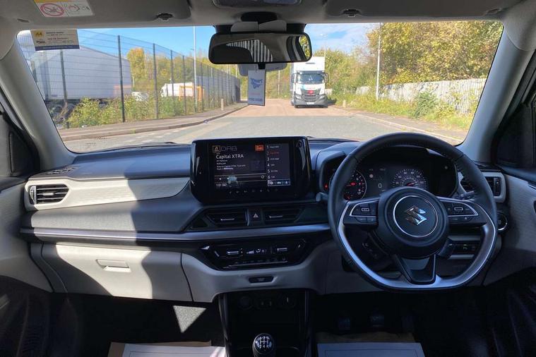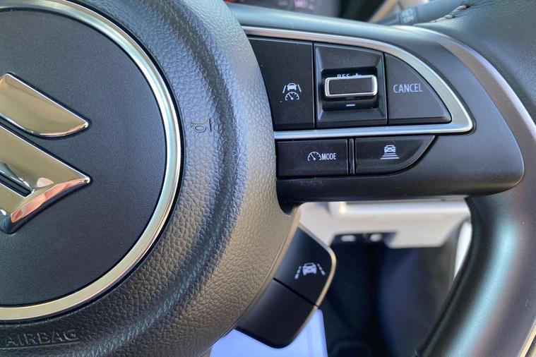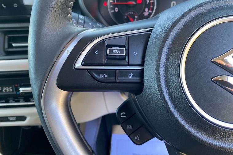 Adaptive cruise control, Automatic start/stop system, Blind spot monitoring, Colour LCD information display, Digital clock, Driver monitoring system, eCall, Fuel consumption display (average/instantaneous) and range display, Intelligent speed control support, Lane departure prevention, Lane departure warning system, Lane keeping assist (LKA), Low fuel level warning light, Navigation system, Outside temperature display, PAS, Rear cross traffic alert, Rear parking camera, Rear parking sensors, Remote fuel cap release, Smartphone integration with Apple CarPlay and Android auto, Suzuki connect, Tailgate, Traffic sign recognition, Weaving alert, 4 speakers + 2 tweeters, 9-inch infotainment display, Auxiliary input socket, Bluetooth audio streaming, DAB Digital radio, Steering wheel audio controls, USB Type A and C, 'Guide me home' headlamps, 1 speed with intermittent rear wiper + washer, 2 speeds front wiper with intermittent + washer, Automatic headlights, Black coloured A & B pillars, Black Upper and lower front grille, Body colour door mirrors and handles, C pillar trim moulding, Door mirrors with built-in turn signal lamp, Electric door mirrors, Electric folding door mirrors, Electric front windows, Electric rear windows, Green tinted glass, Heated door mirrors, High beam assist, LED daytime running lights, LED High mounted stop light, LED number plate light, LED position lamps, LED projector headlamps, LED rear combination lamp, Manual headlamp level control, Rain sensor, Rear fog lights, Rear privacy glass, Rear side wing doors, Rear spoiler, Side spoiler, 1 cup holder in rear, 12V Accessory socket in front console, 2 cup holders in front, 2 Isofix seat anchors, 3 bench rear seats in 2nd row, 3 rear head restraints, 3 spoke leather covered steering wheel, 60/40 split rear seats, Accessory socket, Automatic air conditioning, Centre console storage, Centre lower box, Child seat tether anchorages x 2, Chrome handbrake release button, Chrome interior door handles, Cloth upholstery, Door pockets with bottle holder, Driver/passenger sunvisors with ticket holders + vanity mirrors, Front cabin lights, Front headrests, Front map light, Front passenger side assist grip, Glovebox, Heated front seats, Heater, Height adjustable driver's seat, Luggage area lamp, Painted interior door trim ornament, Parcel shelf, Passenger seat back pocket, Pollen filter, Rear assist grips x2, Rear heater duct, Single front passenger seat, Tilt adjustable steering wheel, Tilt/telescopic adjustable steering wheel, 3 point ELR seatbelts for centre seat, 3 point ELR seatbelts front and rear, ABS+EBD+Brake assist, Curtain airbags, Driver airbag, Dual sensor brake support, ESP + traction control, Front and rear seatbelt reminder, Front passenger airbag, Front passenger airbag deactivation, Front seat seatbelts shoulder height adjuster, Front seatbelt pretensioners with force limiters, Hill hold control, Rear child proof door locks, Rear seatbelts with pre-tensioners and load limiters, Side airbags with incorporated into front seats, Tyre pressure indicator, Deadlocks, Freewheeling key cylinders, Immobiliser, Keyless entry and start, Light - on and Key in reminder, Locking wheel nuts, Remote central locking, Painted instrument panel ornament, 16" Polished alloy wheels, Emergency flat tyre repair kit,