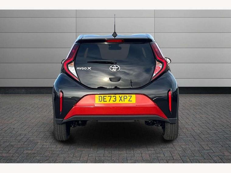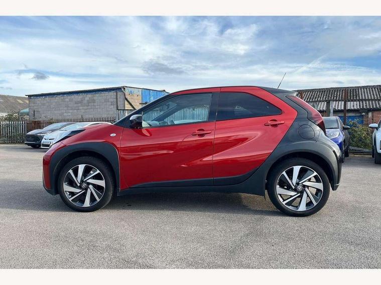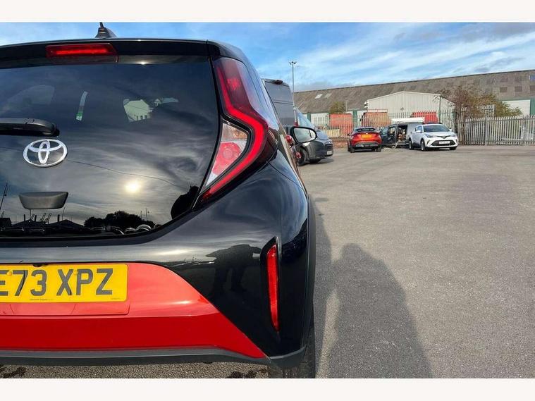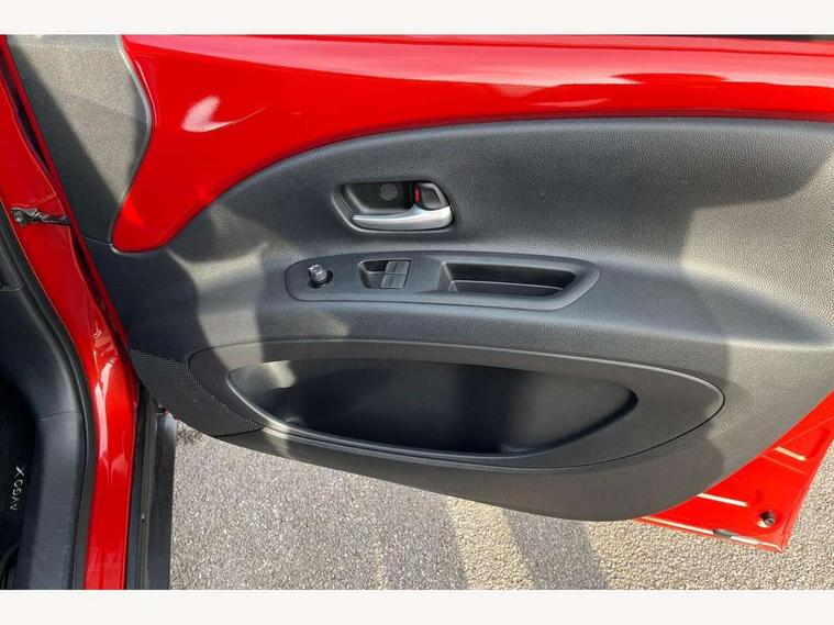 4.2" TFT colour screen, Adjustable speed limiter, Analogue speedometer, Bluetooth connectivity, Digital tachograph, Driver attention alert system, eCall emergency call system, ECO-driving indicator, Electric power steering, Intersection turn assist, Key reminder warning, Noise reduction kit, Pre collision system with emergency steering assist, Reversing camera with static guide lines, Smart phone integration with Apple car play/Android Auto, Speed limit display, Start and stop, Vehicle Stability Control (VSC), 4 speakers, DAB digital audio broadcast, Toyota touch 2 multimedia System with 8" Screen display, USB connector, Auto headlights, Auto wipers, Automatic headlights cut-off, Bicycle towing hook, Black side protection mouldings, Black wheel arch mouldings, Body colour door handles, Body coloured front bumper, Boot door scuff plate, Eclipse black rear bumper, Electric heated door mirrors, Follow me home headlights, Front fog lights, Front power windows, Gloss black door mirrors, Gloss black upper front grille, Headlight cut-off reminder, LED daytime running lights, LED front light guide, LED High mounted stop lamp, Manual day/night rear view mirror, Manual headlight levelling, Pagoda roof, Power adjustable door mirrors, Power back door, Privacy glass, Projector halogen headlights, Rain sensor, Rear combination lights LED bulb type, Rear side wing doors, Rear windscreen defogger, Rear windscreen wiper, Short antenna, Variable intermittent windscreen wipers, 12v power outlet - front, 2 seat bench in 2nd row, 3 spoke leather steering wheel, 50/50 split folding rear seat, Adhesive roof headlining, Adjustable speed limiter switch on steering wheel, Audio and telephone switches on steering wheel, Auto air conditioning, Black insert on steering wheel, Black roof lining, Boot light, Centre room light, Chrome interior door handles, Chrome surround on air conditioning buttons, Clean air filter, Console box storage in body color, Fabric upholstery, Floor mats, Front and rear cup holders, Front head rest deco art, Front head restraints, Gear shift indicator, Height adjustable driver seat, Intelligent adaptive cruise control switch on steering wheel, ISOFIX child restraint system on rear seats, Lane departure alert switch on steering wheel, Leather gearshift knob, Manual tilt steering wheel, Manually reclining and sliding driver seat, Manually reclining and sliding front passenger seat, Multimedia switches on steering wheel, Pollen filter, Rear door pockets, Rear head restraints, Satin silver insert on gear shift knob, Single compartment glovebox with lights, Single front passenger seat, Soft tonneau cover, Sun visors with mirror on driver and passenger side, Voice recognition switch on steering wheel, Toyota safety sense pack - Aygo X, Anti lock braking system + Electronic brake force distribution, Child safety door lock, Emergency brake light signal (EBS), Hill start assist control (HAC), Passenger airbag on/off switch, Seat belt reminder for front and rear seats, Supplement restraints system (SRS) - 6 airbags, Traction control, Tyre pressure warning system, Immobiliser, Remote power door locks, Black wheel centre caps, Tyre repair kit,