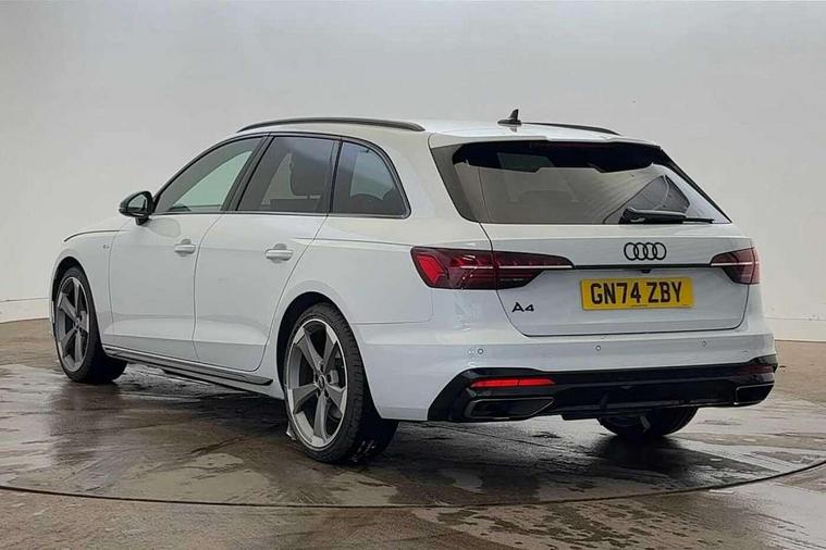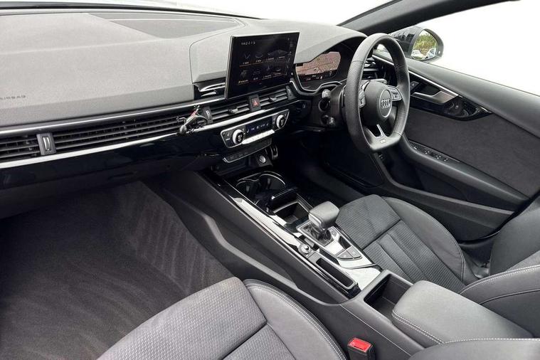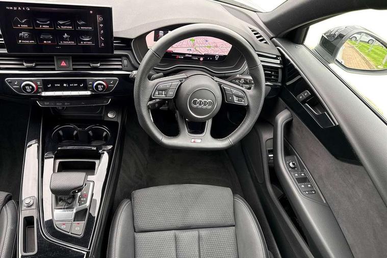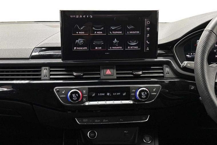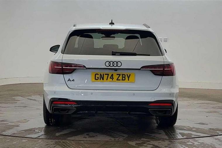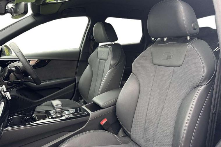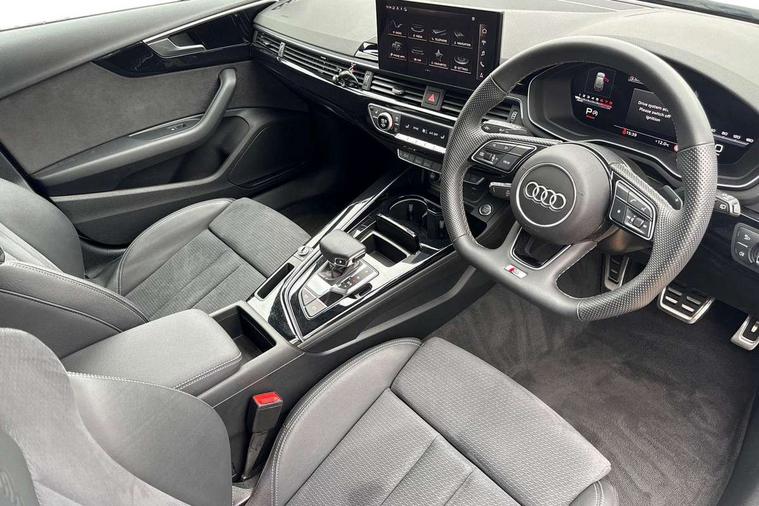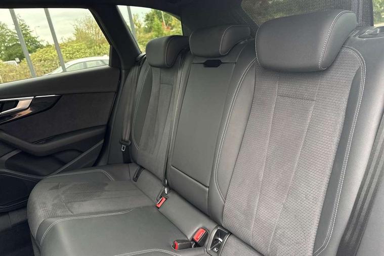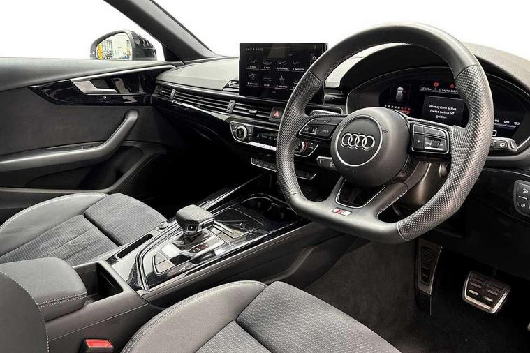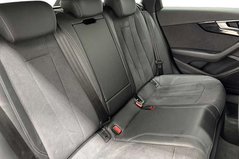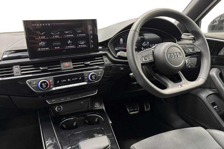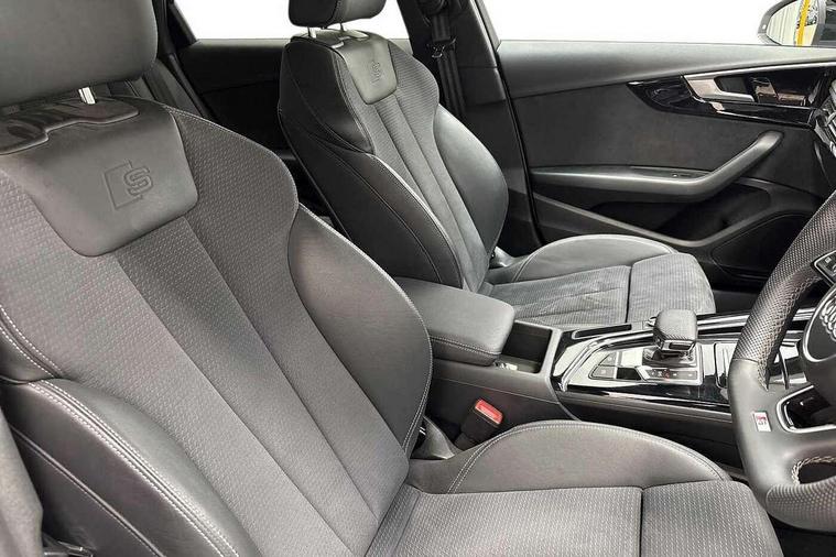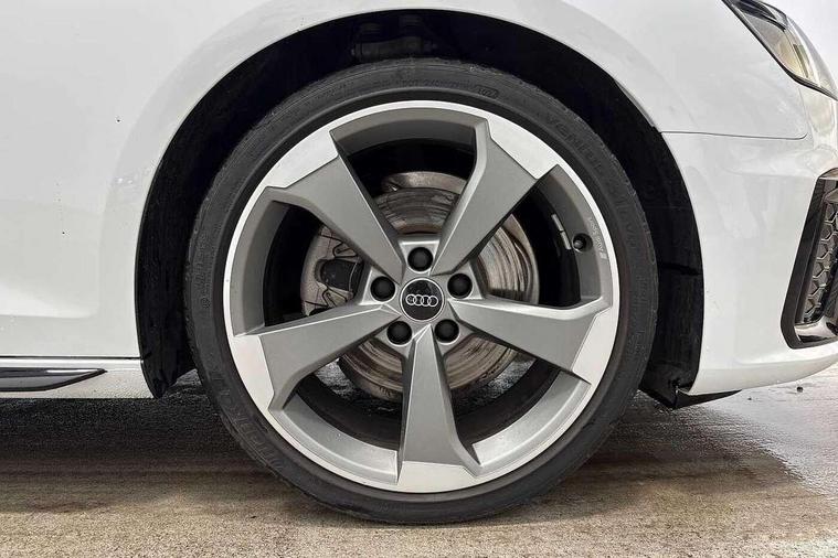Audi connect safety and service (e-call), Audi drive select, Audi smartphone interface, Audi virtual cockpit, Automatic start-stop system with coasting functionality and efficiency programme, Bluetooth interface, Camera based traffic sign recognition, Electromechanical power steering, Email, calendar and text messages displayed via MMI, Front and rear parking sensors, Lane departure warning, MMI Navigation plus with MMI touch includes 10.1" high resolution colour MMI display, 3D map, Power operated tailgate, Rear view camera, Voice control system, 54 litre fuel tank, Sports suspension lowered by 23mm, 2 USB charging ports, 8 passive loudspeakers, DAB digital radio reception, Audi beam uses LEDs to project the audi logo onto the ground as you exit your A4, Auto dimming rear view mirror, Black Audi rings and black badging (with removed engine badging), Body colour door handles, Body colour front spoiler lip, Body colour side sill trim, Electric adjustable/heated/folding door mirrors with auto dimming, Exhaust tailpipes in dark chrome, Grained matt black side air inlets with matt aluminium silver inlay, High beam assistant, High gloss black B pillar trims and triangular rear door trim, LED headlights with LED rear lights + dynamic rear indicators + headlight adjustment and high beam, turning light + LED daytime running lights, LED third brake light, Privacy glass, Rain and light sensors, Rear diffuser in matt black with trim strip in matt aluminium silver, Rear side wing doors, Rear wiper, RS4 rear spoiler in body colour, S Line roof edge spoiler, Sport front and rear bumpers with side skirts, Variable intermittent front wash/wipe, Windscreen with acoustic glazing, 4 way electric lumbar support for driver and front passenger, 40/20/40 split folding 3 rear seat bench in 3 parts with rear centre armrest, Black carpets, Black cloth headlining, Black perforated leather gearknob, Contrast stitching on seats, steering wheel and gear lever gaiter, Deluxe 3 zone electronic climate control, Electric load area cover, Front and rear head restraints, Front centre armrest, Heated front seats, Illuminated door sill trims with S logo, ISOFIX child seat mounting and top tether, Manual seat adjustment, Single front passenger seat, Stainless steel pedals and foot rest, Black styling pack - A4 Avant, LED Interior light pack - A4/S4, 3 rear seatbelts, 6 airbags - Driver, front passenger, curtain and side windows, Attention and drowsiness assist, Electronic Stabilisation Control (ESC) including ABS, ASR and EDL, Hill hold assist, Multi collision brake assist, Pop-up bonnet for pedestrian protection, Pre sense city, Rear door child safety locks, Seatbelt monitoring, Warning triangle and first aid kit, Anti theft alarm, Anti theft wheel bolts, Central locking, Keyless Go, Piano black finish inlay, Tool kit, Tyre repair kit,