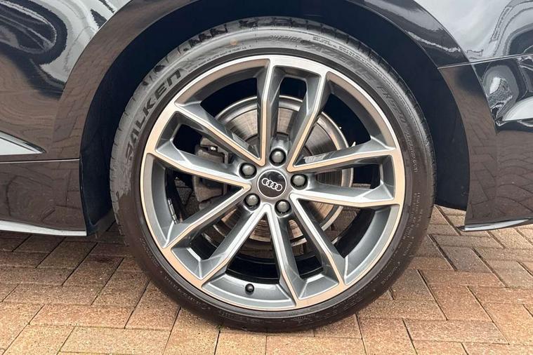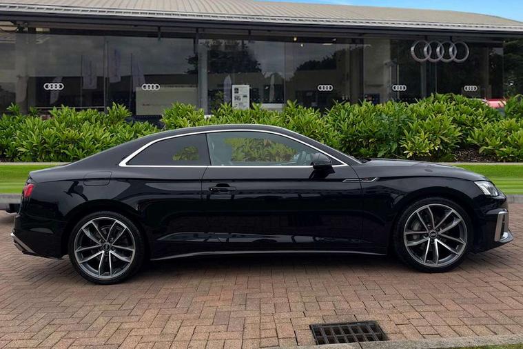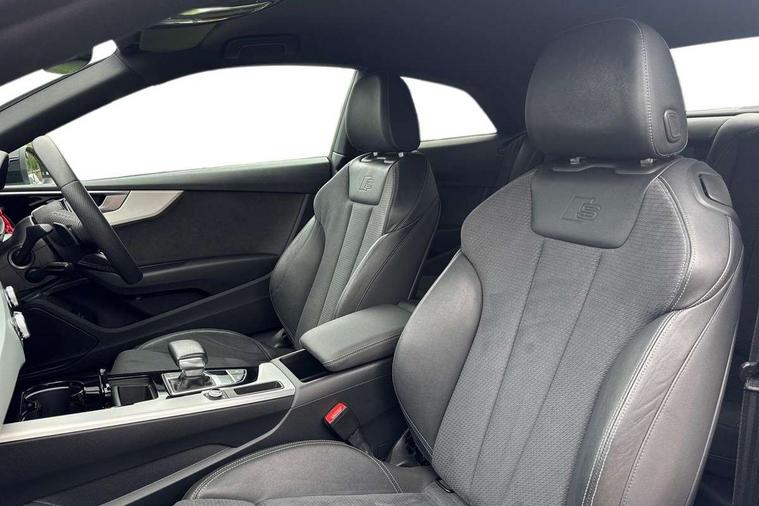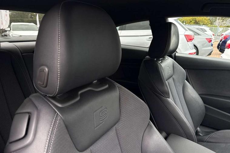 Audi connect safety and service (e-call), Audi connect with Amazon Alexa Integration, Audi drive select (Auto, Comfort, Dynamic, Efficiency and Individual), Audi parking system plus with front and rear sensors, Audi phone box with wireless charging, Audi smartphone interface, Audi virtual cockpit - 12.3" full colour digital instrument cluster, vehicle/engine speed, Radio/media information+Driver assistance systems, Automatic start-stop system with coasting functionality and efficiency programme, Bluetooth interface, Electric boot lid release, Electro-mechanical power steering, Email, calendar and text messages displayed via MMI, MMI nav+ with MMI touch - 10.1" high resolution MMI display, touch sensitive, 3D map, route/country info, dynamic route guide, personal route assist, Rear view camera, Service interval indicator, Voice control system, Sports suspension lowered by 23mm, 8 passive loudspeakers, CD player, DAB digital radio reception, Two additional USB ports for rear passenger in rear centre console, Two SDXC card slots, Audi matrix LED headlights with LED rear lights + dynamic front and rear indicators, Auto dimming rear view mirror, Body colour bumpers, Body colour door handles, Body colour front spoiler lip, Body colour side sill trim, Body coloured door mirrors, Electric adjustable heated door mirrors, Electric folding door mirrors, Electric front windows, Front fog lights, Honeycomb structure radiator grille in grained matt black, LED daytime running lights, Matt aluminium silver tailpipe trim, Privacy glass, Rain and light sensors, S line badges on front wings, S line front and rear bumpers with side skirts, S Line rear diffuser in matt titanium black with trim strip in matt aluminium silver, Side air inlets in grained matt black with matt aluminium silver inlay, Windscreen with acoustic glazing, 4 way electric lumbar support for driver and front passenger, 40/20/40 split folding 2 seater rear seat bench with rear centre armrest, Adjustable steering column, Black cloth headlining, Black perforated leather gearknob, Contrast stitching on seats, steering wheel and gear lever gaiter, Deluxe 3 zone electronic climate control, Front centre armrest, Front head restraints, Front/rear floor mats, Heated front seats, Illuminated door sill trim with S logo, ISOFIX child seat mounting and top tether, Luggage compartment mat, Manual seat adjustment, Rear headrests, Stainless steel pedals, Sunvisors with vanity mirrors, LED interior light pack - A5/RS5, 2 x 3-point rear seatbelts, 6 airbags - Driver, front passenger, curtain and side airbags, Electromechanical parking brake, Electronic Stabilisation Control (ESC) including ABS, ASR and EDL, Front passenger airbag deactivation, Height adjustable front seatbelts, Hill hold assist, Multi collision brake assist, Pop-up bonnet for pedestrian protection, Pre sense city, Seatbelt monitoring, Tyre pressure warning, Variable restraint system, Warning triangle and first aid kit, Anti theft alarm system, Anti theft wheel bolts, Immobiliser, Keyless Go, Remote central locking, Matt brushed aluminium inlays, Tool kit, Tyre repair kit,