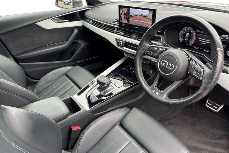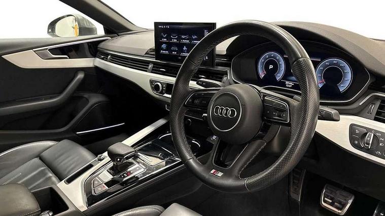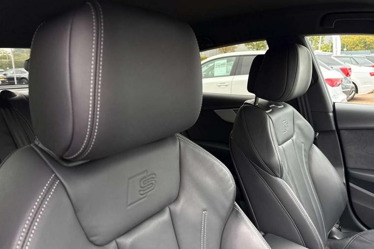 Audi connect safety and service (e-call), Audi connect with Amazon Alexa Integration, Audi drive select (Auto, Comfort, Dynamic, Efficiency and Individual), Audi parking system plus with front and rear sensors, Audi smartphone interface, Audi virtual cockpit - 12.3" full colour digital instrument cluster, vehicle/engine speed, Radio/media information+Driver assistance systems, Automatic start-stop system with coasting functionality and efficiency programme, Bluetooth interface, Electro-mechanical power steering, Email, calendar and text messages displayed via MMI, MMI nav+ with MMI touch - 10.1" high resolution MMI display, touch sensitive, 3D map, route/country info, dynamic route guide, personal route assist, Power operated tailgate, Rear view camera, Service interval indicator, Voice control system, Sports suspension lowered by 23mm, 8 passive loudspeakers, CD player, DAB digital radio reception, Two additional USB ports for rear passenger in rear centre console, Two SDXC card slots, Audi matrix LED headlights with LED rear lights + dynamic front and rear indicators, Auto dimming door mirrors, Auto dimming rear view mirror, Body colour bumpers, Body colour door handles, Body colour front spoiler lip, Body colour side sill trim, Body coloured door mirrors, Electric adjustable heated door mirrors, Electric folding door mirrors, Electric front windows, Front fog lights, Honeycomb structure radiator grille in grained matt black, Kerb-view function for passenger side, LED daytime running lights, LED side indicator lights integrated into door mirrors, LED third brake light, Matt aluminium silver tailpipe trim, Privacy glass, Rain and light sensors, Rear side wing doors, S line badges on front wings, S line front and rear bumpers with side skirts, S Line rear diffuser in matt anthracite black with trim strip in matt aluminium silver, Side air inlets in grained matt black with matt aluminium silver inlay, Variable front intermittent wipers, Windscreen with acoustic glazing, 3 seat bench in 2nd row, 3 spoke high multifunction leather sport steering wheel with paddle shfit and S badging perforated leather grips, 4 way electric lumbar support for driver and front passenger, 40/20/40 split folding 3 seater rear bench seat, Adjustable steering column, Black cloth headlining, Black perforated leather gearknob, Contrast stitching on seats, steering wheel and gear lever gaiter, Deluxe 3 zone electronic climate control, Front centre armrest, Front head restraints, Front/rear floor mats, Heated front seats, Illuminated door sill trim with S logo, ISOFIX child seat mounting and top tether, Luggage compartment mat, Manual seat adjustment, Rear centre armrest, Rear headrests, Single front passenger seat, Stainless steel pedals, Sunvisors with vanity mirrors, LED interior light pack - A5/RS5, 3x3 point rear seatbelts, 6 airbags - Driver, front passenger, curtain and side airbags, Electromechanical parking brake, Electronic Stabilisation Control (ESC) including ABS, ASR and EDL, Front passenger airbag deactivation, Height adjustable front seatbelts, Hill hold assist, Manual child lock in rear doors, Multi collision brake assist, Pop-up bonnet for pedestrian protection, Pre sense city, Seatbelt monitoring, Tyre pressure warning, Variable restraint system, Warning triangle and first aid kit, Anti theft alarm system, Anti theft wheel bolts, Immobiliser, Keyless Go, Remote central locking, Matt brushed aluminium inlays, Tool kit, Tyre repair kit,