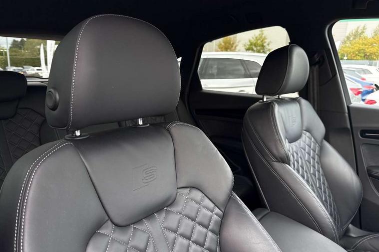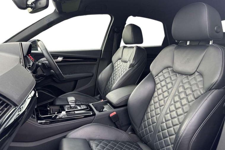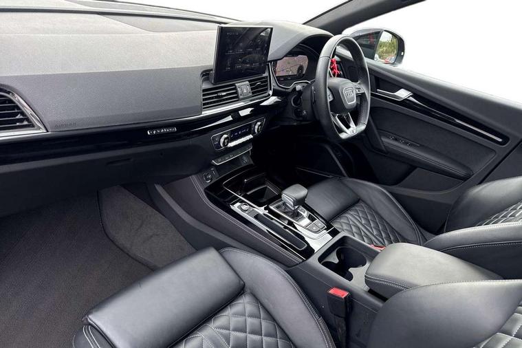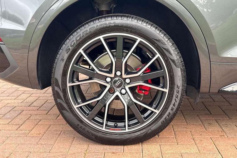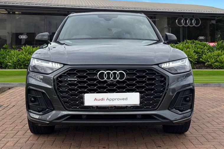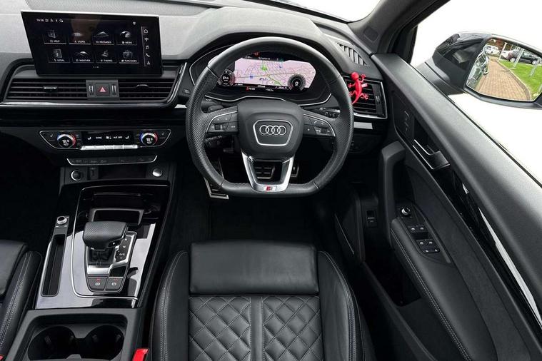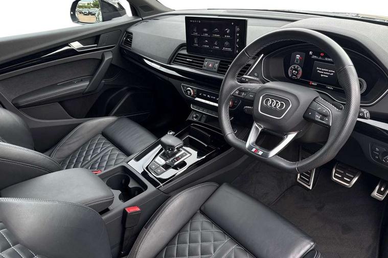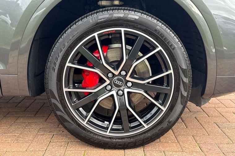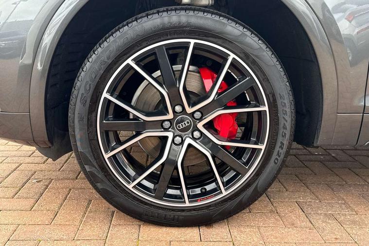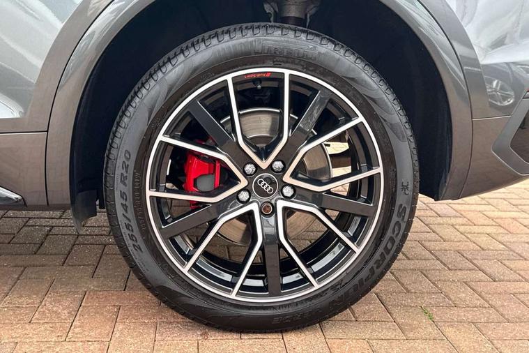 Audi connect safety and service (e-call), Audi connect with Amazon Alexa Integration, Audi drive select, Audi virtual cockpit plus with 12.3" screen and three different layout designs, Audi wireless smartphone interface, Automatic start-stop system with coasting functionality and efficiency programme, Bluetooth interface, Electro - mechanical power assisted steering, MMI navigation plus with 10.1" touch screen, Power tailgate, Reversing camera, Service interval indicator, Voice control system with Audi hotword activation "Hey Audi", Diesel particulate filter, Quattro on demand, S line sports suspension, DAB Digital radio, Acoustic windscreen, Audi beam with Audi rings logo, Audi matrix LED headlights with dynamic front and rear indicators, Audi rings at front and rear in black, Audi rings decal on rear doors, Auto dimming door mirrors, Auto dimming rear view mirror, Automatic headlight adjustment, Automatic headlights and windscreen wipers, Black roof rails, Body colour underbody protection, Chrome plated exhaust trims, Daytime running lights, Door sills in Selenite silver, Electric adjustable/heated/folding door mirrors, Front air inlet surrounds in aluminium, Front and rear electric windows, Headlight washers, High gloss black B pillar trims and triangular rear door trim, High level LED brake light, Rear chrome trim strip below lights, Rear privacy glass and rear side windows, Rear side wing doors, Rear spoiler, Rear wiper, Roof bars, Without model and engine badging at rear, 2 x USB charging port with aux input socket, 3 rear headrests, 4 way electric lumbar support for driver and front passenger, 40:20:40 split folding 3 rear bench seat in 2nd row with rear centre armrest, Black cloth headlining, Comfort front centre armrest, Contrast stitching on seats, steering wheel and gear lever gaiter, Deluxe 3 zone electronic climate control, Electrically adjustable front seats, Fine Nappa leather upholstery with diamond pattern contrast stitching + front sport seats with S embossed logo, Front head restraints, Front/rear floor mats, Gear lever in black leather, Heated front seats, Height/reach adjustable steering column, Illuminated door sill trims with S logo, ISOFIX child seat mounting and top tether, Rear seat bench plus, Removable luggage compartment floor, Single front passenger seat, Stainless steel pedals, Sunvisors with vanity mirrors, Trunk roller cover, Artificial leather pack - Q5, Black styling package - Q5 Edition 1, Extended LED Interior multi coloured Lighting Pack - Q5, 3 point seatbelts on all seats, 6 airbags - Driver, front passenger, curtain and side airbags, Electrically operated child locks on rear doors, Electromechanical parking brake, Electronic stabilisation control including ABS, ASR and EDL, Front and rear brake calipers painted in red, Front passenger airbag deactivation, Hill descent control, Hill hold assist, Multi collision brake assist, Pop-up bonnet for pedestrian protection, Pre sense city, Seat belt force limiter, Seatbelt monitoring, Tyre pressure warning, Warning triangle and first aid kit, Anti theft alarm, Anti-theft wheel bolts, Keyless Go access/ignition system, Remote central locking, Piano black finish inlay,