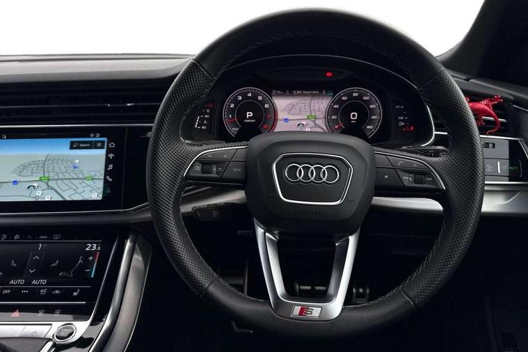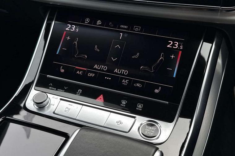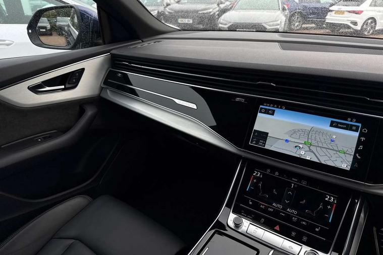 10.1" and 8.6" Dual colour touchscreens, Audi connect safety and service (e-call), Audi connect with Amazon Alexa Integration, Audi drive select, Audi parking system plus includes 360 degree display with front and rear sensors, Audi virtual cockpit - 12.3" high resolution LCD display with fully customisable instrument cluster, Automatic start/stop system, Electro-mechanical PAS, Low washer fluid indicator, MMI - Multi Media Interface control system, MMI navigation plus with MMI touch, Natural voice recognition, On board computer, Operating buttons in black, glass look with haptic feedback, Power operated tailgate, Rear view camera, Service interval indicator, Smartphone interface includes wireless Apple carplay/Android Auto, 48V Mild hybrid technology, 85 litre fuel tank, Adaptive sport air suspension, Quattro all wheel drive with self locking centre differential, Audi music interface with 2 USB ports with charge and data functions, Audi sound system with 6 channel amplifier, 180 watt amplifying capacity and 10 loudspeakers including subwoofer, Aux-in socket, DAB Digital radio, 3rd brake light, Acoustic windscreen, Aluminium window trim, Audi HD Matrix LED headlights with dynamic front and rear indicators, Auto dimming frameless rear view mirror, Body colour door mirrors, Coming/leaving home lighting function, Electric front+rear windows, Electrically folding auto dimming/adjustable/heated door mirrors with memory function, LED side indicators and kerb view function for passenger side, Headlight washers, Heat insulating glass in windshield, Illuminated door sill trims with S line logo, LED signature daytime running lights, Platinum grey front spoiler lip and diffuser insert with honeycomb grille in black, Privacy glass - dark tinted rear and rear side windows from B-pillar backwards, Rain and light sensors, Rear side wing doors, Rear wiper, S line badges on front wings, S Line body styling, S line bumpers in full body colour paint finish, S line roof spoiler, S Line side skirts, S line side ventilation grille, 2 zone automatic climate control, 3 bench rear seats in 2nd row, 4-way lumbar support for front seats, 40:20:40 split folding rear bench seat, Black cloth headlining, Comfort front centre armrest, Driver seat memory function, Electrically adjustable front seats, Front head restraints, Front/rear floor mats, Heated front seats, ISOFIX child seat mounting for front passenger seat and 2 outer rear seats with top tether child seat mounting for all 3 rear seats, LED interior ambient lighting, Luggage compartment sill protection in stainless steel, Rear centre armrest with 2 cupholders, Rear headrests, Single front passenger seat, Stainless steel pedals, Sunvisors with illuminated vanity mirrors, 3 point seatbelts on all seats, Audi pre sense front, Child locks on rear doors, Driver and front passenger, front side and curtain airbags, Electromechanical parking brake, Electronic Stability Control (ESC) including ABS, ASR and EDL, Front passenger airbag deactivation, Hill descent control, Hill hold assist, Predictive pedestrian protection, Seatbelt monitoring, Traction control, Tyre pressure loss indicator, Warning triangle and first aid kit, Anti theft alarm with tow away protection, Anti-theft wheel bolts and wheel loosening detection, Immobiliser, Keyless go with remote central locking, Dark matt brushed aluminium inlay, Tool kit, Tyre repair kit,