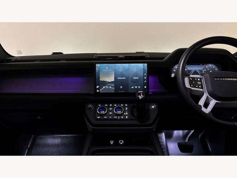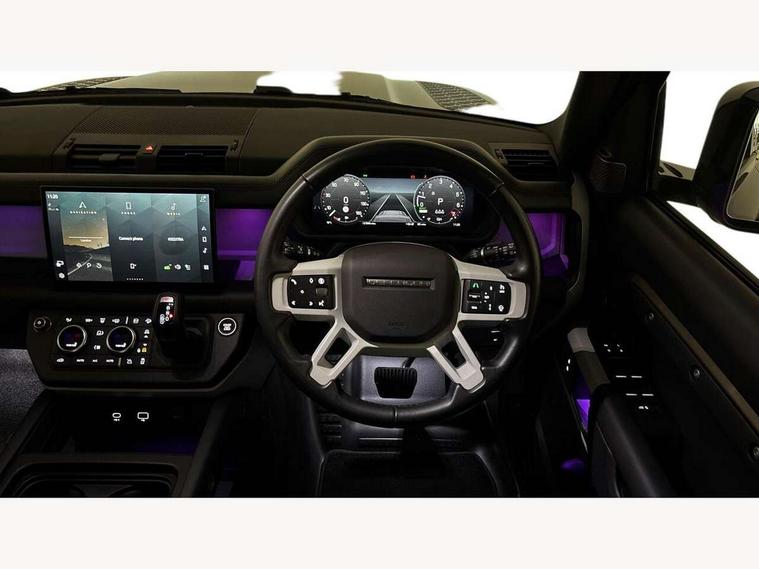 11.4" touchscreen, 360 degree parking aid, 3D Surround Camera with 360 View, 180 Rear View, Front Traffic Detection, Forward Vehicle Guidance, Tow Hitch Assist and clear sight Ground View, Adaptive cruise control, Android Auto, Apple CarPlay, Assisted tailgate with soft close, Blind spot assist, Bluetooth system, Brake pad wear indicator, Clear exit monitor, Connected navigation pro, Driver condition monitor, Electric power assisted steering (EPAS), Interactive driver display, Lane keep assist, Push button start, Rear collision monitor, Rear traffic monitor, Traffic sign recognition with adaptive speed limiter, Trip computer, Wade Sensing, 7 kW onboard charger, 8 speed automatic transmission, AC/DC charging, Adaptive dynamics, All wheel drive system, Electronic air suspension, Home charging cable mode 2 basic, Public charging cable, Twin speed transfer box, DAB Radio (Digital Audio Broadcasting), Meridian 400w sound audio system with 11 speakers and subwoofer, Pivi pro connected, Automatic headlight levelling, Automatic headlights, Black exposed rear recovery eyes, Centre high mounted stop light, ClearSight interior rear view mirror, Electric heated/power fold door mirrors with approach lights and auto dimming driver side, Electric windows with one touch open/close and anti-trap, Follow me home lighting, Front fog lights, Heated rear window with timer, Heated windscreen, LED tail lights, P400e badge, Privacy glass, Puddle lights, Rain sensing windscreen wipers, Rear fog lights, Rear side wing doors, Rear wiper, Side hinged tailgate, Solar attenuating windscreen, Trailer stability assist, X-Dynamic badge, 12V power socket in loadspace, 14 way heated and cooled electric adjustable memory front seats with 4 way manual headrests, 3 seat bench in 2nd row, Alpine lights, Configurable cabin lighting, Durable rubber cabin flooring, Durable rubber loadspace flooring, Electric reach + rake adjustable steering column, Extended leather upgrade, Footwell lights, Front passenger isofix child seat attachment, Heated steering wheel, Loadspace cover, Loadspace Hook, Multifunction steering wheel, Overhead stowage for sunglasses, Premium cabin lighting, Rear headrests, Rear ISOFIX, Rear reading lights, Single front passenger seat, Standard seat configuration, Storage glovebox, Sunvisors with illuminated vanity mirrors, Twin front cupholders with cover, Online pack with data plan - Defender, 5 x 3 point seatbelts, ABS, Brake hold function, Cornering brake control (CBC), Customer configurable autolock, DSC - Dynamic Stability Control, EBD - Electronic brakeforce distribution, Electric parking brake (EPB), Emergency brake assist, Emergency braking, ESP + traction control, Front airbags with passenger seat occupant detector, HDC - Hill descent control, Hill launch assist, Low traction launch, Power operated child locks, Remote for (e-Call, Optimised assistance call, InControl app, Climate, beep and flash and door), RSC - Roll stability control, Seat belt reminder, TPMS (Tyre pressure monitoring system), Alarm, Immobiliser, Intrusion sensor, Keyless entry, Locking wheel nuts,