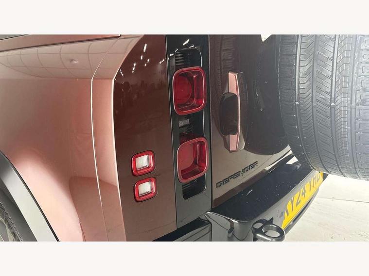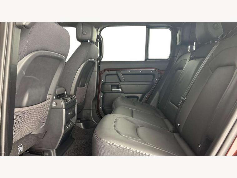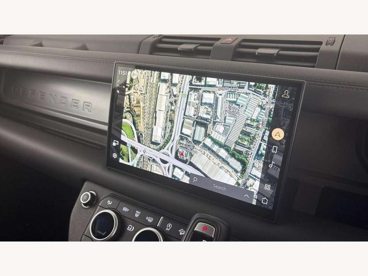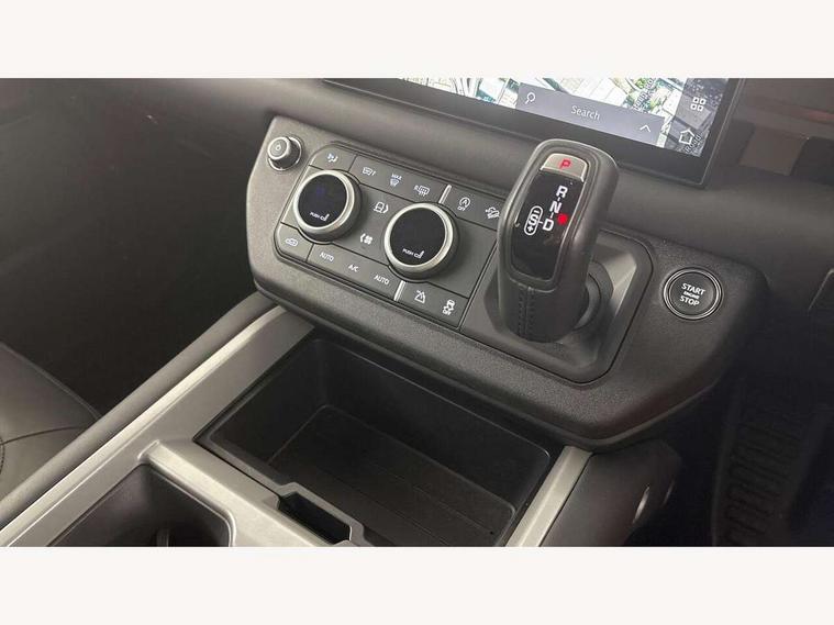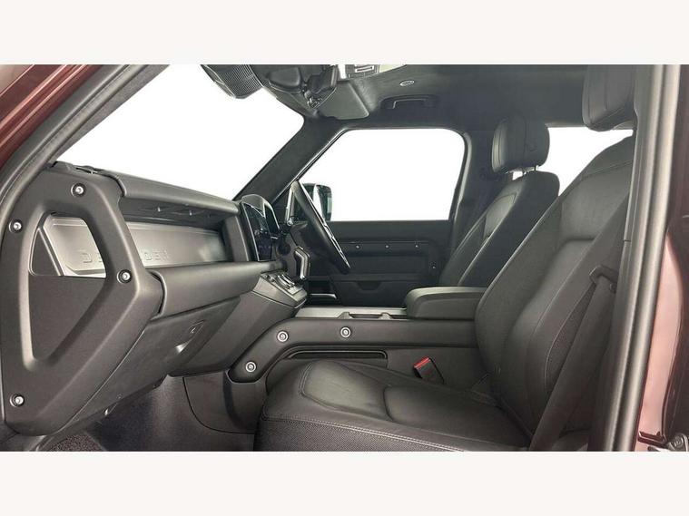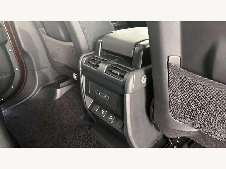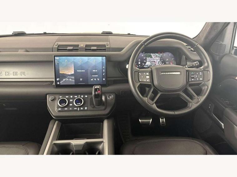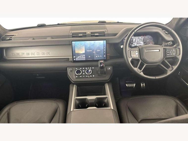 1 x USB-C (power only) & 1 x USB-C (power & data) in Row 1, 2 x USB-C in Row 2, 11.4" touchscreen, 360 degree parking aid, 3D Surround Camera with 360 View, 180 Rear View, Front Traffic Detection, Forward Vehicle Guidance, Tow Hitch Assist and clear sight Ground View, Adaptive cruise control, Android Auto, Apple CarPlay, Blind spot assist, Bluetooth system, Brake pad wear indicator, Clear exit monitor, Connected navigation pro, Driver condition monitor, Electric power assisted steering (EPAS), Interactive driver display, Lane keep assist, Push button start, Rear collision monitor, Rear traffic monitor, Traffic sign recognition with adaptive speed limiter, Trip computer, Wireless device charging, 8 speed automatic transmission, All wheel drive system, Twin speed transfer box, DAB Radio (Digital Audio Broadcasting), Meridian 700w surround sound audio system with 15 speakers, Pivi pro connected, Automatic headlight levelling, Automatic headlights, Black exposed rear recovery eyes, Body coloured bonnet, Centre high mounted stop light, ClearSight interior rear view mirror, Electric heated/power fold door mirrors with approach lights and auto dimming driver side, Electric windows with one touch open/close and anti-trap, Follow me home lighting, Front fog lights, Heated rear window with timer, Heated windscreen, Illuminated metal treadplates with brand name script, LED tail lights, Matrix LED headlights with signature DRL, Metallic paint, Privacy glass, Puddle lights, Rain sensing windscreen wipers, Rear fog lights, Rear side wing doors, Rear wiper, Side hinged tailgate, Sliding panoramic roof, Standard tail door, Trailer stability assist, 12V power socket in loadspace, 14 way heated and cooled electric memory front seats with 4 way manual winged headrests, 3 seat bench in 2nd row, 40:20:40 folding, heated rear seats with winged headrests and centre armrest, Alpine lights, Bright metal pedals, Configurable cabin lighting, Durable rubber cabin flooring, Durable rubber loadspace flooring, Ebony suedecloth headlining, Electric reach + rake adjustable steering column, Electrically adjustable steering column, Footwell lights, Front passenger isofix child seat attachment, Heated steering wheel, Leather gearshift, Leather steering wheel, Loadspace cover, Loadspace Hook, Multifunction steering wheel, No flat load floor storage, Nubuck edged carpet mats, Overhead stowage for sunglasses, Rear headrests, Rear ISOFIX, Rear reading lights, Signature interior upgrade, Single front passenger seat, Soft close tail door, Standard seat configuration, Storage glovebox, Sunvisors with illuminated vanity mirrors, Twin front cupholders, Windsor Leather and kvadrat textile upholstery, Extended black exterior pack - Defender X-Dynamic, Non-smoker package, Online pack with data plan - Defender, 5 x 3 point seatbelts, ABS, Brake hold function, Cornering brake control (CBC), Cross car beam in metallic grey powder coat brushed finish, Customer configurable autolock, Driver and passenger airbags, DSC - Dynamic Stability Control, EBD - Electronic brakeforce distribution, Electric parking brake (EPB), Emergency brake assist, Emergency braking, ESP + traction control, Front airbags with passenger seat occupant detector, HDC - Hill descent control, Hill launch assist, Low traction launch, Power operated child locks, Remote for (e-Call, Optimised assistance call, InControl app, Climate, beep and flash and door), RSC - Roll stability control, Seat belt reminder, TPMS (Tyre pressure monitoring system), Alarm, Immobiliser, Intrusion sensor, Keyless entry, Locking wheel nuts, Secure tracker pro, Spare wheel lock, 22" 5 spoke alloy wheels with Gloss Black finish - Style 5098, 22" full size alloy spare wheel, All season tyres,