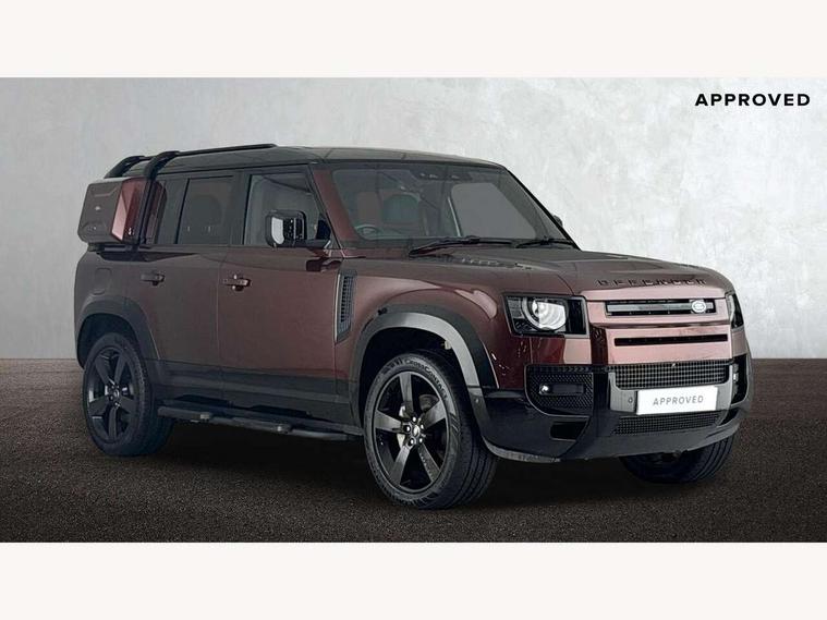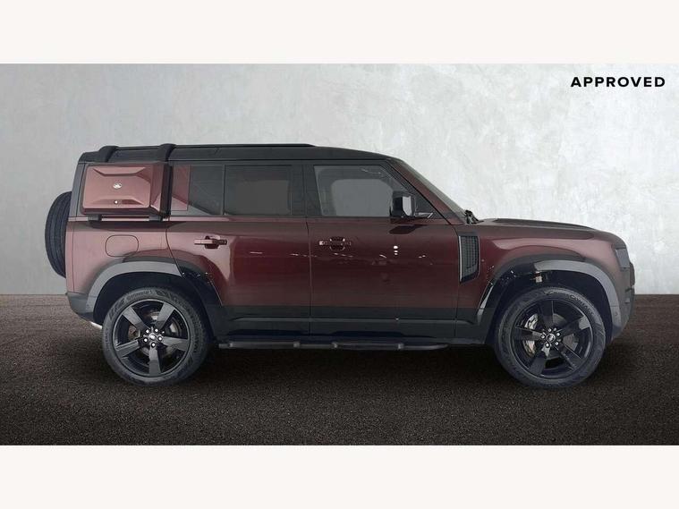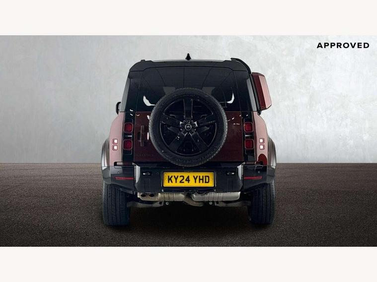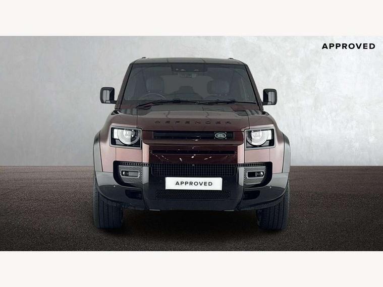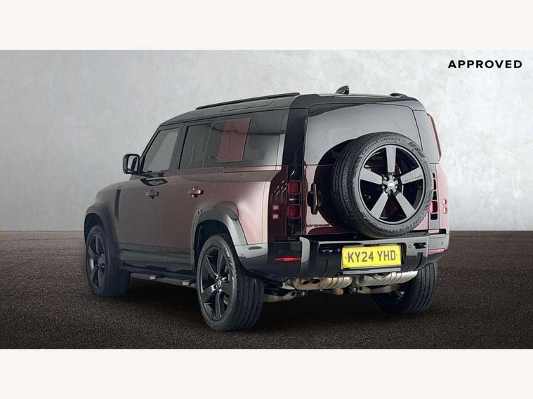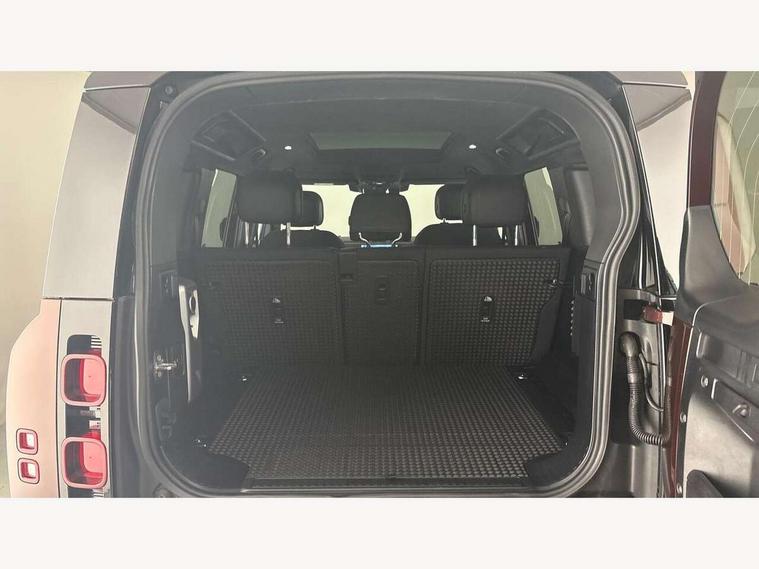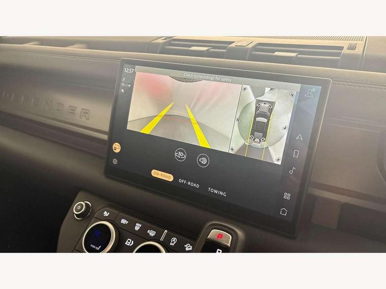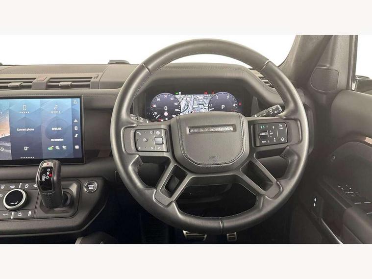 1 x USB-C (power only) & 1 x USB-C (power & data) in Row 1, 2 x USB-C in Row 2, 11.4" touchscreen, 360 degree parking aid, 3D Surround Camera with 360 View, 180 Rear View, Front Traffic Detection, Forward Vehicle Guidance, Tow Hitch Assist and clear sight Ground View, Adaptive cruise control, Android Auto, Apple CarPlay, Blind spot assist, Bluetooth system, Brake pad wear indicator, Clear exit monitor, Connected navigation pro, Driver condition monitor, Electric power assisted steering (EPAS), Interactive driver display, Lane keep assist, Push button start, Rear collision monitor, Rear traffic monitor, Traffic sign recognition with adaptive speed limiter, Trip computer, Wireless device charging, 8 speed automatic transmission, All wheel drive system, Twin speed transfer box, DAB Radio (Digital Audio Broadcasting), Meridian 700w surround sound audio system with 15 speakers, Pivi pro connected, Automatic headlight levelling, Automatic headlights, Black exposed rear recovery eyes, Body coloured bonnet, Centre high mounted stop light, ClearSight interior rear view mirror, Electric heated/power fold door mirrors with approach lights and auto dimming driver side, Electric windows with one touch open/close and anti-trap, Follow me home lighting, Front fog lights, Heated rear window with timer, Heated windscreen, Illuminated metal treadplates with brand name script, LED tail lights, Matrix LED headlights with signature DRL, Metallic paint, Privacy glass, Puddle lights, Rain sensing windscreen wipers, Rear fog lights, Rear side wing doors, Rear wiper, Side hinged tailgate, Sliding panoramic roof, Standard tail door, Trailer stability assist, 12V power socket in loadspace, 14 way heated and cooled electric memory front seats with 4 way manual winged headrests, 3 seat bench in 2nd row, 40:20:40 folding, heated rear seats with winged headrests and centre armrest, Alpine lights, Bright metal pedals, Configurable cabin lighting, Durable rubber cabin flooring, Durable rubber loadspace flooring, Ebony suedecloth headlining, Electric reach + rake adjustable steering column, Electrically adjustable steering column, Footwell lights, Front passenger isofix child seat attachment, Heated steering wheel, Leather gearshift, Leather steering wheel, Loadspace cover, Loadspace Hook, Multifunction steering wheel, No flat load floor storage, Nubuck edged carpet mats, Overhead stowage for sunglasses, Rear headrests, Rear ISOFIX, Rear reading lights, Signature interior upgrade, Single front passenger seat, Soft close tail door, Standard seat configuration, Storage glovebox, Sunvisors with illuminated vanity mirrors, Twin front cupholders, Windsor Leather and kvadrat textile upholstery, Extended black exterior pack - Defender X-Dynamic, Non-smoker package, Online pack with data plan - Defender, 5 x 3 point seatbelts, ABS, Brake hold function, Cornering brake control (CBC), Cross car beam in metallic grey powder coat brushed finish, Customer configurable autolock, Driver and passenger airbags, DSC - Dynamic Stability Control, EBD - Electronic brakeforce distribution, Electric parking brake (EPB), Emergency brake assist, Emergency braking, ESP + traction control, Front airbags with passenger seat occupant detector, HDC - Hill descent control, Hill launch assist, Low traction launch, Power operated child locks, Remote for (e-Call, Optimised assistance call, InControl app, Climate, beep and flash and door), RSC - Roll stability control, Seat belt reminder, TPMS (Tyre pressure monitoring system), Alarm, Immobiliser, Intrusion sensor, Keyless entry, Locking wheel nuts, Secure tracker pro, Spare wheel lock, 22" 5 spoke alloy wheels with Gloss Black finish - Style 5098, 22" full size alloy spare wheel, All season tyres,