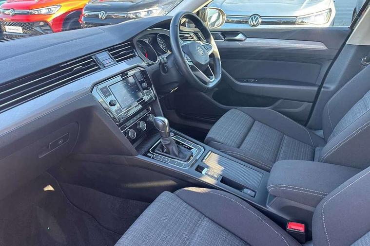 Adaptive cruise control including Front Assist, radar sensor controlled distance monitoring system, City emergency braking system, Driver alert system, Driver profile selection, Exterior temperature gauge with frost alarm, Low washer fluid warning light, Multifunction computer includes visual gear, One touch indicator turn signal, Remote tailgate unlocking, Security and service including e-call, Speed sensitive power steering, Speedo and rev counter, electronic odometer, trip, service interval display and fuel gauge, Travel assist - Lane assist and traffic jam assist, Voice control system, Warning buzzer and light for front seatbelts unfastened, Wireless app connect, Battery regeneration during braking, Diesel particulate filter, Misfuel prevention device, Aerial for radio integrated into rear windscreen, Auto dimming interior rear view mirror, Automatic headlights with dusk sensor, Automatic leaving home and manual coming home lighting functions, Black radiator grille with chrome louvres, Black roof rails, Body colour bumpers, Body colour door handles, Body coloured door mirrors with intergrated indicators, Chrome side window surrounds, Electrically adjustable and heated door mirrors, Front and rear electric windows, Fully galvanised body, Heated rear window, High level 3rd brake light, LED rear lights, LED rear number plate lights, Plastic load sill protection, Rain sensor, Warning lights for open tailgate and doors, White instrument lighting, Windscreen wipers/ intermittent wipe + 4 position delay, 12V socket in front centre console, Driver's door storage compartment for 1.0 litre bottle, ErgoComfort seat with seat cushion tilt adjustment, thigh support and electric backrest adjustment on the driver side, Extending luggage compartment cover with convenience opening, stowable, Front + rear carpet mats, Front and rear interior lighting with delay and dimming function, Front and rear reading lights, x 2 incorporating LED technology, Front centre armrest with storage compartment and two rear air vents, Front cupholders x2 with covers, Front passenger storage compartment for 1.5 litre bottle, Front seats with lumbar adjustment split folding rear seat backrest 40:20:40, Height adjustable and removable variable boot floor, Height adjustable rear seat head restraints (x3), Height/reach adjust steering wheel, Illuminated vanity mirrors, Isofix child seat preparation, outer rear seats, LED entrance/warning lights in front doors, Load lashing points x 4 in luggage compartment, Load through provision, Lockable, illuminated, cooled glovebox, Luggage compartment lighting, Rear seat centre armrest with storage compartment, Storage compartment in rear doors, Storage compartment in roof console with cover, Composition Media Pack - Passat, NCAP pack - Passat, 3x3 point rear seatbelts, ABS (Anti locking brake system) includes BAS (Brake assist) and EBD (Electronic brake pressure distribution), Automatic post collision braking, Disc brakes front and rear, Door open warning reflectors, Drivers and front passengers safety optimised head restraints, longitudinal and height adjustable, Drivers knee airbag, Electronic parking brake with auto hold, ESC (Electronic stability control) + EDL (Electronic Differential lock) and ASR (Traction control), EDTC (Engine drag torque control), First aid kit, Front airbags with deactivation switch, Front and rear passenger curtain airbags, Height adjustable front 3 point seatbelts + pretensioners, Hill hold function, Pre crash preventive occupant protection, Rear seat side impact airbags, Rigid safety cell with front and rear crumple zones, Tyre pressure loss indicator, Warning light for rear seat belts if unfastened, Alarm with interior protection, Electronic engine immobiliser, Remote central locking with 2 remote folding keys, Chrome air vent and instrument surround, Diamond silver decorative inserts in dash, centre console and door panels,