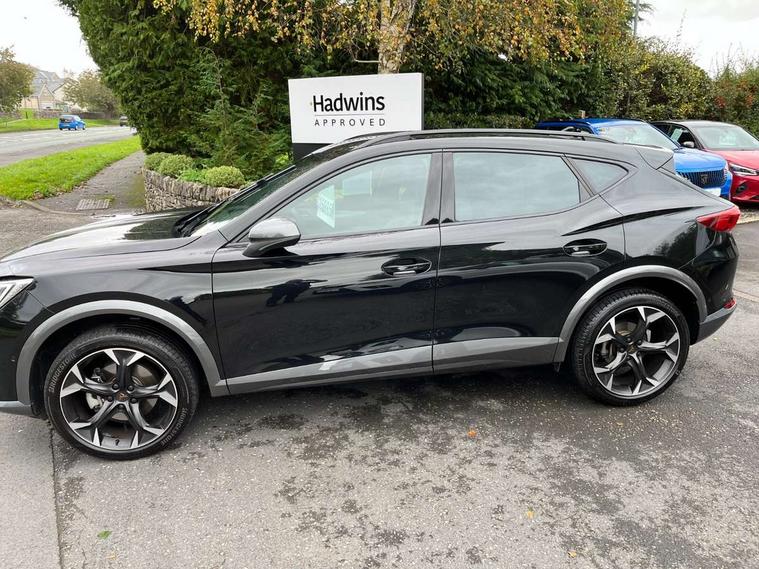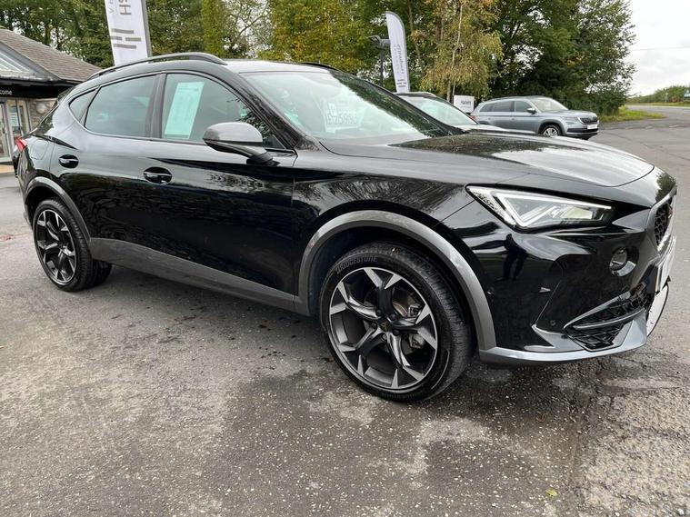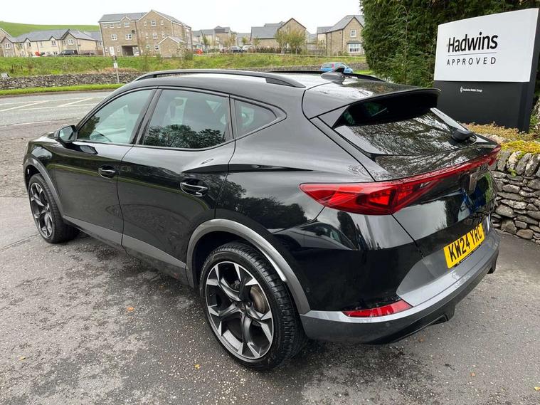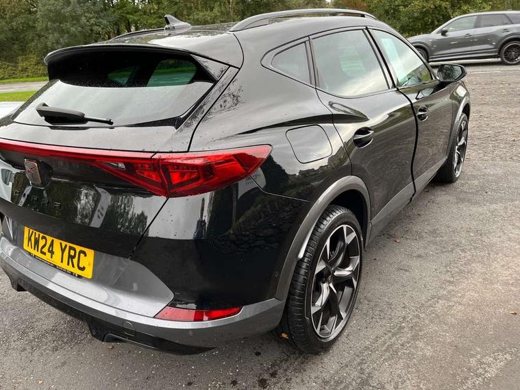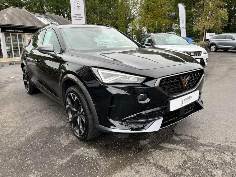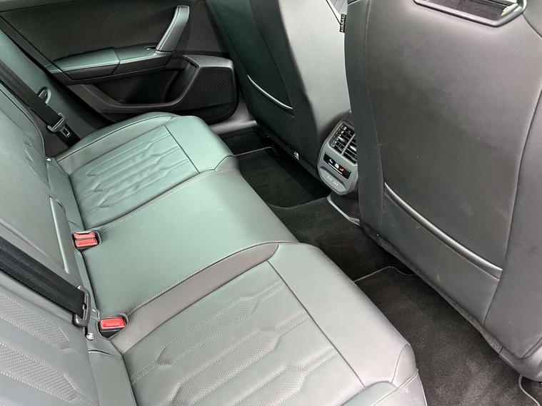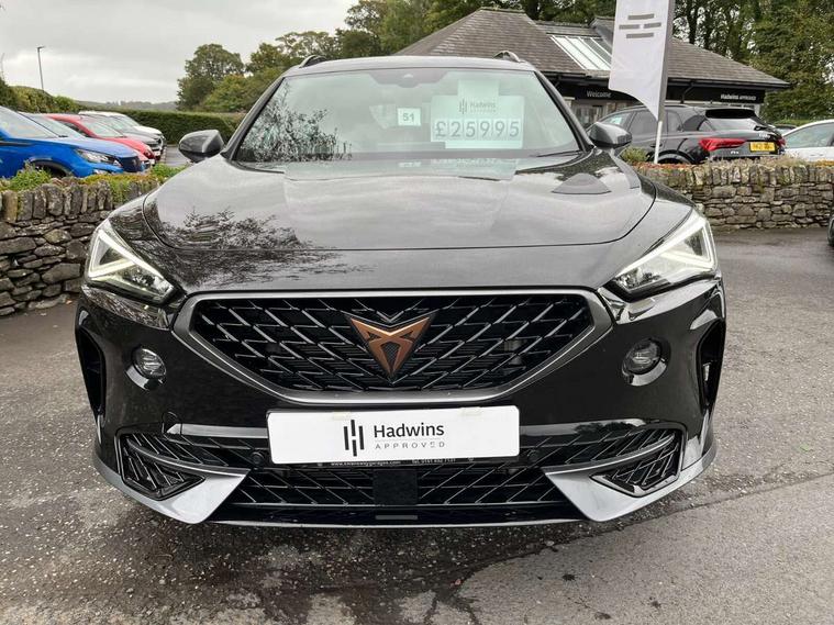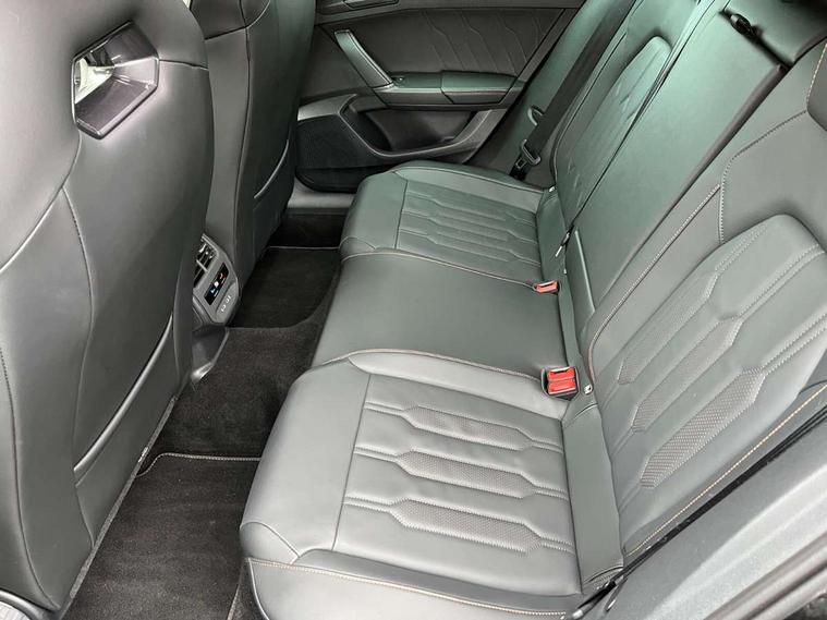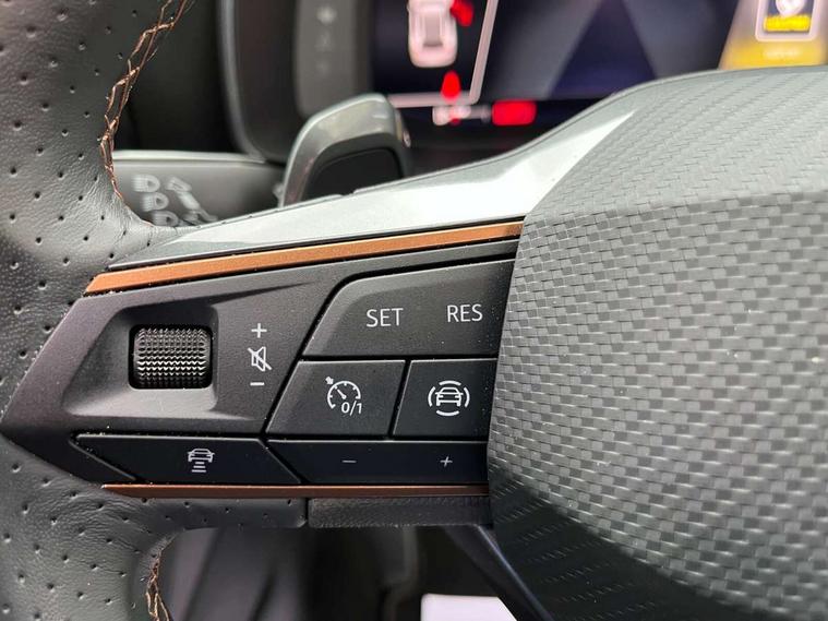 Digital cockpit and configurable dashboard, Driver alert system, Driving profile selection, Forward collision warning with automatic braking, Lane assist, Navigation system with 12'' Touchscreen Display, Park assist (inc front/rear parking sensors), PAS, Predictive adaptive cruise control with speed limiter, Rear view camera, RPM, trip computer, outside temp gauge, instrument light brightness, low fuel warning light, lights on reminder, gearshift indicator, Service interval indicator, Start/stop system with regenerative braking, Voice control system, Wired Android Auto, Wireless apple carplay, Wireless phone charger, Electronic locking differential and dynamic traction support, Standard suspension, 2 front and 2 rear USB type C sockets, Auxiliary input socket, DAB radio, Auto dimming rear view mirror, Body colour door handles, Body coloured bumpers, Dark grey wing mirror, Daytime running light with automatic headlight control and coming home feature, Dynamic headlight range control, Electric front/rear windows, Electrically adjustable heated and folding door mirrors with memory function, Front fog lamps with cornering function, Gloss black roof rails and window surrounds, LED Headlights, LED Taillights with dynamic indicator, Rain sensing wipers, Rear diffuser with black simulated exhaust pipes, Rear side wing doors, Rear wash/wipe, Third brake light, Tinted rear windows, Welcome lights, 12v power supply in centre console, 12V socket, 12v socket in loadspace, 2 front and 2 rear reading lights, 230V socket, 3 seat bench in 2nd row, 60/40 split rear bench seat with armrest and mechanical seat release, Black headlining, Dust/pollen filter, Front and rear head restraints, Front centre armrest, Height/reach adjust steering wheel, Illuminated interior front door sills, Illuminated sunvisor with mirror, Isofix, Leather multi function heated steering wheel with gear shift paddles, Luggage tie-down hooks, Single front passenger seat, Three zone climate control with control panel in rear, Variable luggage/load compartment floor, Wraparound lighting, Genuine Nappa leather Pack - Cupra, 3 point seatbelts on all rear seats, ABS, Brake control system - ESC and brake booster, Child proof door locks, Driver and front passenger airbags with front passenger airbag de-activation, Electronic parking brake, Front and rear disc brakes, Front side curtain airbags, Hill hold control, Public e-call, Seat belt reminder for front and rear seats, Tyre pressure monitoring system, Anti theft alarm system, Keyless entry and start system (KESSY), Locking wheel bolts, Copper and aluminium interior detailing, 19" 'Exclusive' machined sport matte black and silver alloy wheels,