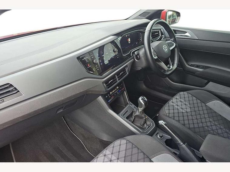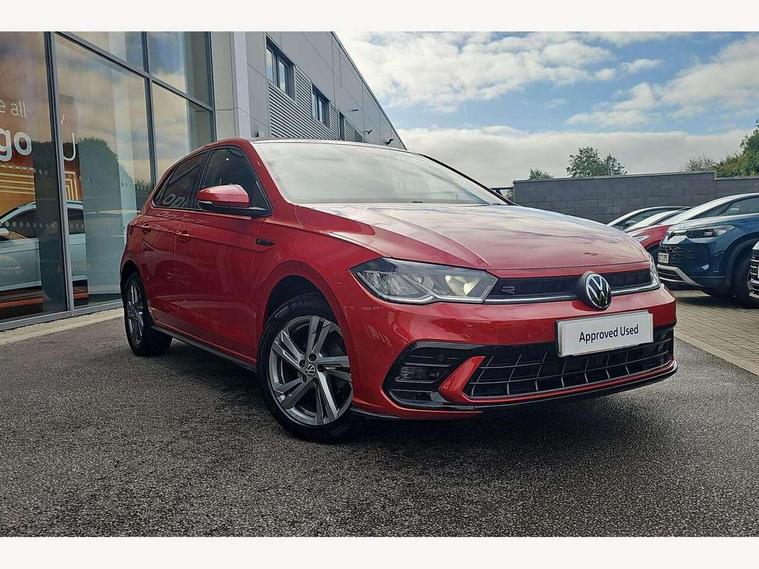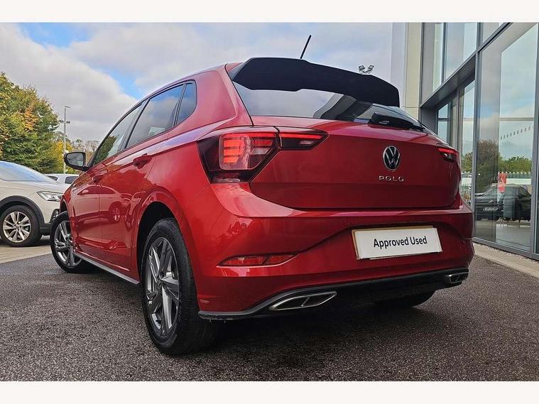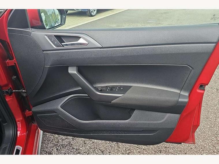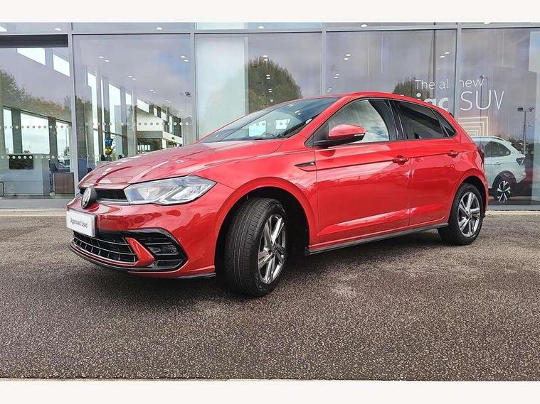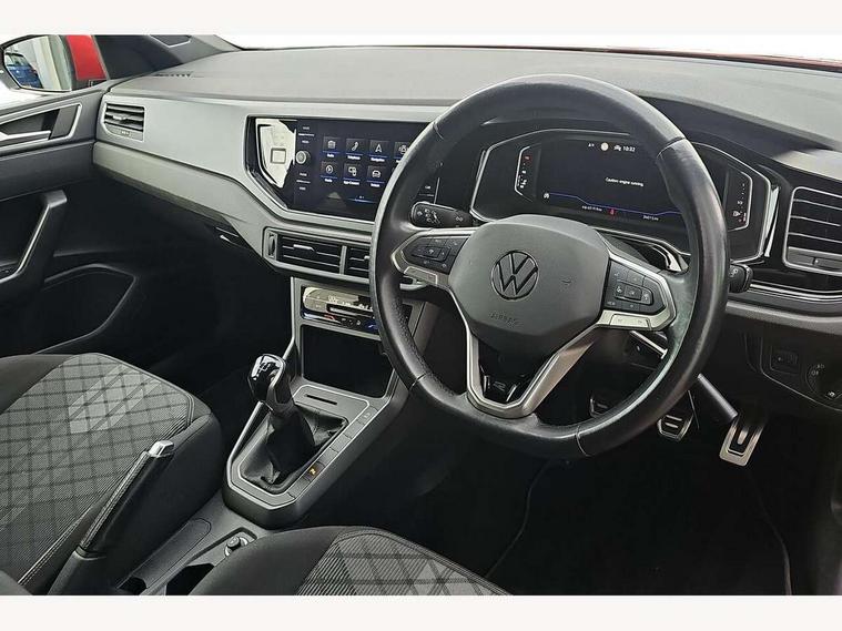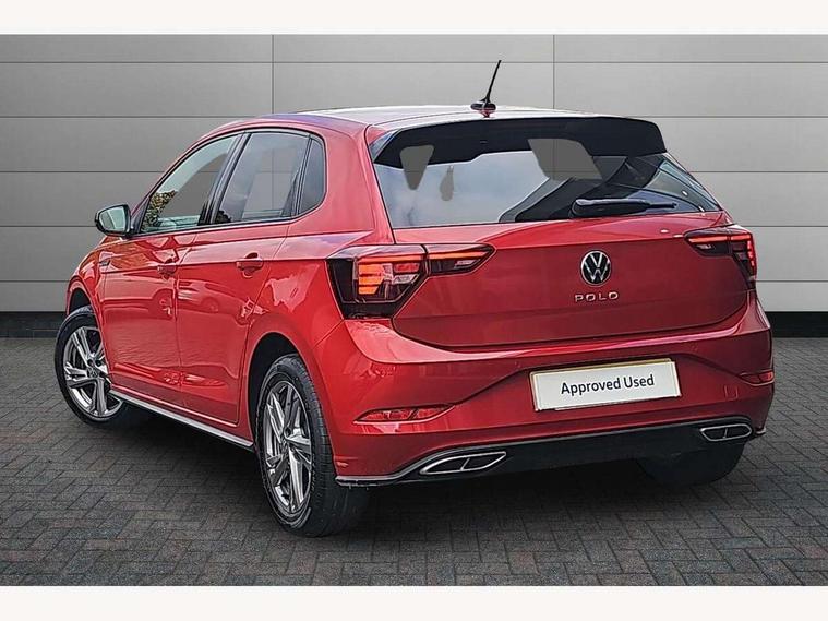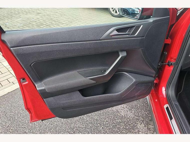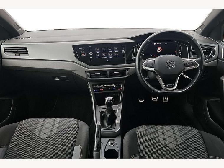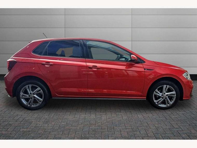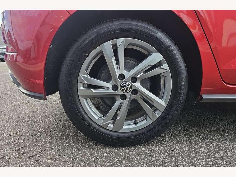 Adaptive cruise control without follow-to-stop and speed limiter, Bluetooth mobile phone interface, Digital Cockpit Pro with 10.25" Display, Driver alert system, Dynamic road sign display, Emergency call service, Power assisted speed sensitive steering, Preparation for We connect and We connect plus, Speedo and rev counter, electronic odometer, trip, service interval display and fuel gauge, Standard rear axle, Travel Assist - Lane keeping system and traffic jam assist, Travel assist including emergency assist, Trip computer, Warning signal and warning light for front and rear seatbelts not fastened, Washer fluid level indicator, Wireless app connect, Front wheel drive, Rear shock absorpion, Start-stop system with battery regeneration (recuperation - energy recovery during braking), DAB Digital radio, Diversity antenna for FM reception, Body colour bumpers, Body colour door handles, Body colour door mirrors, Electric front windows, Front fog lights with static cornering function, Front scuff plates with R-Line logo, Heat insulating darkened glass in side and rear windows, Heat insulating glass windscreen, Power folding adjustable/heated exterior mirrors and front passenger exterior mirror lowering function, Rear electric windows, Rear fog light, Rear side wing doors, Rear tinted glass from B-pillar backwards approx 65% tinted, Rear windscreen washer and wiper with interval delay, Third brake light, 12V power socket in centre console, 2 USB-C ports in the front, 2 USB-C charging sockets on the center console in the rear, 3 rear head restraints, 60/40 split folding rear seat and rear seat bench not split, Air care climatronic air conditoning system with active combination filter and 2-zone temperature control, Black roof lining, Ceramique headliner, Chrome plated radiator grille inserts, air vent surrounds and light switch surrounds, Door and side trim panel, Driver and front passenger seat height adjustment, Driver/passenger sunvisors with illuminated vanity mirrors, Front + rear carpet mats, Front centre armrest, Front footwell illumination, Front seat backrest storage pockets, Front sports comfort seats, Handbrake lever handle in leather, Isofix child seat preparation easy-fit (for two outer rear seats, and front passenger seat) compatible with I-size, Karoso artvelours cloth upholstery, Leather trimmed gear knob, LED interior light with switch off delay and dimmer, 2 reading lights front and rear, Luggage compartment cover, Luggage compartment floor, Luggage compartment lighting, Lumbar adjustment for front seats, Multifunction steering wheel, Single front passenger seat, Stainless steel pedals, Standard pedal cluster, Light and sight pack - Polo R-Line, 3 point height adj front seatbelts + pretensioners, 3x3 point rear seatbelts, ABS, Driver and front passenger airbag with front passenger airbag deactivation, Drivers and front passengers safety optimised head restraints, ESC (Electronic stability control) + EDL (Electronic Differntial lock) and ASR (Traction control), Extended and predictive pedestrian/ cyclist protection, Front curtain and side airbags with center airbag, Hill hold control, Manual child lock in rear doors, Single tone horn, Tyre pressure loss indicator, Alarm with interior protection, Anti-theft alarm system with interior monitoring, backup horn, and towing protection, Anti-theft wheel bolts, Electronic engine immobiliser, Chrome applications on rotary light, mirror adjustment, window regulator switches, outlet with frame in black, Dark grey anodised matt decorative inserts in dash and front door panels, Low rolling resistance tyres,