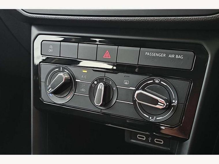 'Lights On' Reminder warning buzzer, Adaptive cruise control including front assist, forward collision warning, autonomous emergency braking, speed limiter, Blind spot monitoring, Bluetooth telephone and audio connection for compatible devices, Car information display, Digital cockpit, Driver alert system, eCall emergency call system, Lane assist, Low washer fluid warning light, Multifunction computer with visual gear change recommendation for fuel consumption, Operating permit alteration, Power assisted speed sensitive steering, Speedo, rev counter, electronic odometer, trip, service interval display, exterior temperature and fuel gauge, Stop/start system, Warning sound and light for doors and tailgate open, Warning sound and light for front seatbelts unfastened, We Connect Go Dongle, Wireless Car net app connect with Apple CarPlay, combined functionality of Apple CarPlay/Android Auto and MirrorLink, Battery regeneration during braking, Misfuel prevention device, 2x USB connection with USB charging sockets and in rear centre console, DAB Digital radio receiver, Diversity antenna for FM reception, Multi device interface (MDI) with USB connection, Music playback - MP3, WMA and AAC files, Premium USB cable for Apple or Android smartphone compatibility, Simultaneous pairing of 2 compatible mobile devices, Title and cover art display, Automatic hazard lights activation under emergency braking, Black roof rails, Body colour door handles, Body colour door mirrors with integrated indicators, Body coloured bumpers, Dusk sensor + automatic driving lights, Electrically foldable, adjustable and heated door mirrors with reverse activated kerb view adjustment on passenger's side, Front and rear electric windows, Front fog lights with static cornering function, Galvanised body, Heated rear window, LED third brake light, Lower door sills and door pillars in black, Radiator grille with high gloss surface and chrome strip, Rear fog light on one side, reversing light on both sides, Rear lights incorporating LED technology, Rear side wing doors, Rear window aerial, Rear windscreen washer and wiper with interval delay, Reflectors in all doors, Tailgate with integrated roof spoiler, Windscreen wipers/ intermittent wipe + 4 position delay, 12V Accessory socket in centre console, 3 rear head restraints and 3 rear three point seat belts with ECE label, 3 seat bench in 2nd row, 60/40 split folding rear seat backrest, Drawer under drivers seat, Driver and front passenger sunvisor with vanity mirror, Driver's sunvisor with ticket holder, Dust and pollen filter, Front and rear reading lights X 2, Front centre armrest with storage compartment, Front seat back storage pockets, Front seats with adjustable lumbar support, Glovebox, Heating and fresh air system with 4 stage blower, Height/reach adjust steering wheel, Instrument lighting white adjustable panel illumination, Interior light with delay, Isofix child seat preparation for 2 rear child seats, Luggage compartment cover, Luggage compartment lighting, Manual air conditioning, Manual front seats with height adjustment, Moveable and foldable Rear bench seat, Single front passenger seat, Storage compartment in drivers and front passengers door, Three spoke multi-function leather trimmed steering wheel and gearknob, Triangle ties/pearl cloth upholstery, Variable boot floor, Anti-lock Braking System (ABS) with Hydraulic Brake Assist (HBA), Automatic post collision braking system, Driver and front passenger safety-optimised head restraints, Drivers and Front Passengers airbags with front passengers airbag deactivation switch, ESC with EDL, ASR, EDTC and trailer stabilisation function, Front and rear curtain airbags, Front disc brakes and rear drum brakes, Front seat side impact airbags, Height-adjustable front three-point seat belts with tensioners, Hill start assist, Pre crash preventive occupant protection, Rear door child safety locks, Rigid safety cell with front and rear crumple zones, Single torn horn, Tyre pressure loss indicator, Volkswagen roadside assistance, Alarm with interior protection and deactivation via infotainment system, Child security locks in rear doors, Electronic engine immobiliser, Remote tailgate unlocking using key fob, Pineapple decorative inserts in dash and doors, 17" Clayton alloy wheels + anti theft wheel bolts, Breakdown kit,