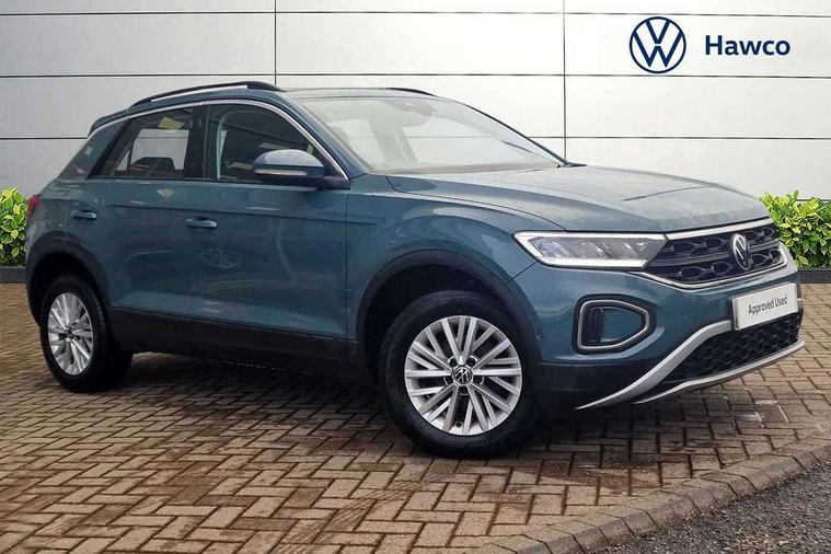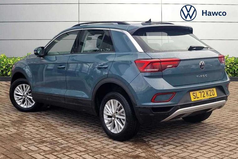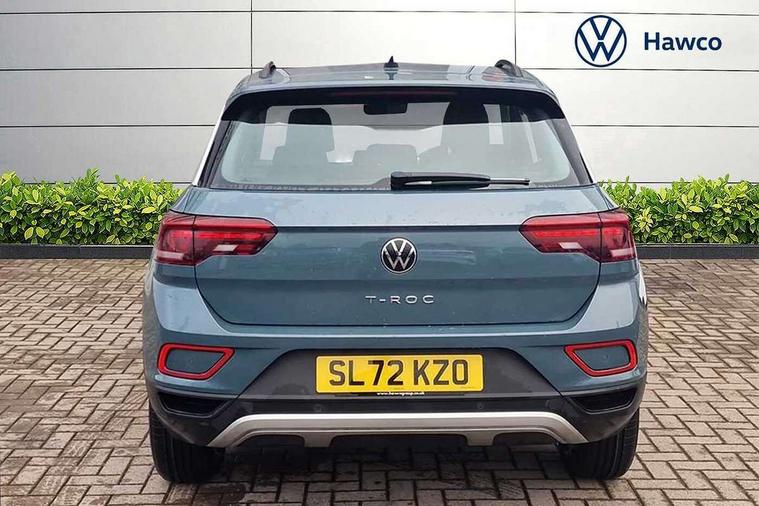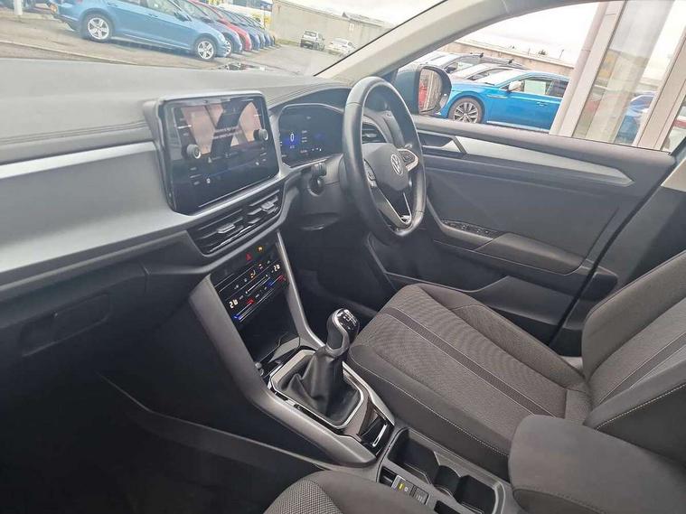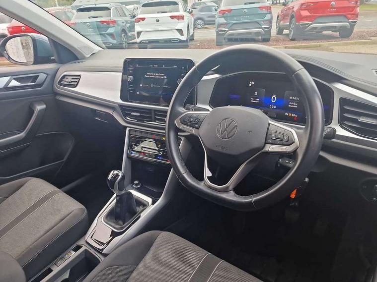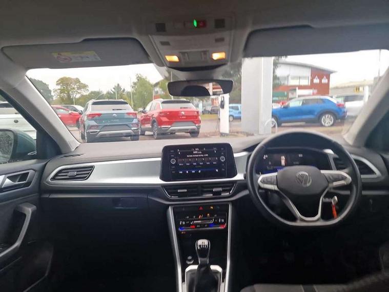 Bluetooth mobile phone interface, Driver alert system with fatigue detection, Driver tips and journey analysis, Emergency call service, Lane keeping system Lane Assist, Modified key software - reduce switch off time for key status change to Long no motion, Online services, Park assist including front and rear parking sensors, Power assisted speed sensitive steering, Service interval indicator, Tailgate/trunk lid release from outside, Think blue trainer driver tips and journey analysis, Warning sound and light for front seatbelts unfastened, Wireless app connect, Battery regeneration during braking, Front shock absorption, Rear shock absorption chassis with increased ride height, Start/stop function with battery regeneration, DAB Digital radio, Diversity antenna for FM reception, Front and rear 6 speakers, Music playback - MP3, WMA and AAC files, Premium USB cable in choice of either Apple or Android smartphone compatibility, SD card slot, Simultaneous pairing of 2 compatible mobile devices, Title and cover art display, We Connect and We Connect Plus functionality, 3rd brake light, Auto dimming interior rear view mirror, Automatic hazard lights activation under emergency braking, Automatic headlight control with LED separate daytime running lights with coming/leaving home function, Black roof rails, Body coloured bumpers and radiator grille with chrome trim and front fog lamps with chrome bezel, Body coloured exterior mirror housings and door handles, Extended roof spoiler, Exterior mirrors aspherical on driver side, convex on front passenger side, External USB type C socket and charging sockets, Front windscreen wiper with intermittent wipe and 4 position delay, Heated rear window, LED Headlights, LED rear combination lamps, LED rear number plate lights, LED tail lamp rear comination lamps, Power windows with comfort operation and circuit breaker, Rain sensor, Rear exhaust tailpipe, Rear fog light on one side and reversing lights on both sides, Rear side wing doors, Rear wash/wipe with intermittent wipe setting, Remote electrically foldable door mirrors, puddle lights and reverse activated passenger's door mirror, 12V power socket in centre console, 3 rear head restraints, 3 seat bench in 2nd row, 4 load lashing points in luggage compartment, Air care climatronic air conditoning system with active combination filter and 2-zone temperature control, Ambient lighting with mirror logo projection, Cloth upholstery, Door and side trim panel in cloth, Drawer under drivers seat, Driver/front passenger seat height adjustment, Front centre armrest, Front comfort sports seats, Front cupholders x 2, Front reading light, Instrument lighting, white adjustable panel illumination, Interior light delay, Isofix child seat preparation, Leather gearshift handle, Load-through provision with cup holder when folded down ('Unsplit rear seat bench, split folding backrest, with centre armrest), Luggage compartment lighting, Lumbar support for driver's and front passengers seat, Non-folding front passenger seat backrest, Single front passenger seat, Storage compartment in left and right luggage area, Storage compartment in rear doors, Storage compartments in driver and front passenger doors, Sunvisors with illuminated vanity mirrors, Variable boot floor, height adjustable and removable, Driver assistance pack without proactive passenger protection - T-Roc, 3 point height adj front seatbelts + pretensioners, 3 point seatbelts in outer rear with ECE label, ABS, Child locks on rear doors, Driver and front passenger airbag with front passenger airbag deactivation, Driver and front passenger safety-optimised head restraints, Drivers seatbelt reminder, Electronic parking brake, Electronic Stability Control (ESC) inc EDL (Electronic Differential Lock) and ASR (Traction Control), Front and rear passengers curtain airbag system including front side airbags, Front assist with city emergency braking and pedestrian monitoring, Front disc brakes, Front seat side impact airbags, Hill start assist, Predictive pedestrian protection, Rear disc brakes, Single tone horn, Tyre pressure loss indicator, Volkswagen roadside assistance, Alarm with interior protection, Anti-theft alarm system with interior monitoring, backup horn, and towing protection, Remote central locking with SAFELOCK, radio remote control with 2 remote control folding keys, Pewter matt decorative inserts for intrument panel, centre console and door panels at the front, Trims for alloy wheels,