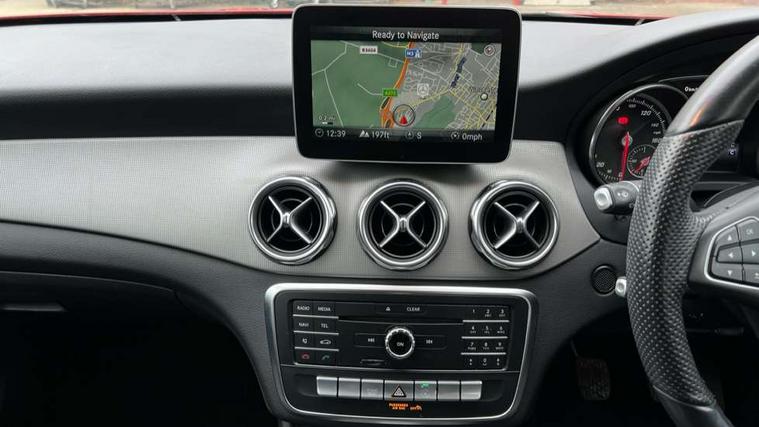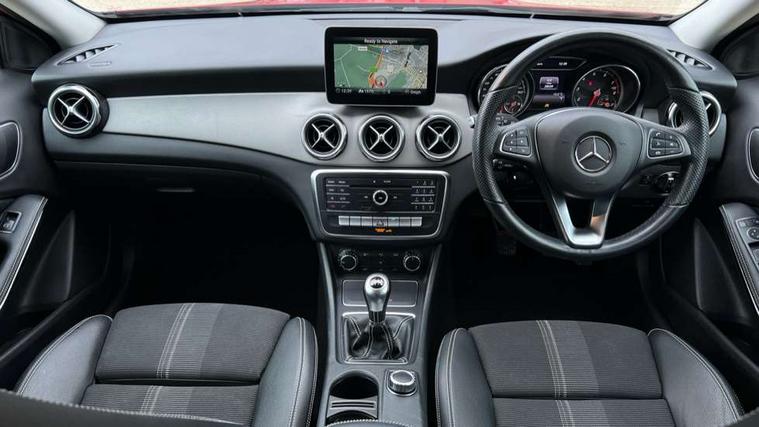 8" colour display screen, Attention assist, Coolant level warning indicator, Cruise control + speed limiter, DYNAMIC SELECT with a choice of driving modes (ECO, Comfort, Sport, Sport+ and Individual), Instrument cluster, Low fuel level warning light, Mercedes connect me, Multi function trip computer, Oil level warning, Outside temperature gauge, Reversing camera, Service indicator (ASSYST), Smartphone integration with Apple CarPlay, Speed sensitive power steering, Stop/start system, Washer fluid reminder, Comfort suspension, 6 speakers, Bluetooth connectivity including audio streaming, Media interface, Mercedes Audio 20 radio/single CD, SD card slot, USB port, Adaptive brake lights, Automatic headlamp activation, Body colour door handles, Dark privacy glass from B-pillar backwards, Electric front windows, Electric heated + adjustable door mirrors, Front fog lights, Gloss black bumper inserts, Heated rear window with timer, Heated windscreen wash system, High gloss black front splitter, High gloss black rear apron, High gloss black roof rails, LED Headlights, LED tail lights, LED third brake light, Radiator grille with 2 louvres in Silver with chrome trim, Rain sensor windscreen wipers, Rear windscreen wiper with auto activation when reversing, Roof mounted radio aerial, Roof spoiler, Twin chrome exhaust tailpipes, 1/3 to 2/3 split folding rear seats, 12V power socket in centre console, 12V socket in luggage compartment, 3 spoke multifunction nappa leather steering wheel, Air conditioning, Ambient lighting in front headrests, Artico man-made leather/Maringa fabric upholstery, Auto Mercedes-Benz child seat recognition sensor, Centre console storage, Centre console with cupholders, Courtesy light in boot, Footwell lights, Front centre armrest with storage compartment, Front seat cushion length adjustment, Grey headlining, Height adjustable front seats, Height/reach adjustable steering column, Illuminated door sills, Illuminated glovebox, Integrated head restraints, Interior door handle illumination, Isofix rear child seat preparation, Luggage compartment cover, Luggage compartment lighting, Rear Reading Lamps, Sports seats, Sunvisors with illuminated vanity mirrors, 3 rear 3 point seatbelts, ABS with Brake Assist, Active bonnet, Adaptive brake system, Black seat belts, Child proof door locks, Crash responsive emergency lighting, Drivers knee airbag, Electronic parking brake, ESP with ASR, Front and rear seatbelt reminder, Front passenger seat occupancy sensor, Front side airbags, Hill start assist, Tyre pressure monitoring system, Warning triangle and first aid kit, Window airbags, Alarm system/interior protection/immobiliser, Chrome surround in electric key, Keyless Start, Remote central locking, Chrome air vent surrounds, Sail pattern dash trim, 18" 5 twin spoke alloy wheels painted black with high sheen finish, Tirefit sealant with electric air pump,
