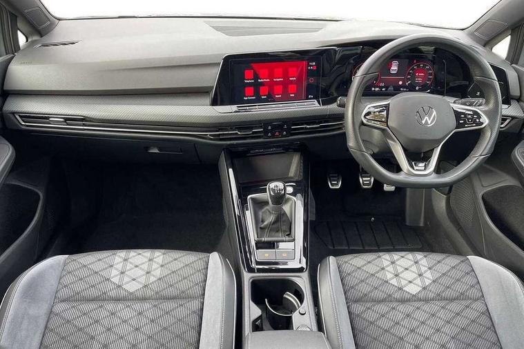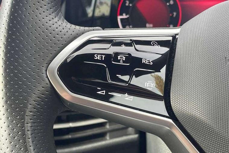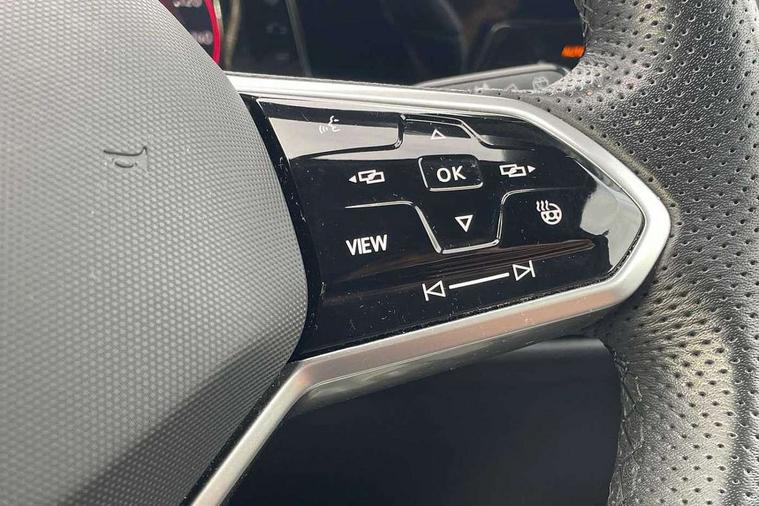 Adaptive cruise control (ACC) with speed limiter and front assist (reacting to vehicles pedestrians and cyclists), Car2X communication, Digital cockpit pro - 10.25" high resolution TFT dash display screen with customizable menus and information, Driver alert system, Driver profile selection, Dynamic road sign display, eCall - Emergency call service for SOS calls to emergency response, Lane assist, Mobile phone interface with wireless inductive charging function, Multifunction camera for distance control, Progressive steering, Speedo, rev counter, electronic odometer, trip, service interval display, exterior temperature and fuel gauge, Start/Stop function, USB-C ports in the front and rear centre console with increased charging performance, Warning buzzer and light for front seatbelts unfastened, Wireless app connect, Petrol Particulate Filter, XDS electronic differential lock for improved traction and handling, Premium USB cable in choice of either Apple or Android smartphone compatibility, Ambient lighting, exterior illuminated styling elements at the sides, Auto dimming rear view mirror, Automatic headlamp activation with Coming home and Leaving home feature, Automatic headlights, Body colour door handles, Body colour door mirrors with integrated indicators, Body colour rear roof spoiler, Electrically heated and adjustable door mirrors with memory feature, Front and rear electric windows, Heat insulating glass windscreen, Heated rear windscreen, High level 3rd brake light, Highway light, LED License plate illumination, R Line body coloured bumpers, Rain sensor, Rear fog light on one side and reversing lights on both sides, Rear lights incorporating LED technology, Rear side wing doors, Rear tinted glass 65% light absorbing from B pillar backwards, Rear windscreen washer and wiper with interval delay, Welcome light, 12V socket in front centre console, 12V socket in luggage compartment, 3 rear head restraints, 3 seat bench in 2nd row, Ambient lighting - Customisable 30 colour ambient lighting, Black roof lining, Brushed stainless steel pedals, Chrome plated surround to electric mirror button, window switch and air vent surrounds, Drivers and front passengers sun visors with vanity mirrors, Front + rear carpet mats in recycled material, Front centre armrest with storage compartment, Front cupholders x 2, Front passenger seat, Front reading lights x 2 incorporating LED technology, Front seat lumbar support adjuster, Front sports seats, Glovebox, Height adjustable front seats, Height and reach adjustable steering wheel, Isofix child seat preparation for 2 rear child seats and front passenger seat, Luggage compartment lighting, R Line door and side trim panel, R Line front seats integrated head restraints, R-Line leather wrapped multi function sports heated steering wheel, Removable luggage compartment cover, Sardegna cloth upholstery with front and outer rear seats Art Velour inner sides of bolsters, Split folding backrest with centre armrest and unsplit rear seat bench, Titanium black instrument panel, Woven fabric storage compartments in front and rear doors, 3 point height adj front seatbelts + pretensioners, 3 rear three point seatbelts, ABS, Child locks on rear doors, Driver and front passenger airbag with front passenger airbag deactivation, Drivers and front passengers safety optimised head restraints, Electronic parking brake with auto hold, ESC (Electronic Stability Control), Extended pedestrian protection measures, Front and rear passengers curtain airbag system including front side airbags, Front centre airbag, Front disc brakes, Front side airbags with curtain airbags, Rear disc brakes, Two tone horn, Tyre pressure monitoring system, Alarm with interior protection and deactivation via infotainment system, Electronic engine immobiliser, Carbon grey decorative inserts in dash and front door trim panels, High gloss black centre console,