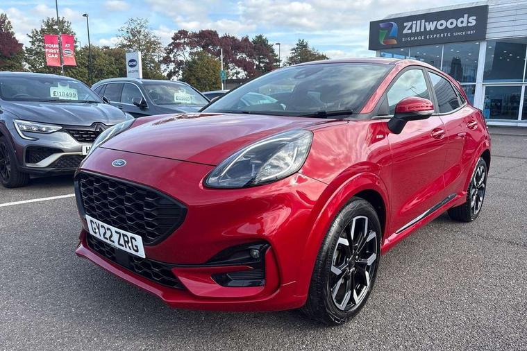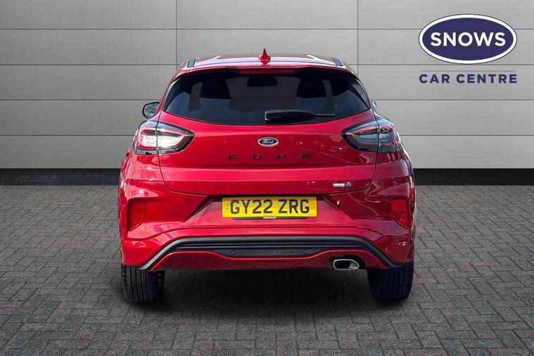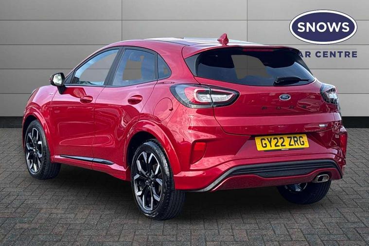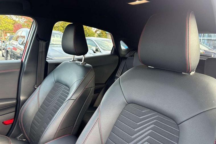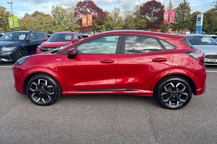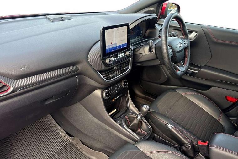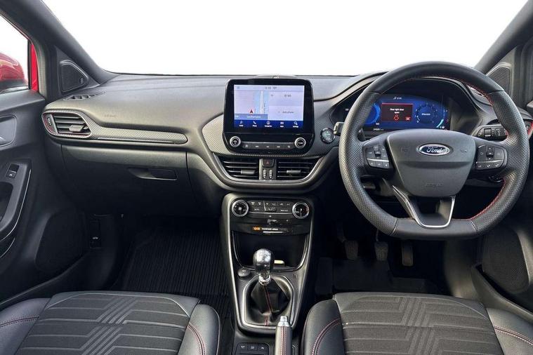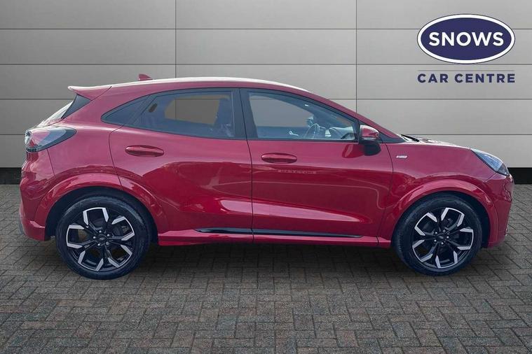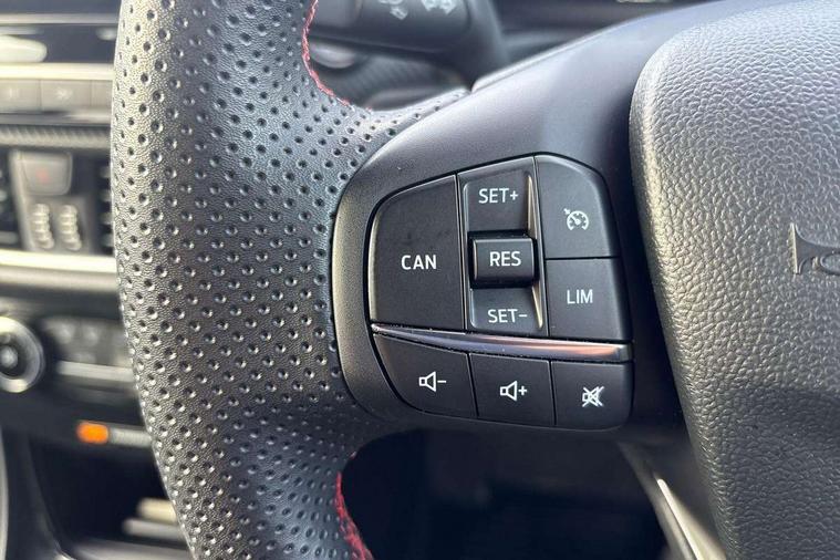 Driver impairment monitor, Emergency call service, Ford easy fuel, Full digital 12.3" instrument cluster, Lane keeping aid with lane departure warning, Power assist steering, Power start button, Rear parking sensor, Selectable drive modes(Normal, sport, Eco, trail, slippery), Speed sign recognition, Sport suspension, Automatic headlights with auto high beam, Automatic rain sensing wipers, Front fog lamps, LED daytime running lights, LED rear lamps, Power foldable heated door mirrors with puddle lamps, Privacy glass to side rear windows and tailgate glass, Quickclear heated windscreen, Rear side wing doors, Rear wiper, ST-Line body styling kit with unique grille and large body colour rear spoiler, Third brake light, 3 seat bench in 2nd row, Centre console with armrest and stowage, Ford megabox extended bootspace, Front and rear head restraints, Front floor mats, Manual 4 way driver seat adjust with lumbar adjustment, Manual 4 way passenger seat with lumbar seat adjustment, Sensico partial premium upholstery, Single front passenger seat, ST-Line flat bottomed sensico leather steering wheel with leather handbrake and aluminium gear knob, Wireless charging pad with electronic air temperature control (EATC), B&O Premium Audio system + Ford SYNC 3 navigation pack - Puma, Driver assistance pack with Lane departure warning - Puma, 3 rear seatbelts, Child safety lock, Electronic stability control (ESC) and hill start assist, Pedestrian/cyclist detection & post-collision braking, Pre collision assist with autonomous emergency braking, Tyre pressure monitoring system (TPMS), Thatcham alarm, Carbon look interior deco spears,