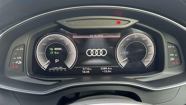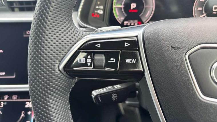 Audi connect safety and service (e-call), Audi connect with Amazon Alexa Integration, Audi drive select, Audi parking system plus - acoustic and visual park assist system for front and rear, Audi smartphone interface includes wireless Apple carplay/Android Auto, Audi virtual cockpit, Automatic start/stop system with coasting functionality, Bluetooth interface, Camera based traffic sign recognition, Lane departure warning system, MMI navigation plus with 10.1" and 8.6" touch screens, Power operated tailgate, Progressive steering, Rear view camera, Service interval indicator, Voice control system, 3 pin 10 amp domestic charging cable, 52 litre fuel tank, 7.4 kW onboard charger, Compact charging system, Hybrid propulsion system, Industrial connector CEE 32A, 230V, long and straight for the e-tron charging system, Mode 3 charging cable for public charging (AC), Sports suspension, Type 2 socket for AC charging, Audi front music interface, Audi sound system, Auxiliary input socket, DAB Digital radio, USB connection, Aluminium roof rails, Body colour rear roof spoiler, Body coloured door mirrors, Electric front/rear windows, Electrically adjustable heated and folding + automatically dimming exterior mirrors with memory function, Frameless auto dimming interior rear view mirror, Front intermittent wipers, Heat insulating darkened glass in side and rear windows, Heat insulating glass in windshield, LED rear lights with dynamic indicators, LED signature front daytime running light, LED third brake light, Matrix LED headlights, Matt black rear diffuser with diffuser strip and tailpipes in chrome, Matt black side air intake grille with inlay in matt aluminium, Privacy glass, Radiator grille in anthracite black matt, single frame in chrome and horizontal struts in matt aluminium silver, Rain and light sensors, Rear side wing doors, Rear wiper, 3 spoke high multi-function perforated leather steering wheel with contrast stitching and shift paddles, 4 zone deluxe automatic climate control, 40/20/40 split folding 3 rear seat bench in 3 parts with rear centre armrest, Audi phone box light, Black cloth headlining, Electrically adjustable front seats including seat height, fore/aft position, backrest angle and 4-way lumbar with memory for driver's seat, Front and rear floor mats, Front centre armrest, Front head restraints, Heated front seats, Height/reach adjust steering wheel, Illuminated door sill trims with S logo, Illuminated sun visors with vanity mirrors, Leather gear knob, Luggage compartment system, Rear headrests, Single front passenger seat, Stainless steel pedals and foot rest, Tool kit and car jack, LED Interior Ambient Lighting Pack - A6, Non smoking pack - A6, S line exterior style pack - A6, 3 point seatbelts on all seats, Airbags - Front side, front and rear including head, Audi pre-sense front, EBD - Electronic brakeforce distribution, Electromechanical parking brake, Electronic Stability Control (ESC) including ABS, ASR and EDL, Extended pedestrian protection measures, ISOFIX child seat mounting for front passenger seat and ISOFIX child seat mounting with Top Tether for outer rear seats, Manual child proof rear door locks, Seatbelt monitoring, Tyre pressure warning light, Warning triangle and first aid kit, Anti theft alarm with tow away protection, Anti-theft wheel bolts and wheel loosening detection, Immobiliser, Keyless Go, Remote central locking, Matt brushed aluminium inlays, Tyre repair kit,