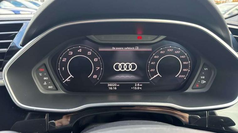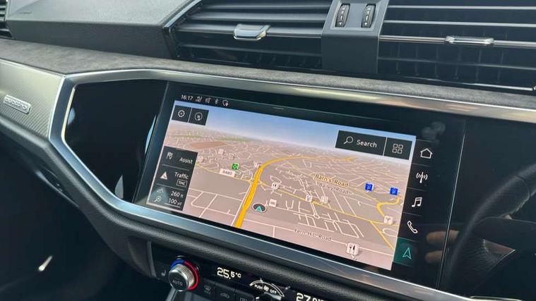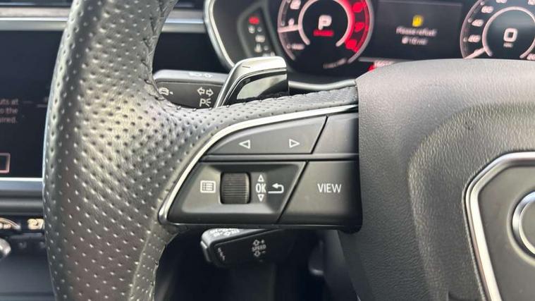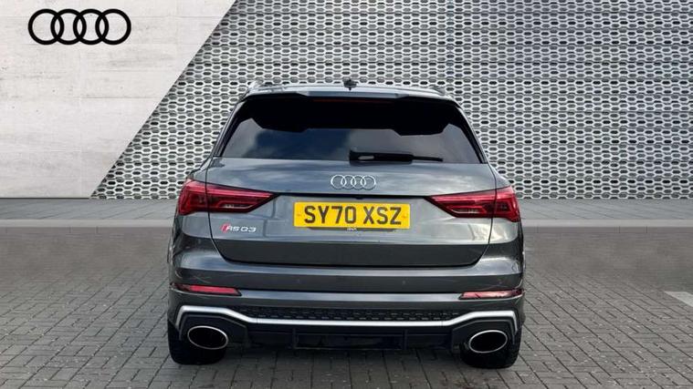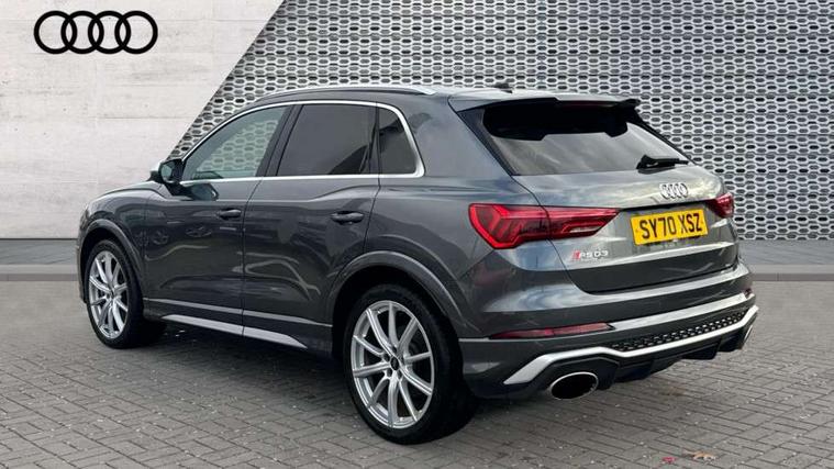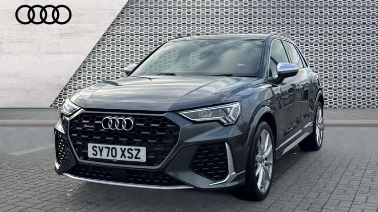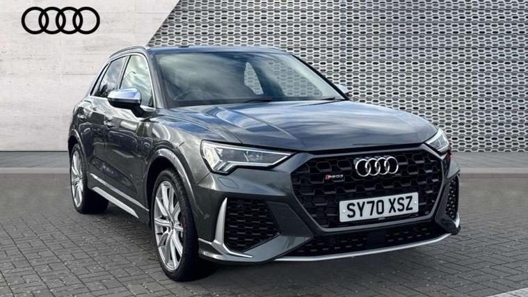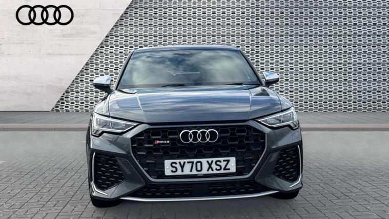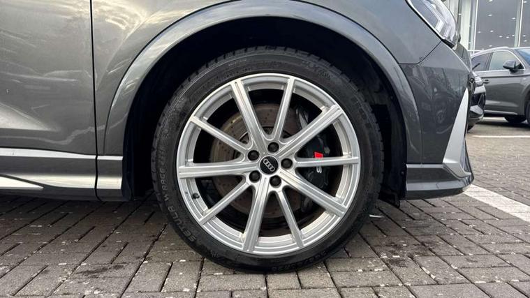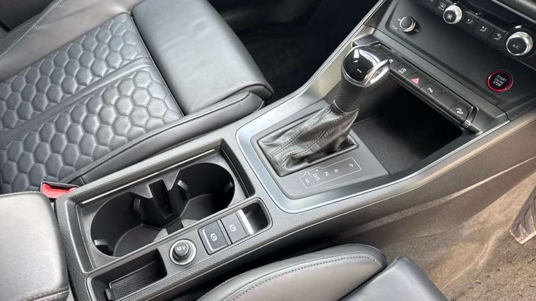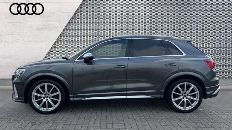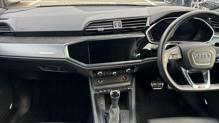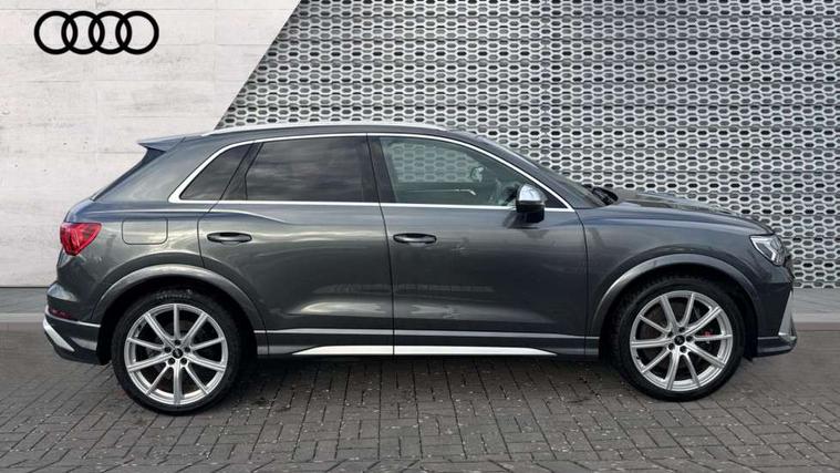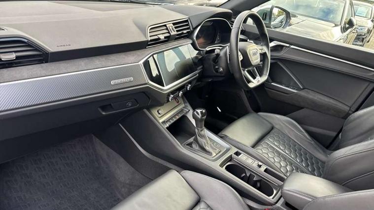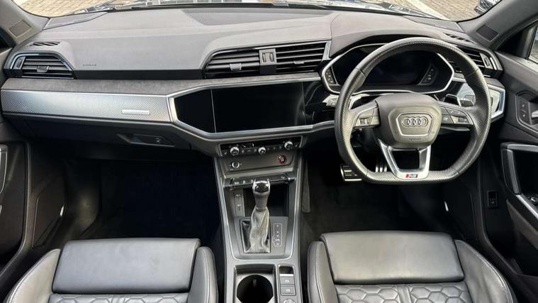Audi connect safety and service (e-call), Audi drive select with new RS modes, Audi lane departure warning, Audi parking system plus with front and rear sensors, Audi side assist, Audi virtual cockpit plus - 12.3 inch display, Bluetooth interface, Camera based traffic sign recognition, MMI Navigation Plus with high resolution 10.1 inch touchscreen colour display, Power operated tailgate, Progressive steering, Rear cross traffic alert, Smartphone interface includes wireless Apple carplay/Android Auto, Start stop system with recuperation, Voice control system with natural language interaction, Quattro all wheel drive, 2 USB-C ports with charge and data functions, Audi sound system, DAB digital radio module, Acoustic windscreen, Aluminium roof rails, Aluminium window trim, Audi Beam uses LEDs to project the Audi Sport logo, Auto dimming frameless rear view mirror, Body colour rear spoiler, Electrically folding, adjustable and heated door mirrors with integrated LED side indicators and kerb view function for passenger side, Flared wheel arches, Flat slits on single frame grille, Front spoiler blade, side blades, inserts on door trim strips and diffuser insert in matt aluminium look, Headlight washers, High gloss black finish B and C pillars, Honeycomb radiator grille in gloss black, Illuminated door sill trims with RS logo, LED headlights with LED daytime running lights and dynamic rear indicator, LED rear lights, Privacy glass dark tinted rear and rear-side windows (from B-pillar backwards), Rain and light sensors, RS specific bumpers with large front air inlets in black, 4 way electric lumbar support for driver and front passenger, Adjustable rear seat bench/backrest with centre armrest and cupholder, Black Alcantara elements - dashboard and the armrests in the front and rear doors, Black cloth headlining, Dual zone electronic climate control, Electrically adjustable front seats, Fine Nappa leather upholstery with front sports seats + honeycomb stitching and RS embossed logo, Front and rear floor mats, Front and rear head restraints, Front centre armrest, Heated front seats, ISOFIX child seat mounting for front passenger with airbag deactivation and outer rear seat including top tether attachment point for outer rear seats, Stainless steel luggage compartment sill finisher, Stainless steel pedals, Ambient lighting pack - RS Q3, Non smoking pack - RS Q3, 3x3 point rear seatbelts, 6 airbags - Driver, front passenger, curtain and side windows, Audi pre-sense front with pedestrain and cyclist recognition, Electrically operated child locks on rear doors, Electromechanical parking brake, Electronic stabilisation control including ABS, ASR and EDL, Hill descent control, Hill hold assist, Pre sense basic, RS brake system, Seatbelt monitoring, Tyre pressure warning, Warning triangle and first aid kit, Advanced key, Anti theft alarm, Anti theft wheel bolts, Aluminium look interior elements, Detail dashboard around MMI touch colour display in glass look, black with surround in aluminium look, Inlays in aluminium race anthracite, Tool kit, Tyre repair kit,