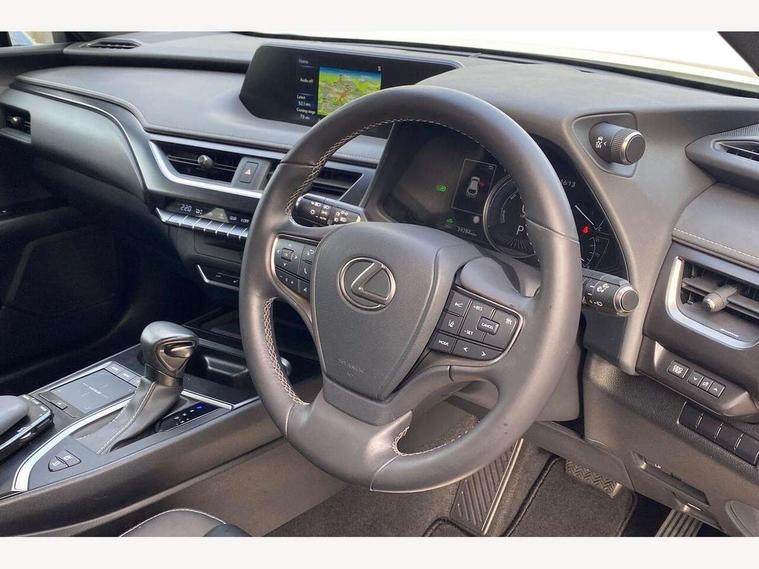 4 driving modes EV/Eco/Normal/Sport, 7" Lexus media display, 7" TFT instrument cluster, Analogue clock with GPS function, Apple car play/Android Auto, Compatible mobile phone bluetooth with audio streaming, E-call, Electric power steering (EPS) with speed sensitive features, Lane change flasher function, Lexus link connected services, Lexus safety systems + includes dynamic radar cruise control, pre collision system day and night, lane tracing assist, road sign assist, Push button start, Remote touch interface, Trip computer, Vehicle Dynamics Integrated Management (VDIM), Vehicle Stability Control (VSC), 2 front USB and 2 rear USB charging points, 6 speakers, AM/FM and DAB radio, AUX socket with VTR compatibility, CD player, Acoustic windscreen, Aero stabilising arch mouldings, Aero stabilising rear lights, Aero ventilated wheels, Bi-LED (low and high beam) headlights with Auto High Beam (AHB), Black roof drip mouldings, Black wheel arches, Body adhesive, laser screw welding and laser brazed roof structure, Body coloured bumpers, Electric adjustable/heated door mirrors, Front and rear one touch power windows, with anti-jam protection, Headlight cleaners, LED daytime running lights, LED tail lights, LED third brake light, Light green UV glass, Rain sensor windscreen wipers, Rear side wing doors, Rear wiper, Shark fin roof aerial, Single hidden exhaust pipe, Towing preparation, Variable front intermittent wipers, 12V accessory port centre console and luggage compartment, 2 cup holders in the front and rear centre console, 2 x folding shopping bag hooks in boot, 2 x sun visors with vanity mirror and lamp, 3 seat bench in 2nd row, 4 x tie down hooks in the boot, 5 headrests, 6 way driver and passenger manually adjustable front seats, 60/40 split folding rear seat, Card holder installed in driver and passengers sun visors, Centre armrest with storage, Driver and passenger door pocket, Dual zone electronic climate control + Nano-E humidity sensor, Glovebox, Illuminated entry system, Leather gear lever, Leather steering wheel, LED interior illumination, Map pockets in the rear of passenger's front seat, Premium fabric upholstery, Rear air vents with 2 USB chargers, Rear armrest with 2 cupholders, Single passenger seat, Storage tray under audio panel, Textile carpet mats, Tilt/reach adjustable steering column, Under deck storage, Under desk side storage, 2 x Isofix child rear seat restraints, 3x3 point rear seatbelts, Anti-lock braking system (ABS), BAS (Brake Assist System), Driver and front passenger 2 stage airbag, Driver and front passenger knee airbag, Driver/front passenger side airbags, EBD - Electronic brakeforce distribution, ECB (Electronically Controlled Brake System), Electric child locks, Electric parking brake, Front adjustable seatbelt anchor points, Front and rear curtain shield airbags, Front outer seatbelt+pre-tensioners, force limiter+tension reduction: 3-point with active safety link to PCS, Hill start assist control (HAC), Passenger airbag cut-off device, Rear outer seatbelt+pre-tensioners, force limiter+tension reduction: 3-point with active safety link to PCS, Centre belt w/o pre tensioner+force limiter, Secondary Collision Brake (SCB), TRC (Traction Control), Tyre pressure warning, 2 x remote key fobs, Anti theft system : Alarm instruction sensor, glass breakage sensor and engine immobiliser, Locking wheel nuts, Remote central door locking, Speed sensitive auto door locking, Two motion door lock with double lock, VIN Window etching, 17" Alloy wheels, Tyre repair kit,