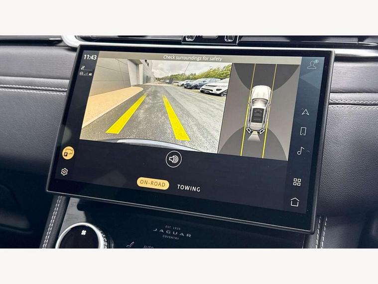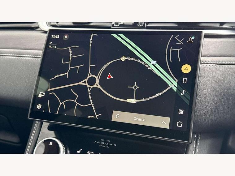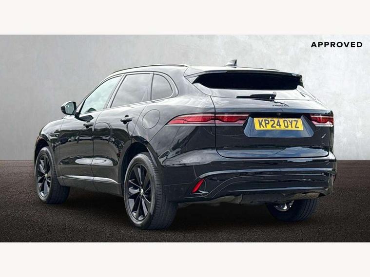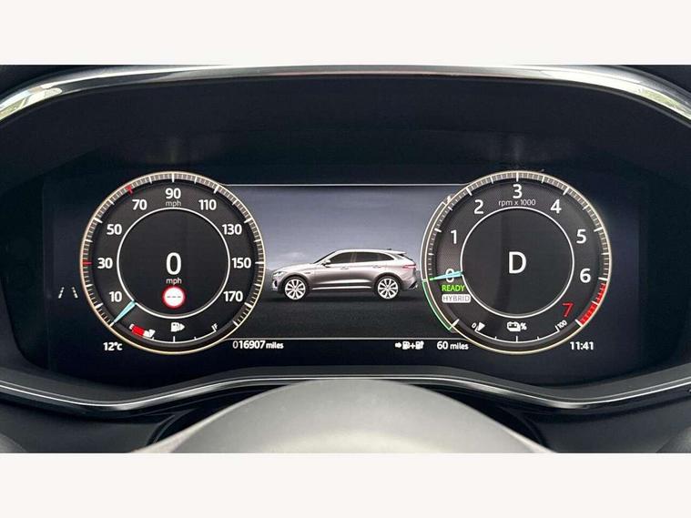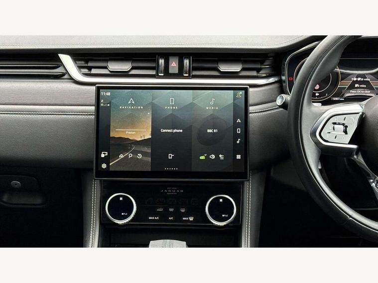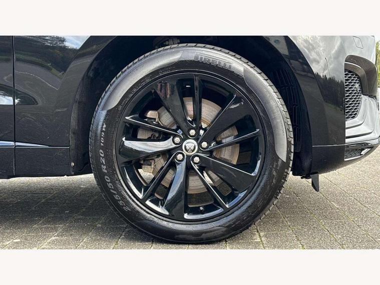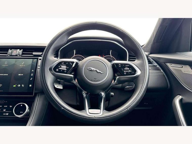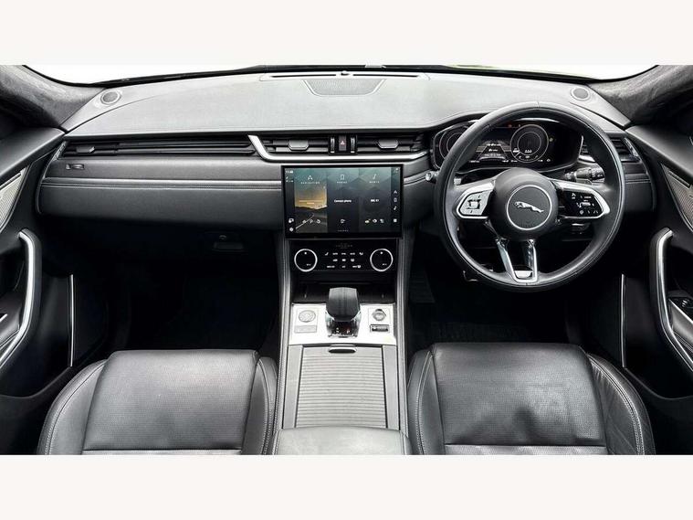 11.4" touchscreen, Adaptive cruise control with steering assist, Android Auto, Apple car play, Blind spot assist, Bluetooth connectivity, Clear exit monitor, Driver alert system, Driver condition monitor, eCall emergency call system, Eco driving style assistant, Electric power assisted steering, InControl remote, Interactive driver display digital with 12" TFT display, Jaguar Toggle shift selector, Lane departure warning system, Lane keep assist, Outside temperature gauge, Personalisation profile management, Pivi pro connected navigation system with app interface and media storage, Pro services and wifi hotspot, Push button starter, Rear collision monitor, Rear traffic monitor, Service interval indicator, Speed proportional steering, Start up sequence with movement in dials and lighting, Traffic sign recognition with adaptive speed limiter, Trip computer, Voice control system, Wireless device charging, 7 kW onboard charger, 8 speed automatic transmission, AC/DC charging, Adaptive dynamics, All terrain progress control, All Wheel Drive (AWD), Configurable dynamics, Home charging cable, Open differential with torque vectoring by braking, Public charging cable, AM/FM radio, Bluetooth streaming, DAB Radio (Digital Audio Broadcasting), Dynamic volume control, InControl apps, InControl protect, iPod integration, 3 flash lane change indicators, AHBA and animated directional indicators, Approach Illumination, Auto dimming rear view mirror, Automatic headlights, Electric heated/power fold memory door mirrors with approach lights and auto dimming driver side, Electric windows with one touch open/close and anti trap, F-Pace and R Dynamic badge, Green tinted glass, Heated front windscreen + heated washer jets, Heated rear window with timer, Illuminated metal tread plates with Jaguar script, Jaguar script and leaper, LED High level third brake light, LED tail lights, Metal load space scuff plates, Non acoustic front windscreen, P400e AWD badge, Privacy glass (rear side windows and rear screen), R Dynamic badge on side door, Rain sensor windscreen wipers, Rear fog lights, Rear metal tread plates, Rear side wing doors, Rear wiper, Trailer stability assist, Variable front intermittent wipers, 12V power point front, 3 rear headrests, 3 seat bench in 2nd row, Additional power sockets - Two additional USB sockets in rear centre console and one 12V socket in trunk, Air distribution speed, Bright metal foot pedals, Centre armrest console, Centre console with side storage, Configurable cabin lighting, Deletion loadspace storage rails, Door sill tread plates, Ebony suede cloth headlining, Electrically adjustable steering column, Fold flat front seats, Front centre armrest with storage compartment, Front door storage space, Glovebox finisher with jaguar script, Heated steering wheel, Hooks in loadspace, Illuminated glovebox, Interior front door handles with separate locking switches, ISOFIX on outer rear seats, Jaguar sense, Leather steering wheel, Luggage tie downs in loadspace, Mist sensing, Multifunction steering wheel, Overhead lighting console, Overhead stowage for sunglasses, Passive front head restraints, Premium carpet mats, Rear air vents, Rear armrest with twin cupholders, Rear centre headrest, Rear door storage space, Reversible boot floor, Satin chrome gearshift paddles, Shopping bag hook, Single front passenger seat, Sunvisors with illuminated vanity mirrors, Twin front cupholders with cover, Online Pack with data plan - F-Pace, 380mm front brakes and 325mm rear brakes, 3x3 point rear seatbelts, ABS, All surface progress control (ASPC), Brake pad warning light, DSC - Dynamic Stability Control, Electric parking brake (EPB), Emergency brake assist, Front airbags with passenger seat occupant detector, Front and rear seatbelt reminder, Front side airbags, Full length side window curtain airbag, Hill launch assist, Power operated child locks, Traction control, Tyre pressure monitoring system, Immobiliser, Keyless entry, Keyless Start, Locking wheel nuts, Perimeter alarm, Remote central locking, Valet mode,