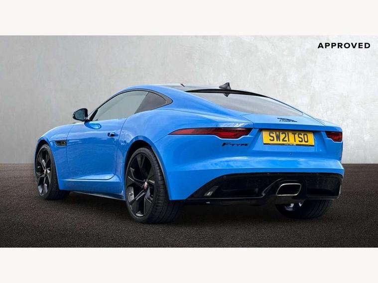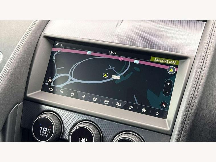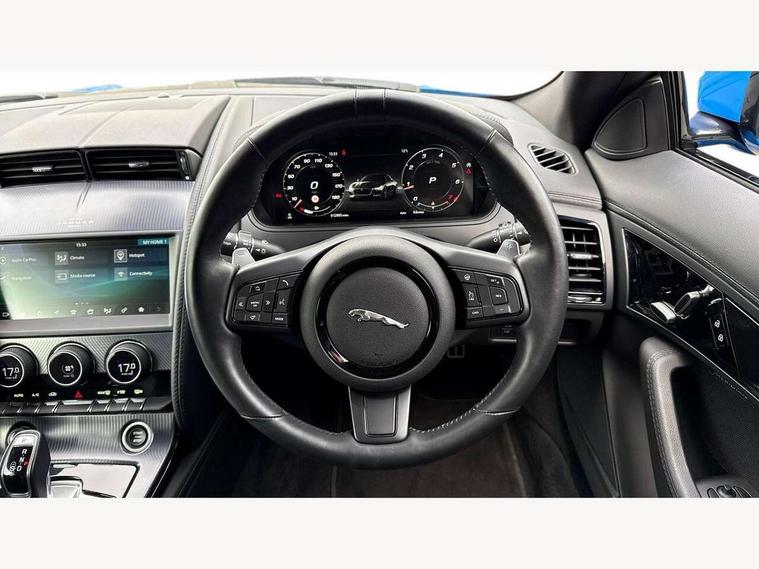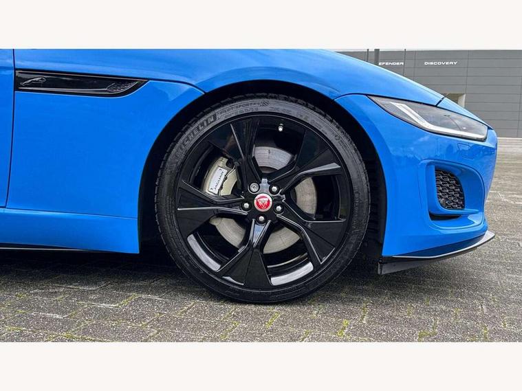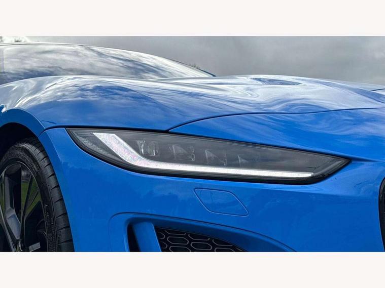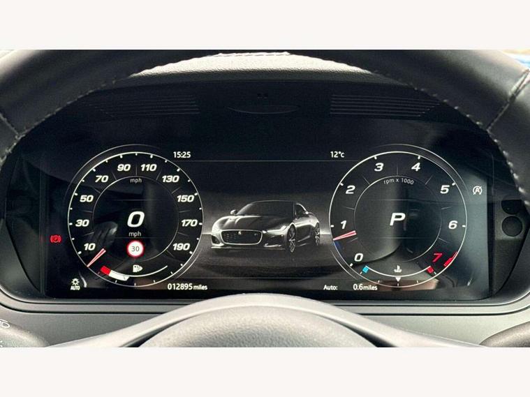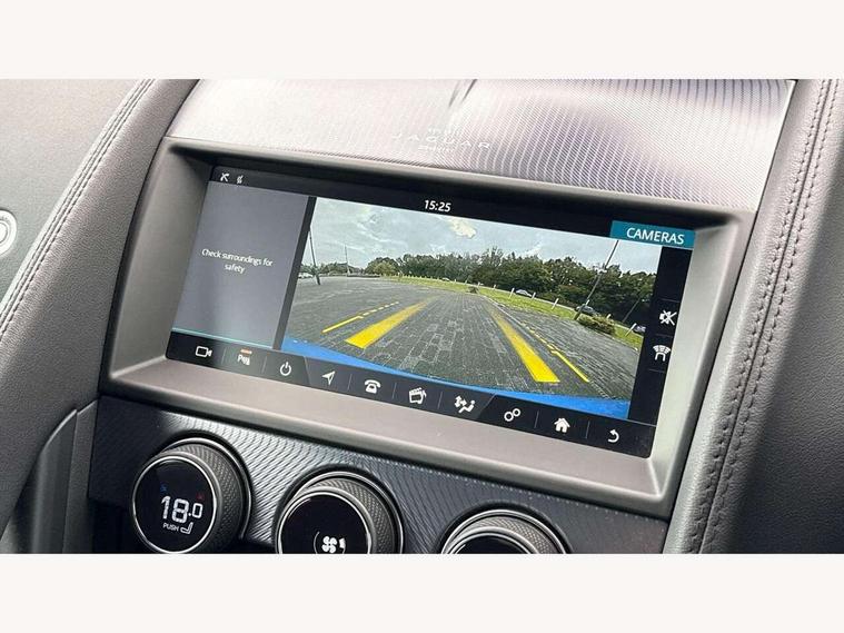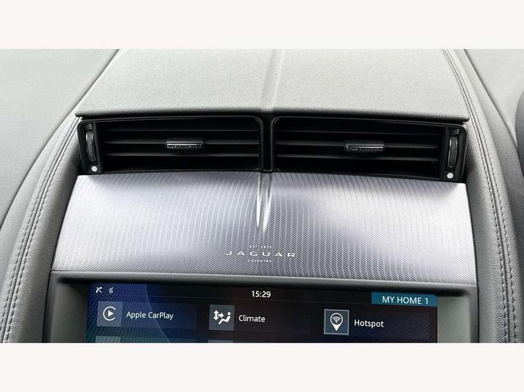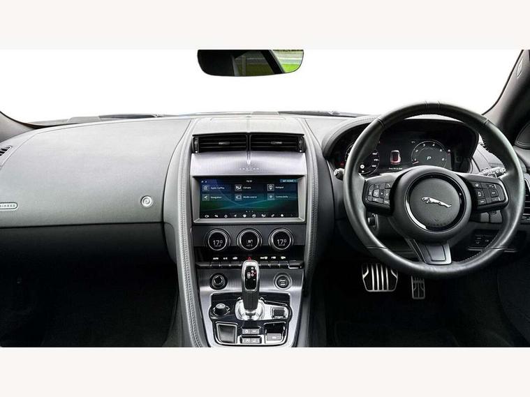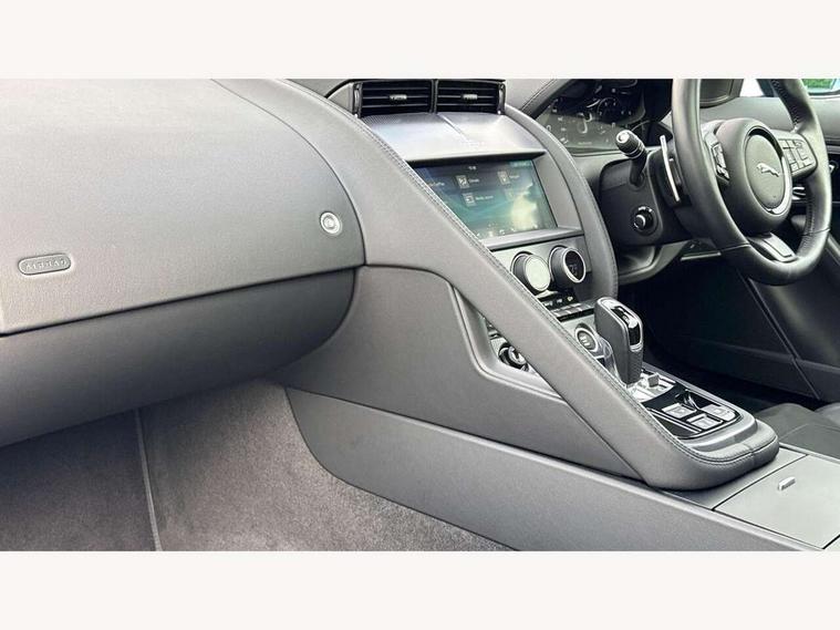 10" touch screen, Android Auto, Apple CarPlay preparation, Bluetooth telephone connectivity, Boot entrapment release lever, Connected navigation pro, Cruise control + speed limiter, Driver condition monitor, Front and rear parking aid, Incontrol pro service, InControl remote premium, Interactive driver display, Jaguar Drive Control with toggle switch - Rain/Ice/Snow driving modes, Lane departure warning system, Lane keep assist, PAS, Push button start, Rear view camera, Stop/start system, Traffic sign recognition with adaptive speed limiter, Trip computer, Open differential with torque vectoring by braking, Passive suspension, Sport mode, Audio remote control, Digital Audio Broadcast radio-DAB, InControl app, InControl protect, Meridian 380W sound system with 10 speakers, Auto dimming rear view mirror, Automatic headlights, Body coloured door mirror caps, Chrome exhaust finisher, Deployable boot lid spoiler, Electric front windows, Fixed panoramic roof with manual black blind, Flush exterior door handles, Headlight washers, Heated electric door mirrors, Infra red reflective glass, Jaguar bespoke paint, LED tail lights, Metal tread plates with R Dynamic branding, Premium LED headlights with signature DRL, Rain sensing windscreen wipers, Reims badge, Solar attenuating windscreen, Tinted glass, Bright metal foot pedals, Cabin lighting, Contrast carpet mats, Deployable front air vents, Electrically adjustable steering column, Front centre armrest, Front headrests, Heated front seats, Jaguar sense, Leather/Suedecloth upholstery with sport seats, Low line cubby box, Lumbar support, Morzine headlining - Ebony, Overhead console, Pollen filter, Power socket, Rain, Ice and snow mode, Single zone climate control, Steering wheel mounted paddle shift, Sunvisors with vanity mirrors, Twin front cupholders, USB with 12V socket in centre console, Black exterior pack - F-Type - Reims Edition, Climate pack 1 - F-Type, Interior black pack - F-Type, Online pack - F-Type, Smartphone pack - F-Type, 355mm Front and 325mm Rear brakes, 6 airbags - Driver/front passenger airbags, front and rear curtain airbags and front side airbags, Anti-lock braking system (ABS), DSC - Dynamic Stability Control, Electronic brake force distribution, Electronic parking brake, Emergency brake assist, Emergency braking, Front/rear seatbelt pre-tensioners, Pedestrian contact sensing and deployable bonnet, Seatbelt reminder for driver and front passenger, Silver brake calipers, Tyre pressure monitoring system, Deadlocks, Drive away door locking, Engine immobiliser, Locking wheel nuts, Perimetric and volumetric anti theft alarm, Remote central locking, Two stage unlocking, Valet mode, Delta aluminium centre console, 20" 5 split spoke gloss black - style 5102, Tyre repair system,