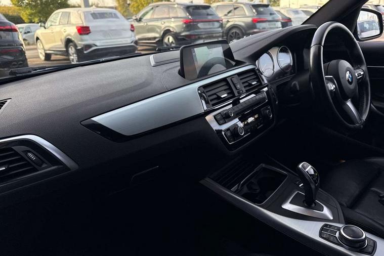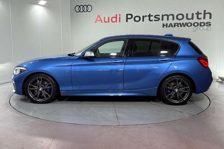 Automatic start/stop system, BMW Online services, BMW remote services, BMW Teleservices, Brake force display, Brake pad wear indicator in front and rear, Check Control warning system for monitoring of lights and door/luggage compartment open warning, Cruise control with brake assist, Eco pro mode, Instrument cluster with speedometer with miles per hour read out, tachometer and fuel gauge, Lights on warning by audio warning signal when ignition is switched off, Oil temperature display via on board computer in instrument cluster, On board computer - average speed+fuel consumption, service interval, clock/date, odometer/trip meter, outside temperature display and ice warning, On board diagnostics, Optimum shift indicator, Personal Profile, Real time traffic information, Speed limiter, Variable sport steering, Battery age recognition function, Drive Performance Control, Sport automatic transmission with Launch Control, Sports function on gearbox with steering wheel mounted gearshift paddles, BMW professional radio with CD player, DAB Digital radio, Harman/Kardon loudspeaker system, Body colour door handles, Body colour front and rear bumpers, Body colour roof mouldings, Clear lenses direction indicator lights, Dark chrome exhaust tailpipes in dual, round and split, Darkened rear lights with LED light bars, Daytime driving lights, Direction indicator side lights in exterior mirrors, Dynamic brake lights, Electrically adjustable heated door mirrors and washer jets, Ferric grey air blades, Ferric grey mirror caps, Follow me home headlights, Front and rear bumper system with replaceable deformation elements, Front and rear electric windows with open and close fingertip control, anti trap facility and comfort closing, Green tinted heat protection glazing, Headlight beam throw control, Heated windscreen washer jets, High gloss black kidney grille with black slats, High level third brake light, LED exterior front door handle lights, Lightweight engineering, M aerodynamic bodystyling, Nearside reverse light in rear light cluster, Offside rear fog lights, Rain sensor including auto headlights activation, Rear window aerial, Rear window wiper, Shark fin antenna, Sun protection glass, Visible VIN plate, Welcome lighting, 12V power socket in centre console, 12V power socket in passenger footwell, 60/40 split folding rear seat, Ambient lighting - switchable BMW classic orange/ cold white LED, Ambient lighting front and rear, Anthracite headlining, Anthracite Velour front and rear floor mats, Conditioned based service, Dakota leather upholstery, Door sill finishers with M140i designation, Driver and passenger illuminated vanity mirror, Four grab handles integrated in roof lining, Front and rear side armrest integrated into door trim, Front door exit lights, Front folding sliding armrest with storage compartment, Front footwell lights, Front head restraints, Front LED reading lights, Front sports seats with electric side bolster adjustment, Front storage compartment in centre console and in door trim, Front/rear courtesy lights with soft on/off dimming, Glove box handle with chrome surround, Glovebox, Interior light in front centre interior mirrors and rear centre auto interior light activation when door is opened when ignition switched off, Isofix child seat for two outer rear seats, Leather gear knob and handbrake grip, LED luggage compartment lighting, LED rear interior light with centre reading lights, Luggage compartment access via BMW roundel, Luggage compartment lighting, M sports multi function leather steering wheel, Manually adjustable steering column, Multi-function controls for steering wheel, Rear folding head restraints, Sunvisors with vanity mirrors and ticket pocket, Two cupholders with sliding cover and inlay mat, Two sills lashing eyes in the luggage compartment, Two zone automatic air conditioning, 3 point seatbelts on all seats, front pyrotechnic belt tensioners, stopper and belt force limiters, rear coded belt buckles, Active differential brake (ADB), electronic differential lock in DSC-OFF mode, Airbags - Front driver and passenger, front and rear head, front side, curtain head protection, Anti lock braking system (ABS) with brake assist, Automatic Stability Control (ASC), Battery safety cut-off, BMW emergency call, Brake drying, Brake energy regeneration, Braking readiness, Cornering brake control (CBC), Crash sensor activating central locking release, hazard warning lights, Driver and front passenger seat belt security check, DSC+, Dynamic brake control, Dynamic Traction Control - DTC, Front passenger manual airbag deactivation, Front ventilated brake disc, Hill start assist, M Sport braking system, Rear brake discs, Rear child proof door locks, Side impact protection, Twin horns, Tyre pressure monitoring system, Warning triangle and first aid kit, Automatic drive away locking facility, Central locking switch for all doors, fuel filler cap and luggage compartment, Locking wheel bolts, Remote central locking with two Integrate key, one button for opening and closing all lock, open and close window, button for open luggage compartment, Remote control integrated key with blue inset, Start/stop button with comfort go keyless engine start and auto start stop deactivation button, Thatcham Cat.1 alarm and immobiliser, High performance tyres, Reduced rolling resistance tyres,