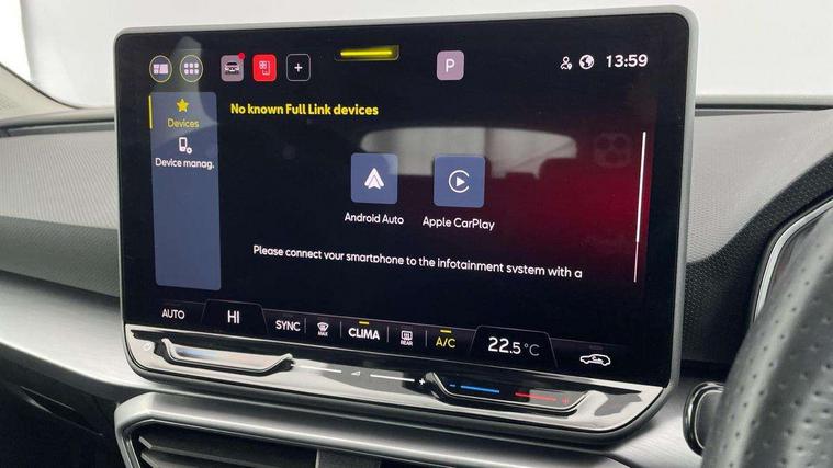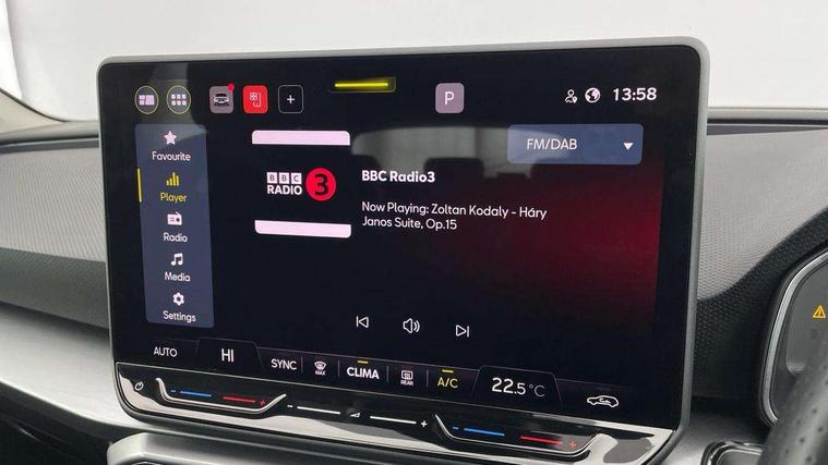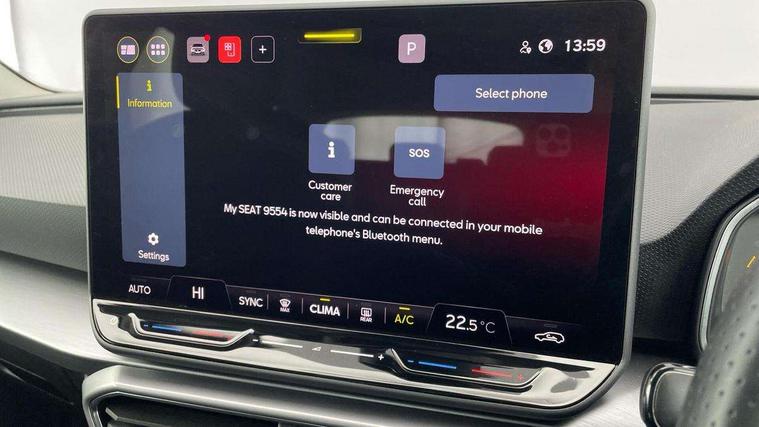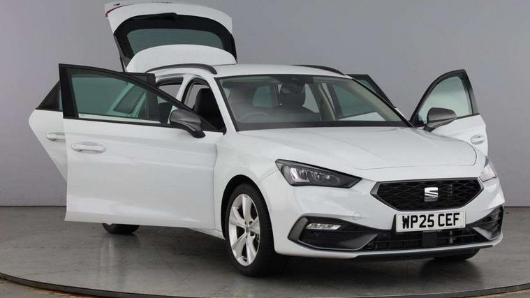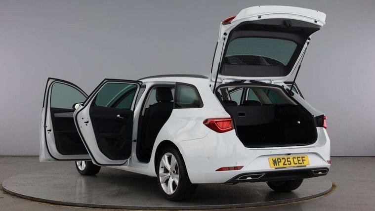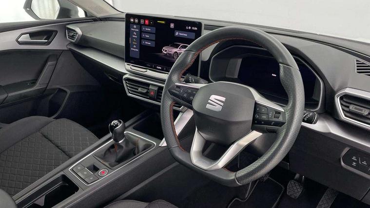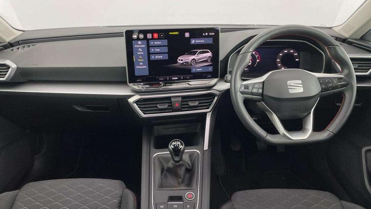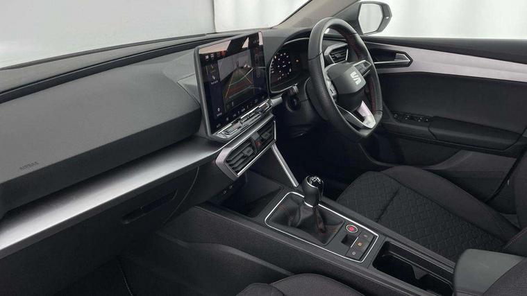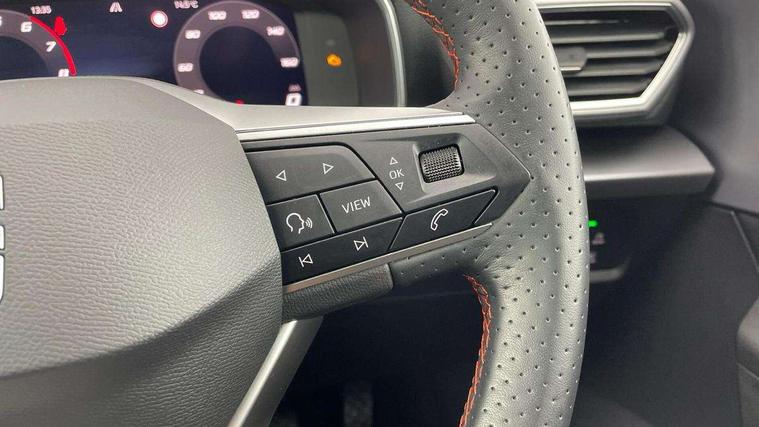 Digital cockpit, E-call, Four x USB Type C ports, Front assist with forward collision warning braking reaction to vehicles, pedestrians and cyclists, Full link smartphone integration with Mirror Link, wireless Apple CarPlay and wired Google Android Auto, Lane assist, Lockable tailgate, Park assist (inc front/rear parking sensors), Power assisted speed sensitive electro-mechanical steering, Rear view camera, RPM, trip computer, outside temp gauge, instrument light brightness, low fuel warning light, lights on reminder, gearshift indicator, SEAT drive profile with 4 modes (Eco/Normal/Sport/Individual), throttle response, Service interval indicator, Start/stop system with regenerative braking, Sports suspension, XDS electronic differential lock and dynamic traction support, 7 speakers, Auxiliary input socket, Auto dimming rear view mirror, Body colour door handles, Body coloured bumpers, Cosmo grey exterior mirrors with integrated LED indicators, Dark tinted rear windows, Dynamic headlight range control, Electric front/rear windows, Electrically adjustable, heated and folding door mirrors, FR sports bumper, Illuminated front door sill, LED front fog lamps, LED Headlights with dynamic turn signals, LED tail lights and rear fog lights with rear coast to coast lighting, Matt black roof rails, Rear side wing doors, Rear wash/wipe, Separate daytime running light with automatic headlight control and coming home feature, Third brake light, Welcome light silhouette from exterior mirrors, Windshield wiper intermittent control with light/rain sensor, 12v power point in centre console, 3 seat bench in 2nd row, 60/40 split rear bench seat with armrest, Ambient lighting with glovebox, footwell and single monocolour, Driver/passenger manual seat height adjustment, Dust/pollen filter, Flat bottomed perforated leather steering wheel with red stitching and FR logo and leather gear stick, Front and rear height adjustable headrests, Front and rear reading lights X 4, Front centre armrest, Front seatback storage pockets, Height/reach adjust steering wheel, ISOFIX points in outer rear seats with top tether anchorage points, Luggage tie-down hooks, Lumbar adjustment for front seats, Single front passenger seat, Sliding boot cover, Sunvisors with covered illuminated mirror, Three zone climate control, Two tone cloth upholstery, Media system plus with navigation - Leon, 3 point seatbelts on all rear seats, ABS, Brake control system - ESC and brake booster, Child proof door locks, Driver and front passenger airbags with front passenger airbag de-activation, front side and curtain airbags, Electronic parking brake, Extended safety system - seat belt tensioner, window closure and hazard lights, Hill hold control, Rear disc brakes, Seat belt reminder for front and rear seats, Tiredness recognition system, driver alert system, Tyre pressure monitoring system, Anti theft alarm system with interior monitoring in cab, backup horn and towing protection, KESSY Go (Keyless start), Locking wheel bolts, Wireless phone charging, Chrome interior detailing, 17" Dynamic Bi-spoke alloy wheels with 91W tyres, Tool kit,