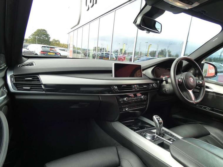 20GB Hard drive, 6.5" colour display screen, BMW online + Apps interface, BMW remote services, BMW Teleservices, Brake force display, Check control system, iDrive controller and display with 10.2" colour display monitor, Lights on warning, M Servotronic power steering, On board computer, Outside temperature gauge, Park distance control, Professional multimedia navigation system, Real time traffic information, Remote tailgate release, Service interval indicator, Stop/start button, Voice control system, Adaptive M suspension, Diesel particulate filter, Sport automatic transmission, Auxiliary point for auxiliary devices, BMW professional twin tuner radio with single CD player and MP3 CD playback facility, DAB Digital radio, Auto dimming rear view mirror, Auto upper tailgate release, Body colour bumpers, Body colour door handles, Clear indicator lenses, Door mirror integrated indicators, Double kidney grille with chrome surround and titanium slats, Downlights in exterior door handles, Electric folding/heated door mirrors + electrochromic on drivers side, Electric front/rear windows with anti-trap, Electric headlight adjustment, Ferric grey mirror caps, Follow me home headlights, Green tinted glass, Headlight washer jets, Heat insulated glass, Heated washer nozzles, Individual door sill finishers, Intermittent rear wash/wipe, M aerodynamic body kit, Rain sensor with auto light activation system, Stainless steel exhaust pipes, Two piece tailgate, 12V accessory power point in centre console, 12V socket in luggage compartment, 2 individual folding 3rd row seats, 2 x 12V socket in rear centre console, 40:20:40 split folding rear seats, Ambient interior lighting, Anthracite Velour floor mats, Boot lashing points, Electric front seats + driver memory, Front and rear cupholders, Front armrest with storage bin, Front/rear courtesy lights with soft on/off dimming, Front/rear reading lights, Gearshift paddles on steering wheel, Heated front seats, Height adj rear head restraints, Illuminated glovebox with lock, Isofix child seat preparation, LED footwell lights, Luggage compartment cover, M leather steering wheel, Reach + rake adjustable steering column, Securing rings in luggage compartment, Storage bins on all doors, Sunvisors with illuminated vanity mirrors, Tilt/height adjustable front head restraints, Toolkit located in luggage compartment, Extended storage pack - X5, 3 rear 3 point seatbelts, ABS, ADB - Automatic Differential Brake, Automatic Stability Control (ASC), BMW emergency call, Child locks on rear doors, Cornering brake control (CBC), Crash Sensor - activates hazard/interior lighting + unlocks doors, Driver/Front Passenger airbags, DSC - Dynamic Stability Control, Dynamic brake control, Dynamic Traction Control - DTC, Electronic brake force distribution, Electronic parking brake, Front and rear head airbags, Front passenger airbag deactivation, Front passenger seat occupancy sensor, Front side airbags, Height adjustable front seatbelts, Hill start assist, Pyrotechnically pre-tensioned front seatbelts, Tyre pressure monitor, Warning triangle and first aid kit, Locking wheel nuts, Remote central locking, Thatcham cat 1 remote alarm/immobiliser, Run flat tyres,