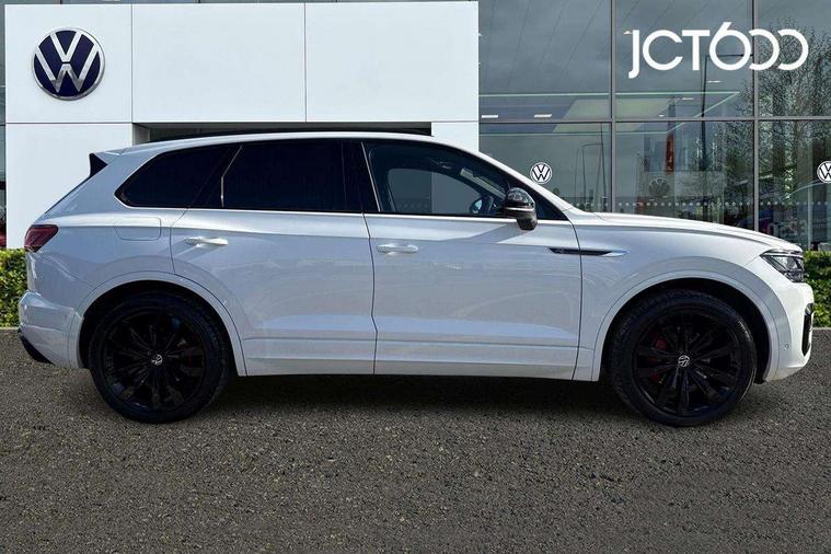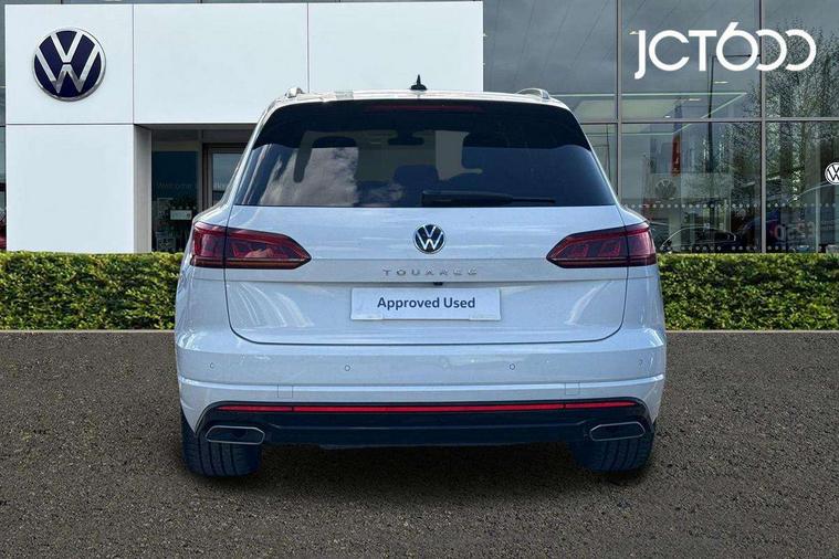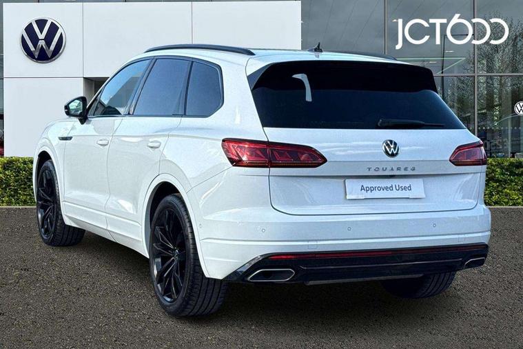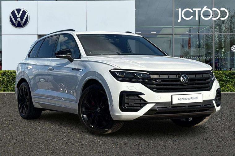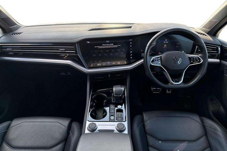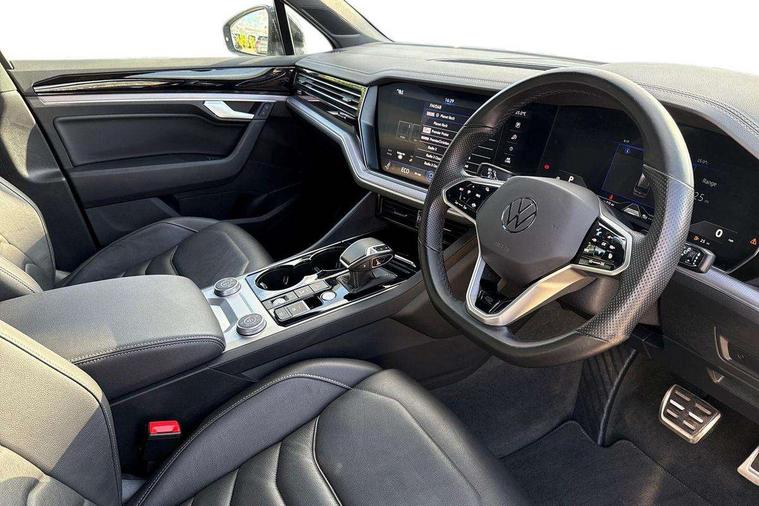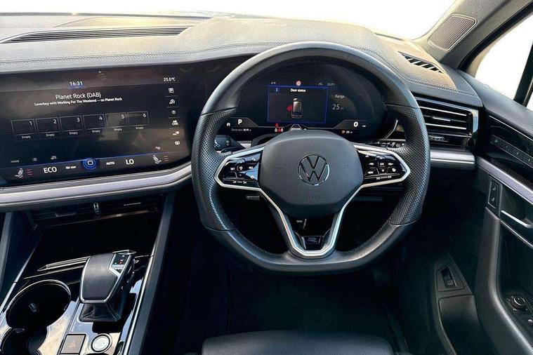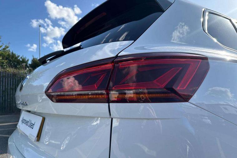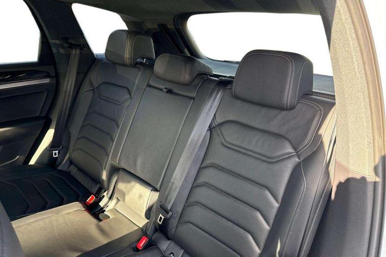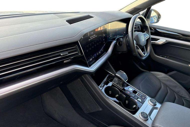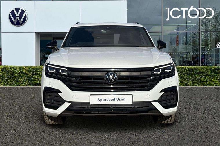 2D/3D map view, ACC - Adaptive cruise control with front assist, forward collision warning, distance monitoring, city emergency brake and speed limiter, Apple car play/Android Auto, Audible and visual fatigue detection system, Bluetooth hands free telephone connection, Car information display, Drive select with Damper control, Driver alert system, Driver profile selection, Dusk sensor, Dynamic road sign display camera controlled system with visual warning for traffic and road signs, eCall emergency system, Fully electric tailgate + keyless entry and start, Instrument cluster, MirrorLink, Multifunction camera, Multifunction computer premium with 7" colour display, One touch indicators with repeat function, Service interval indicator, Speed sensitive power steering, Start/stop system with regenerative braking, Tailgate power latch, Think blue trainer driver tips and journey analysis, Traffic sign recognition, Voice control system, Wireless Smartphone charger, 24 litre AdBlue tank, Torsen limited slip differential, DAB Digital radio, Dynamic navigation based on TMC+, Gesture control for infotainment system, Multi device interface (MDI) with illuminated USB-C connection, Music playback - MP3, WMA and AAC files, SD card slot, Simultaneous pairing of 2 compatible mobile devices, SMS functionality - read, compose and send SMS messages using touch-screen display, Title and cover art display, Volkswagen media control, Adaptive low beam for urban and motorway use, Auto dimming rear view mirror, Automatic coming/leaving home lighting function, Automatic headlights, Black anodised roof rails, Black door mirrors, Black rear diffuser, Black side window surrounds, Black upper and lower grille louvres extending into headlights and radiator grille, Body colour door handles, Body coloured wheel arches, C signature gloss black front air intake, Chromed tailpipe on the left and right integrated in the bumper with trapezoid design, Dynamic headlight range control, Electric front tilt/slide panoramic sunroof and fixed rear sunroof, Electrically power adjustable, heated, folding, auto dimming, front passenger exterior door mirror lowering function, Front and rear electric windows, Galvanised body, Gloss black finish B pillar, Gloss black rear diffuser, Headlight washers, Heat insulating glass in side and rear windows, Heated windscreen washer jets, IQ.Light-LED matrix headlight, daytime running light with dynamic cornering light and indicator, LED 3rd brake light, LED rear fog light, LED rear number plate lights, Plastic scuff plates in door apertures, Poor weather light, Puddle lights, Rain sensor, Rear side wing doors, Rear wiper, 12V socket in front and rear centre console and boot, 2 Coat hooks on B pillar, 3 rear head restraints, 3 seat bench in 2nd row, 3 spoke sport heated leather multi-function sports steering wheel with gear shift paddles - generation 2, 4 way adjustable front head restraints, 4 way electric lumbar support for driver and front passenger, 4 zone climate control, 40:20:40 split folding slide/recline rear seat, B pillar vents, Black lower edge of door extending sills, Branded points of interest, Double sun visor for drivier and passenger with LED illuminated vanity mirrors, Electric luggage compartment cover, Folding rear centre armrest with 2 cupholders, Front + rear carpet mats, Front centre armrest with storage box, Gear shift indicator, Height/reach adjust steering wheel, Illuminated air conditioned glovebox, Isofix preparation for 2 rear child seats, Jack and tool kit, Leather trimmed gear knob with gloss black inlay/aluminum trim, Leatherette door trim, LED luggage compartment lighting, Load through provision, Luggage compartment with load lashing rings, Plastic loading edge protection, Rear seat remote release levers, Single front passenger seat, Soul black headlining, Stainless steel pedals, Innovision cockpit pack - Touareg, 3 point front seatbelts with pre-tensioners, ABS, Active bonnet, Automatic post collision braking system, Curtain airbags, Driver/Front Passenger airbags, EBD + Brake Assist, EDL, Electronic parking brake with auto hold, ESC with ASR, Front seat side impact airbags, Hill descent control, Hill start assist, Passenger airbag deactivate switch, Seatbelt warning lamp and buzzer, Three 3 point rear seatbelts, Two tone horn, Volkswagen roadside assistance, Warning triangle and first aid kit, Alarm with interior monitoring in cab, backup horn and towing protection, Child security locks for front and rear doors, Electronic engine immobiliser, Remote central locking, Black decorative trims on the side windows, High gloss black centre console,