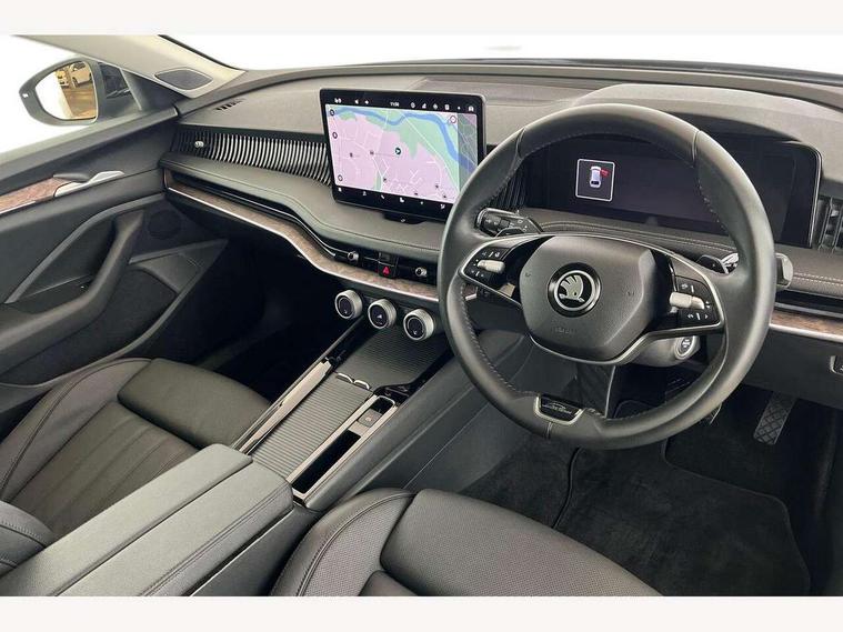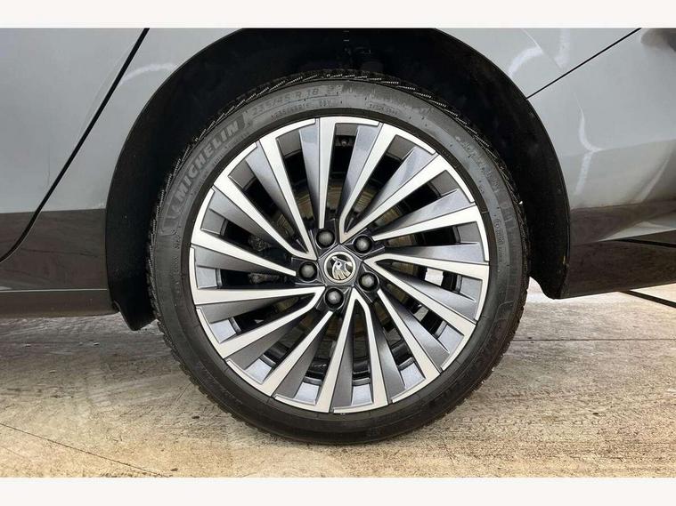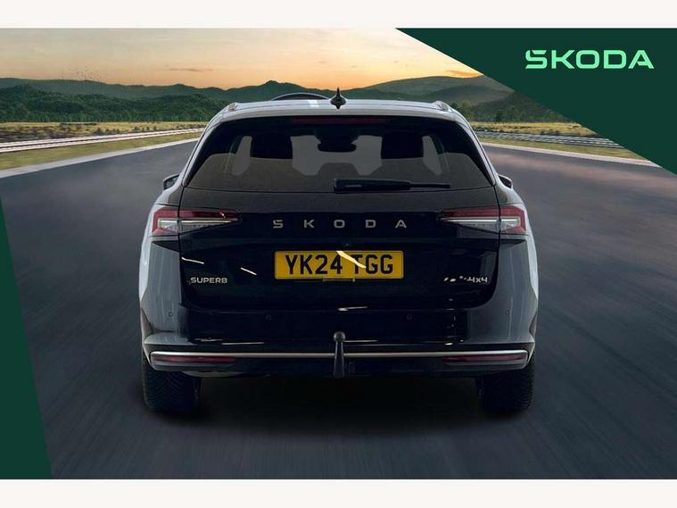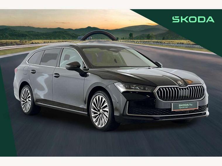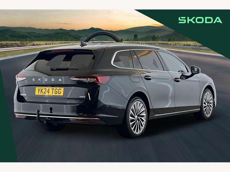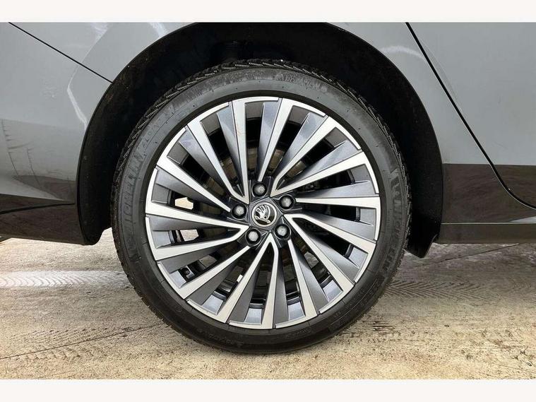 13" touchscreen display with satellite navigation, 4x USB-C ports (2x in front centre console and 2x in rear) (45W), Adaptive cruise control with speed assist, lane assist plus and traffic tram assist, Blind spot detection with door exit warning, Bluetooth system, CareConnect and Emergency Call, Driver fatigue sensor, Electrically operated boot with virtual pedal, Front assist with extended predictive pedestrian protection, Front cross traffic assist, PAS, Progressive dynamic steering, Rear view camera with washer, Stop/start engine system, Traffic sign recognition, Turn assist with evasive assistance, Virtual Cockpit - 10.25" digital display, Voice control system, Wireless charging for one smartphone (15W) with cooling function, Wireless smartlink apple carplay, SmartLink+ android auto, Dynamic chassis control plus with progressive dynamic steering, Canton sound system - 14+1 speaker, DAB Digital radio, Display cleaner, FM radio connection, Web radio connection, 3rd brake light, Acoustic side windows and interior noise suppression, Backdrop lighting, Body colour door handles, Body coloured door mirrors, Chrome roof rails, Chrome window surround, Dark chrome grille surround with chorme rib elements and plus dark chrome rear diffuser strip, Dynamic range control with poor weather light and integrated fog light, Electrically adjustable, heated, folding and driver side auto-dimming door mirrors with memory function, integrated indicators and logo projection, Frameless auto-dimming rear view mirror with USB-C, Front windscreen with heat-insulating glass, Light assist with High beam control, Light assistant (coming/leaving home/tunnel light), Privacy glass, Rear fog lights (x2), Rear side wing doors, Rear spoiler, Rear windscreen wiper, Tow bar preparation, Windscreen wipers with rain sensor, 12V socket 1x centre console 1x boot, 12V socket and 2x cargo elements in boot, 14-way electrically adjustable, memory, front seats with 4-way pneumatic lumbar support, and extendable thigh support with smart comfort entry aid, 2 spoke heated multifunction steering wheel with DSG paddles, 3 seat bench in 2nd row, 4x foldable bag hooks in boot, 60:40 Split folding rear seats, Advanced massage function for front seats, Bottle holders in the front doors 1.5 litre bottle and rear 1.5 litre bottle, Cup holder in front with easy open mat, Front and rear footwell illumination, Front armrest with storage box, Front sports comfort seats, Heated and ventilated front seats, Height adjustable front and rear head restraints, Height adjustable front passenger seat, Ice scraper, Illuminated glovebox, Interior lights with control switches, Isofix child seat fittings on outer rear seats, LED front and rear reading lights, Multi colour ambient lighting, Single front passenger seat, Storage pockets on back of front seats, Sun visors with illuminated vanity mirrors, Ticket holder on A Pillar, Tri zone climate control, Umbrella in driver's door, Light and view package - Superb, Parking package - Superb, Transport package - Superb Estate, Winter package - Superb, 3 rear seatbelts, 8 Airbags - Front driver and passenger, front side driver and passenger, centre, curtain front and rear, drivers knee, Crew protect assist, Driver and passenger seatbelts with warning light, Electronic parking brake, ESC including ABS, EBV, MSR, ASR, EDS, HBA, DSR, RBS, CBC, multi-collision brake (MKB) and Auto hold, Hill hold assist, Power operated child lock in rear doors, Alarm with interior monitoring tilt sensor and back up horn, Backrest remote release from trunk, Electronic engine immobiliser, Keyless start/stop, Remote central locking with SAFE system, Third key, Walk away locking, Decorative front door sills, 18" Steel space saving spare wheel,