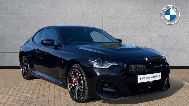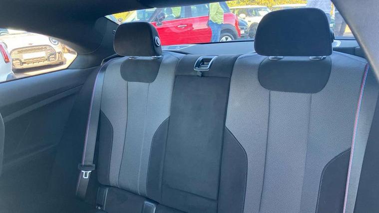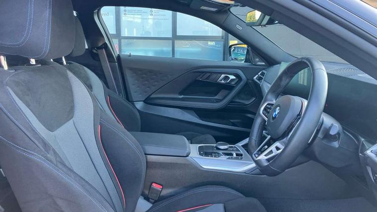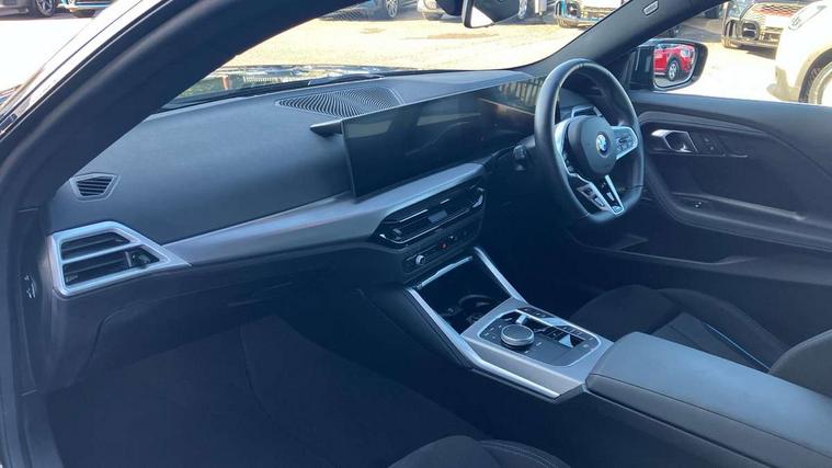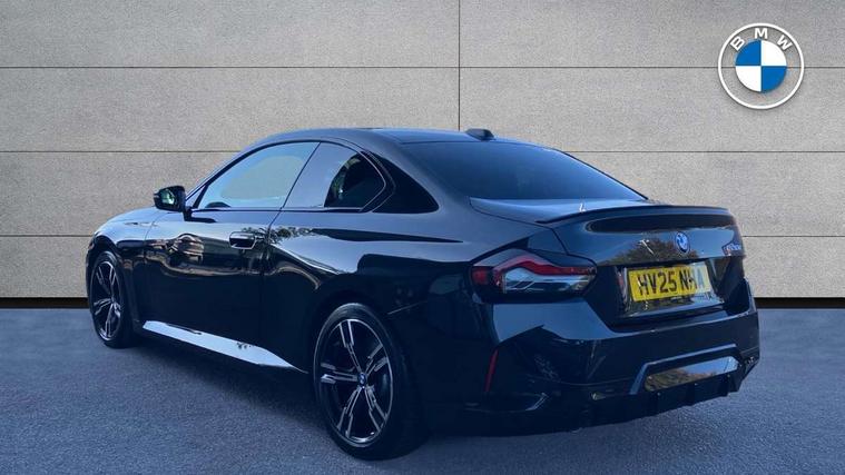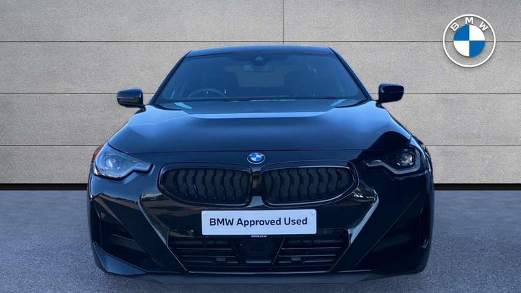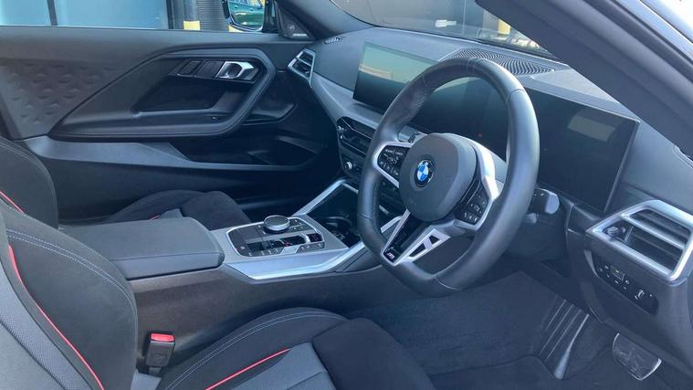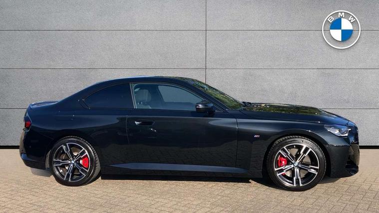 2 USB connections for charging and transferring data, Active guard plus, Attentiveness assist, Bluetooth with USB, BMW ConnectedDrive online services, BMW Intelligent Personal Assistant, BMW Live cockpit plus, BMW operating system 8 with variable, configurable widgets display information in real time, BMW Teleservices, Check Control warning system for monitoring of lights and door/luggage compartment open warning, Control Infotainment, Direct selection buttons, Drive off assistant, Eco pro mode, Electric power steering, eSim with 5G connectivity, Front and rear parking sensors, iDrive controller with turn and press function, Integrated owners handbook, Intelligent functions, Oil sensor for level and grade, Optimum shift indicator, Personal Profile, Smartphone integration, Touch operation on control display, Variable sport steering, Widescreen multi-media display, WiFi interface for wireless connection of mobile terminal devices, Aluminium lightweight construction, Balancer shaft, BMW TwinPower Turbo four-cylinder petrol engine, Double VANOS, Drive performance control with ECO PRO comfort + sport mode, Electronic differential lock, High precision injection, M sport suspension, Petrol Particulate Filter, Steptronic transmission with gearshift paddles, Twin scroll turbocharger with Valvetronic, DAB tuner, Acoustic windscreen wipers for reduced driving noise, Automatic windscreen wipers and automatic headlight, Body colour door handles flush with door surface, Body colour door mirrors, Body colour front and rear bumpers, Daytime running lights, Electric windows - front and rear, with open/close fingertip control and trap release, Exhaust tailpipes x2 - 90mm in left and right, Fading support, Front and rear bumper system with replaceable deformation elements, Front door sill finishers in black plastic with BMW designation, Front windscreen wipers with integrated washer jets, Green tinted heat protection glazing, High beam assistant, High gloss black sill, bumper trim sides and diffuser insert, High level third brake light, Indicators integrated int mirror housing, Interior rear-view mirror with automatic anti-dazzle function, LED registration plate light, LED technology rear tail lights, brake lights and turn indicators, Lightweight engineering, M high gloss shadowline, One piece kidney grille with hight gloss chrome surround, Rear boot, Rear fog lights, Reversing light in rear light cluster, Shark fin antenna, Single part LED rear lights with smoked glass components, Trailer stabilisation logic, Visible VIN plate, 12V power socket in front centre console with blanking plug, 2 cupholders in front centre console, 2 zone automatic air conditioning, Ambient lighting, Compartment in front of cupholder, Conditioned based service, English handbook, Folding rear seat head rests, Front and rear side armrests integrated into door trim, Front armrest, Front door pockets, Front head restraints, Heated front seats, Illuminated glove compartment with separate small compartment, M headliner Anthracite, M sport leather steering wheel, Manually adjustment steering wheel column, Rear seat backrest with manual 40:20:40 split folding, Rear seat centre foldable armrest with integrated cup holder, Single front passenger seat, Storage compartment between rear seats, Storage tray and compartment with cover in centre console, Sun visors with vanity mirrors and insert tab, Through loading system with 40/20/40 split folding 2 rear seat in 2nd row, Velour floor mats, Additional storage compartment pack without USB - 2 Series Coupe, Connected pack professional - 2 Series Coupe, 2 tone horn, Anti lock braking system (ABS) with cornering brake control, Automatic Stability Control (ASC), BMW emergency call, Brake drying, Child seat ISOFIX attachment for the two outer rear seats, Crash sensor activating of airbags, Unlocking doors, hazard warning lights, interior light, safety battery terminal, Deactivation of fuel pump in the event of a crash, Driver and front passenger airbags, Driver and front passenger side airbags, integrated in the door side seat backrest bolsters for all seat variants, Dynamic brake control, Dynamic stability control + (DSC+), Dynamic Traction Control - DTC, Electrically operated hand brake including automatic hold function and automatic release when driving off, Front and rear disc brakes, Front centre airbag between driver and front passenger seats, Front passenger airbag deactivation, Head airbags for all 4 outer seats, PC iBrake (Post crash approach control warning with light braking function), Seat belt security check for driver and front passenger, Seatbelt warning, Side impact protection, Three point seat belts on 4 seats including front belt stopper, pyrotechnic belt tensioners and belt force limiters, Tyre pressure monitoring system, Warning triangle and first aid kit, Alarm system (Thatcham 1) with remote control and electronic engine immobiliser, Central locking switch for all doors, fuel filler cap and luggage compartment, Deadlocking function system to all doors, Drive away locking system on all doors and luggage compartment, Locking wheel bolts, Start/Stop button (illuminated) in centre console with keyless engine start and Auto Start-Stop deactivation button, Two remote control key with integrated key - one button for open and close doors/fuel flap/tailgate and separate button for unlock luggage compartment, Electrically powered 12V compressor, Reduced rolling resistance tyres, Tyre repair kit,