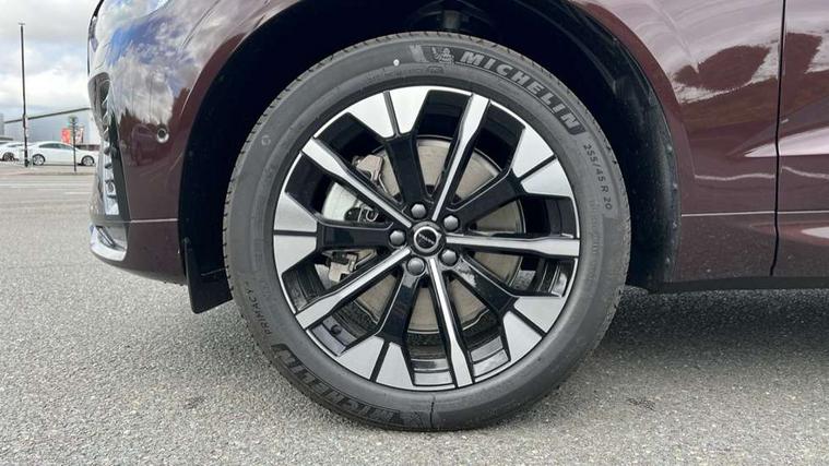 11.2" centre console touch screen, 12.3" Progressive Driver Display, 360 degree surround view parking camera with side proximity sensors, Adaptive cruise control, Adjustable steering wheel force, Android auto (Wired), Apple carplay (wired), Bluetooth handsfree system, Driver alert control with lane keeping aid, Emergency services call system, Front and rear park assist, Google Automotive Services, Intelligent speed assistance, Oncoming Lane Mitigation, PAS, Power operated tailgate with handsfree opening and closing, Service interval indicator, Speed limiter, Speed sensitive steering, Trip computer, Volvo cars services with app, Volvo on call with App, Wireless/Inductive Mobile Phone Charging, 8 speed automatic transmission with start/stop + manual change functions, Active four-C chassis + four corner adaptive damper with electronic rear air suspension, DAB Digital radio, Premium Sound by Bowers and Wilkins, dirac live, dolby pro logic II surround sound, 14 speakers/1100W output and subwoofer, Steering wheel remote infotainment controls, Active bending headlights with adaptive shadow technology, Adaptive brake lights with high level LED brake lights, Auto dimming interior + exterior mirrors, Automatic headlight levelling system, Automatic LED Headlights + Active high beam incorporating daytime running lights, Dark tinted windows for rear side windows and cargo area, Electric adjustable/heated/auto power folding door mirrors, Electric front+rear windows, Front aluminium tread plates, Headlight cleaning system, High gloss black door mirrors and window surround, High gloss black front and rear bumper decoratives, High gloss black mesh front grille with high gloss black surround, Home safe and approach lighting, Integrated roof rails in high gloss black, LED front fog lights with static cornering light function, Power glass tilt and slide panoramic sunroof with sun curtain, Puddle lights, Rain sensor with automatic windscreen wiper activation, Rear side wing doors, Rear wiper, Roof antenna, Roof spoiler, Tinted windscreen, Visible VIN plate, 12V socket in front tunnel console and luggage compartment, 3 seat bench in 2nd row, 4 Zone electronic climate control, A-pillar parking ticket holder, Air purifier particulate matter (PM) 2.5 filter, B Pillar ventilation, Bright metal luggage scuff plate, Centre console cupholders and storage, Charcoal floor mats, Front and rear courtesy lights, Front and rear door pocket illumination, Front cupholder illumination, Front footwell illumination, Front reading lights, Front seat cushion extensions, Glovebox compartment with illumination, Head restraints for all seats, Heated front seats, Heated steering wheel, Height/reach adjustable steering column, Illuminated luggage compartment, Illuminated vanity mirrors + ticket holder, Inner door release handle illumination, ISOFIX attachment on outer rear seats, Load cover, Load protection net, Multi directional lumbar support, Power driver seat with memory + exterior mirrors memory, Power folding rear headrests, Power passenger seat with memory, Rear armrest with cupholder, Rear footwell and front and rear side step illumination, Rear reading lights, Rear seat concealed storage, Single front passenger seat, Tailgate illumination and ambient door lighting, Underfloor stowage compartment, Versatile split folding rear seat - 60/40, Driver assist pack without Adaptive cruise control - XC60, 5 three point seatbelts, City safety with steering support with Pedestrian + cyclist + front collision warning with full auto brake and rear auto brake, Drivers knee airbag, Dual stage driver/passenger airbags, Electronic parking brake with auto hold, First aid kit, Front seats SIPS airbags, Hill descent control - Off-road drive mode, Hill start assist, IC (Inflatable Curtains) - Full Length, Passenger airbag cut-off device, Power child locks on rear doors, Run off Road Mitigation, Run off Road Protection, Seatbelt reminder and pretensioners, SIPS (Side Impact Protection System), Slippery road and hazard light alert, Stability and Traction Control with Spin control, Engine Drag Control and Corner Traction Control, Tyre pressure monitoring system, Vehicle deceleration control with Anti-lock Brake System, Electronic Brake Distribution and Emergency Brake Assist, Warning triangle, WHIPS whiplash protection system - front, Anti-theft alarm including immobiliser/volume sensor + level sensor, Key integrated remote control central locking + fuel flap with deadlocking system and auto open/close power windows, Keyless Drive (includes Keyless Entry and Keyless Start), Locking wheel nuts, Private locking for tailgate, Tailored instrument panel with contrast stitching, Summer tyres,
