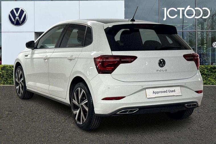 Adaptive cruise control with follow-to-stop and speed limiter, Advanced driver attention and drowsiness monitor, Bluetooth mobile phone interface, Digital Cockpit Pro with 10.25" Display, Dynamic road sign display, Emergency call service, Multifunction camera, Power assisted speed sensitive steering, Preparation for We connect and We connect plus, Speedo and rev counter, electronic odometer, trip, service interval display and fuel gauge, Standard rear axle, Travel Assist - Lane keeping system and traffic jam assist, Travel assist including emergency assist, Trip computer, Warning signal and warning light for front and rear seatbelts not fastened, Washer fluid level indicator, Wireless app connect, Front wheel drive, Rear shock absorpion, Start-stop system with battery regeneration (recuperation - energy recovery during braking), DAB Digital radio, Diversity antenna for FM reception, Front and rear 6 speakers, Body colour bumpers, Body colour door handles, Electric front windows, Front scuff plates with Black edition logo, Heat insulating glass windscreen, Power folding adjustable/heated exterior mirrors and front passenger exterior mirror lowering function, Rear electric windows, Rear fog light, Rear side wing doors, Rear windscreen washer and wiper with interval delay, Third brake light, 12V power socket in centre console, 2 USB-C ports in the front, 2 USB-C charging sockets on the center console in the rear, 3 rear head restraints, 60/40 split folding rear seat and rear seat bench not split, Air care climatronic air conditoning system with active combination filter and 2-zone temperature control, Black roof lining, Carpet mats, front and rear, Chrome plated radiator grille inserts, air vent surrounds and light switch surrounds, Door and side trim panel, Driver and front passenger seat height adjustment, Driver/passenger sunvisors with illuminated vanity mirrors, Front centre armrest, Front footwell illumination, Front seat backrest storage pockets, Front sports comfort seats, Handbrake lever handle in leather, Headliner in recycled material, Heated front seats, Isofix child seat preparation easy-fit (for two outer rear seats, and front passenger seat) compatible with I-size, Karoso artvelours cloth upholstery, Leather trimmed gear knob, LED interior light with switch off delay and dimmer, 2 reading lights front and rear, Luggage compartment cover, Luggage compartment floor, Luggage compartment lighting, Lumbar adjustment for front seats, Single front passenger seat, Stainless steel pedals, Standard pedal cluster, Three spoke leather wrapped multifunction steering wheel with shifting paddles, Black roof pack - Polo, IQ LED matrix headlights pack - Polo, Light and sight pack - Polo R-Line/Black Edition, 3 point height adj front seatbelts + pretensioners, 3x3 point rear seatbelts, ABS, Driver and front passenger airbag with front passenger airbag deactivation, Drivers and front passengers safety optimised head restraints, ESC (Electronic stability control) + EDL (Electronic Differntial lock) and ASR (Traction control), Extended and predictive pedestrian/ cyclist protection, Front curtain and side airbags with center airbag, Front/rear disc brakes, Hill hold control, Manual child lock in rear doors, Single tone horn, Tyre pressure loss indicator, Alarm with interior protection, Anti-theft alarm system with interior monitoring, backup horn, and towing protection, Anti-theft wheel bolts, Electronic engine immobiliser, Black dashboard, Chrome applications on rotary light, mirror adjustment, window regulator switches, outlet with frame in black, Dark grey anodised matt decorative inserts in dash and front door panels, 17" York alloy wheels, Low rolling resistance tyres,