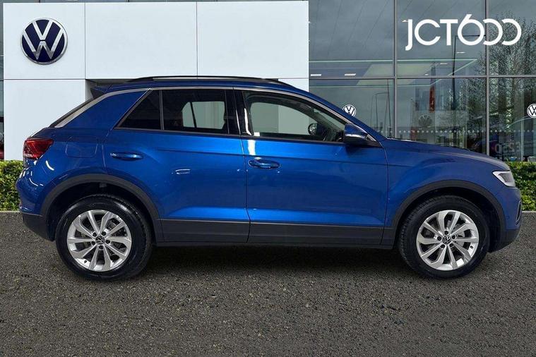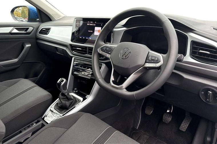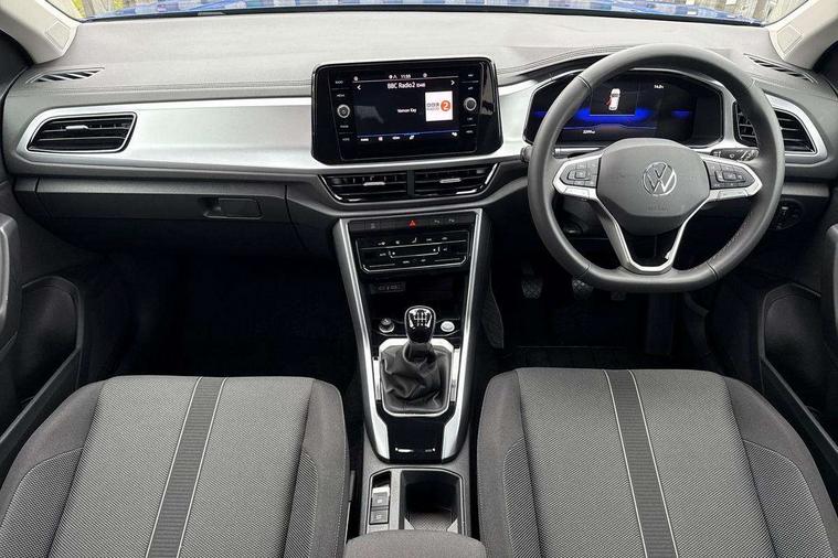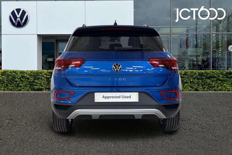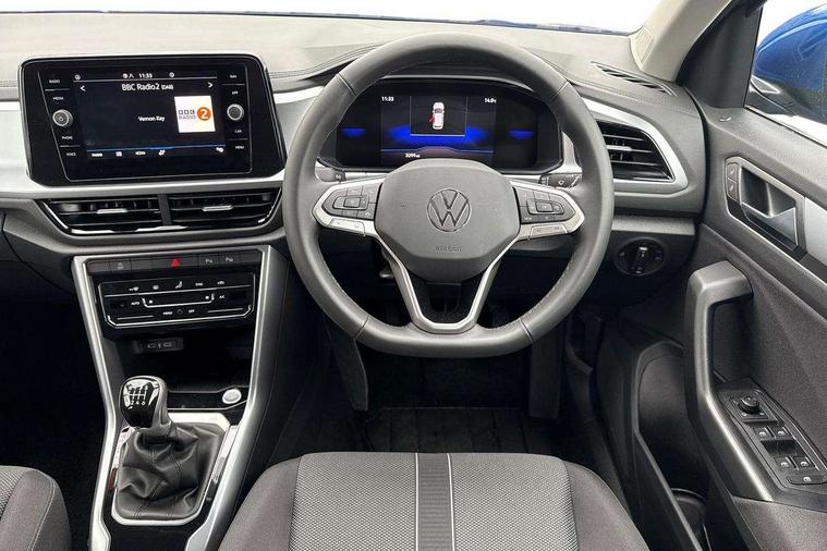 Advanced driver attention and drowsiness monitor, Dynamic road sign display, Emergency call service, Lane keeping system Lane Assist, Mobile phone interface, Modified key software - reduce switch off time for key status change to Long no motion, Online services, Park assist including front and rear parking sensors, Power assisted speed sensitive steering, Rear view camera, Service interval indicator, Tailgate/trunk lid release from outside, Think blue trainer driver tips and journey analysis, Warning sound and light for front seatbelts unfastened, Wireless app connect, Battery regeneration during braking, Front shock absorption, Rear shock absorption chassis with increased ride height, Start/stop function with battery regeneration, DAB Digital radio, Diversity antenna for FM reception, Music playback - MP3, WMA and AAC files, Premium USB cable in choice of either Apple or Android smartphone compatibility, SD card slot, Simultaneous pairing of 2 compatible mobile devices, Title and cover art display, We Connect and We Connect Plus functionality, Auto dimming interior rear view mirror, Automatic hazard lights activation under emergency braking, Automatic headlight control with LED separate daytime running lights with coming/leaving home function, Black roof rails, Body coloured bumpers and radiator grille with chrome trim and front fog lamps with chrome bezel, Body coloured exterior mirror housings and door handles, Electrically adjustable and heated door mirrors, Extended roof spoiler, Exterior mirrors aspherical on driver side, convex on front passenger side, External USB type C socket and charging sockets, Front windscreen wiper with intermittent wipe and 4 position delay, Heated rear window, LED 3rd brake light, LED rear combination lamps, LED rear number plate lights, Power windows with comfort operation and circuit breaker, Privacy glass for rear side windows and rear window, Rain sensor, Rear exhaust tailpipe, Rear fog light on one side and reversing lights on both sides, Rear side wing doors, Rear wash/wipe with intermittent wipe setting, Remote electrically foldable door mirrors, puddle lights and reverse activated passenger's door mirror, 12V power socket in centre console, 3 rear head restraints, 3 seat bench in 2nd row, 4 load lashing points in luggage compartment, Air care climatronic air conditoning system with active combination filter and 2-zone temperature control, Black stitching for floor mats, Ceramique roof liner, Cloth upholstery, Door and side trim panel in cloth, Drawer under drivers seat, Driver/front passenger seat height adjustment, Front centre armrest, Front comfort sports seats, Front cupholders x 2, Front reading light, Front seat back storage pockets, Glove compartment door with light, Instrument lighting, white adjustable panel illumination, Interior ambient lighting and surround lighting, Interior light delay, Isofix child seat preparation, Leather gearshift handle, Load-through provision with cup holder when folded down ('Unsplit rear seat bench, split folding backrest, with centre armrest), Luggage compartment lighting, Lumbar support for driver's and front passengers seat, Non-folding front passenger seat backrest, Single front passenger seat, Storage compartment in left and right luggage area, Storage compartment in rear doors, Storage compartments in driver and front passenger doors, Sunvisors with illuminated vanity mirrors, Variable boot floor, height adjustable and removable, Driver assistance pack without proactive passenger protection - T-Roc Life/Match, 3 point height adj front seatbelts + pretensioners, 3 point seatbelts in outer rear with ECE label, ABS, Child locks on rear doors, City emergency braking and pedestrian monitoring, Driver and front passenger airbag with front passenger airbag deactivation, Driver and front passenger safety-optimised head restraints, Drivers seatbelt reminder, Electronic parking brake, Electronic Stability Control (ESC) inc EDL (Electronic Differential Lock) and ASR (Traction Control), Front and rear passengers curtain airbag system including front side airbags, Front disc brakes, Hill start assist, Predictive pedestrian protection, Rear disc brakes, Two tone horn, Tyre pressure loss indicator, Volkswagen roadside assistance, Alarm with interior protection, Keyless locking and starting system keyless access with safelock, Pewter matt decorative inserts for intrument panel, centre console and door panels at the front, Trims for alloy wheels,