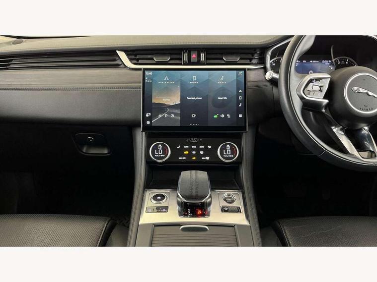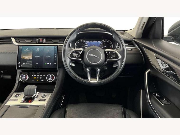 11.4" touchscreen, Android Auto, Apple car play, Bluetooth connectivity, Driver alert system, Driver condition monitor, eCall emergency call system, Eco driving style assistant, Electric power assisted steering, InControl remote, Jaguar Toggle shift selector, Lane departure warning system, Lane keep assist, Outside temperature gauge, Personalisation profile management, Pivi pro connected navigation system with app interface and media storage, Pro services and wifi hotspot, Push button starter, Service interval indicator, Speed proportional steering, Start up sequence with movement in dials and lighting, Traffic sign recognition with adaptive speed limiter, Trip computer, Voice control system, 8 speed automatic transmission, All terrain progress control, All Wheel Drive (AWD), Open differential with torque vectoring by braking, AM/FM radio, Bluetooth streaming, DAB Radio (Digital Audio Broadcasting), Dynamic volume control, InControl apps, InControl protect, iPod integration, 3 flash lane change indicators, 3rd brake light, Approach Illumination, Auto dimming rear view mirror, Automatic headlights, Body colour door mirrors, Electric windows with one touch open/close and anti trap, F-Pace badge, Green tinted glass, Heated front windscreen + heated washer jets, Heated rear window with timer, Jaguar script and leaper, LED tail lights, Non acoustic front windscreen, Rain sensor windscreen wipers, Rear fog lights, Rear metal tread plates, Rear side wing doors, Rear wiper, Trailer stability assist, Variable front intermittent wipers, 12V power point front, 3 rear headrests, 3 seat bench in 2nd row, Air distribution speed, Centre armrest console, Centre console with side storage, Door sill tread plates, Fold flat front seats, Front centre armrest with storage compartment, Front door storage space, Glovebox finisher with jaguar script, Heated steering wheel, Hooks in loadspace, Illuminated glovebox, Interior front door handles with separate locking switches, ISOFIX on outer rear seats, Jaguar sense, Luggage tie downs in loadspace, Mist sensing, Multifunction steering wheel, Overhead lighting console, Overhead stowage for sunglasses, Passive front head restraints, Premium carpet mats, Rear air vents, Rear armrest with twin cupholders, Rear centre headrest, Rear door storage space, Reversible boot floor, Satin chrome gearshift paddles, Shopping bag hook, Single front passenger seat, Split rim leather steering wheel, Sunvisors with illuminated vanity mirrors, Twin front cupholders with cover, Online Pack with data plan - F-Pace, 355mm front brakes and 325mm rear brakes, 3x3 point rear seatbelts, ABS, All surface progress control (ASPC), Brake pad warning light, DSC - Dynamic Stability Control, Electric parking brake (EPB), Emergency brake assist, Front airbags with passenger seat occupant detector, Front and rear seatbelt reminder, Front side airbags, Full length side window curtain airbag, Hill launch assist, Power operated child locks, Torque vectoring brake, Traction control, Tyre pressure monitoring system, Immobiliser, Keyless Start, Locking wheel nuts, Perimeter alarm, Remote central locking, Valet mode,