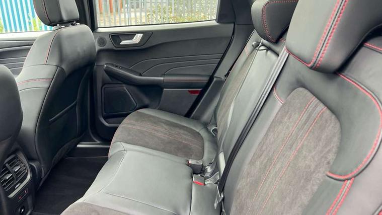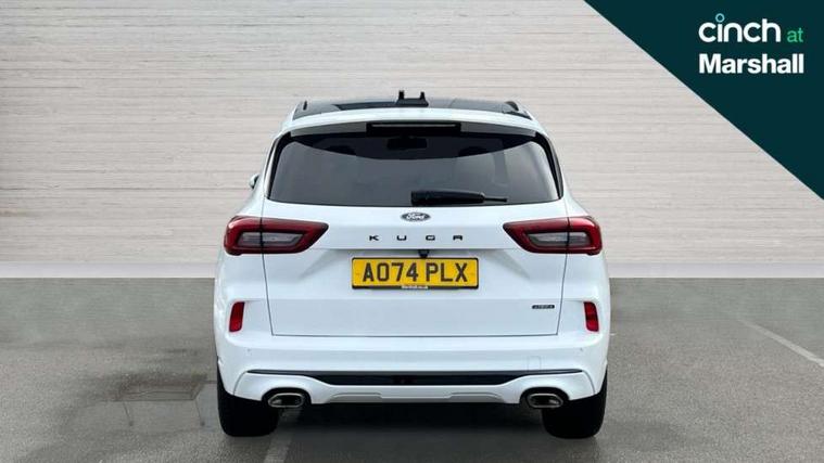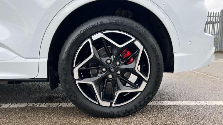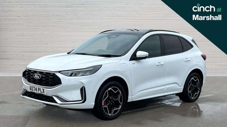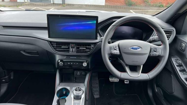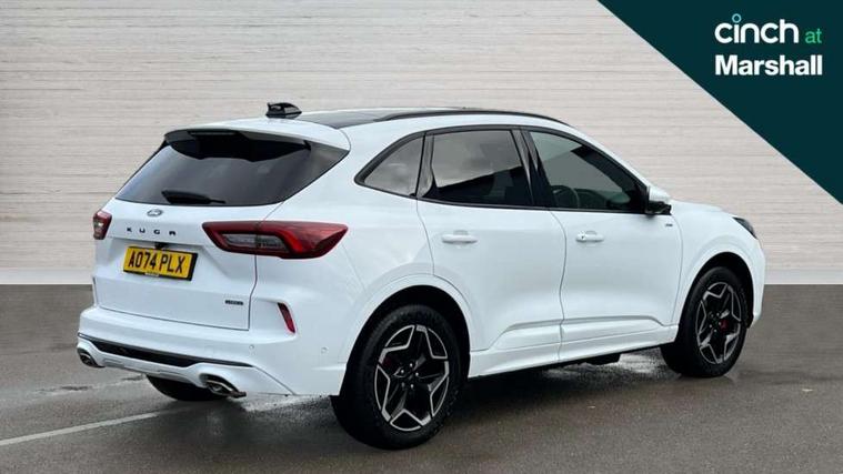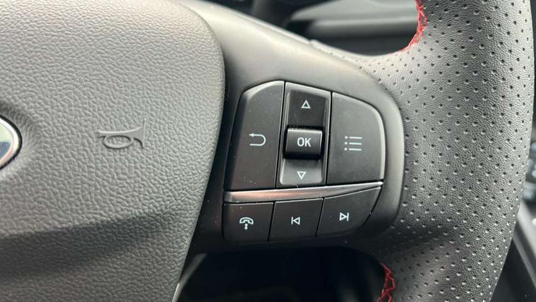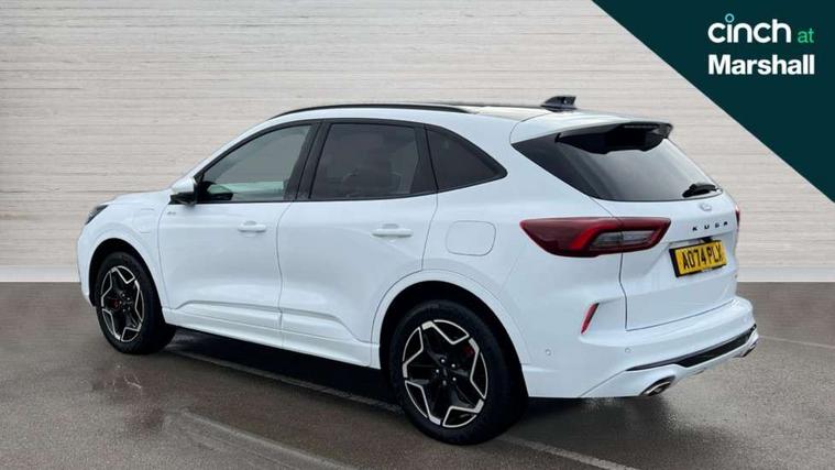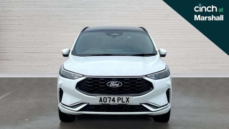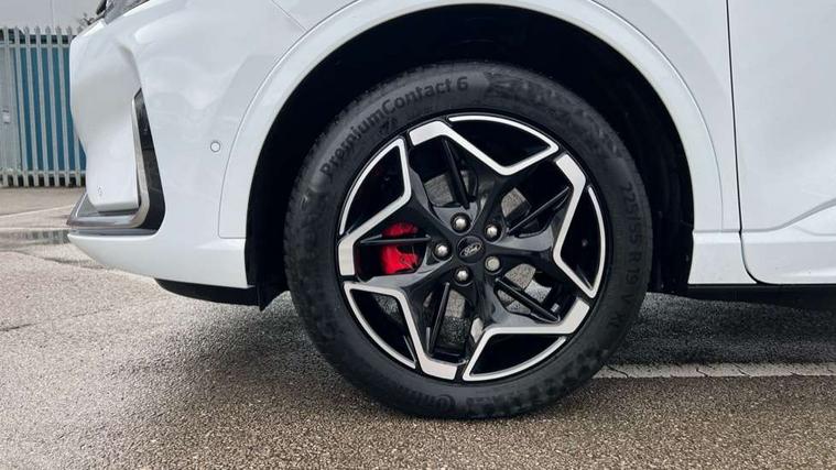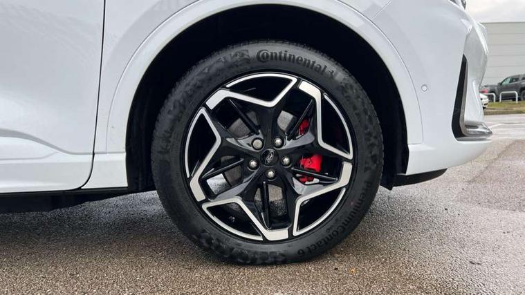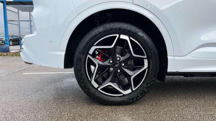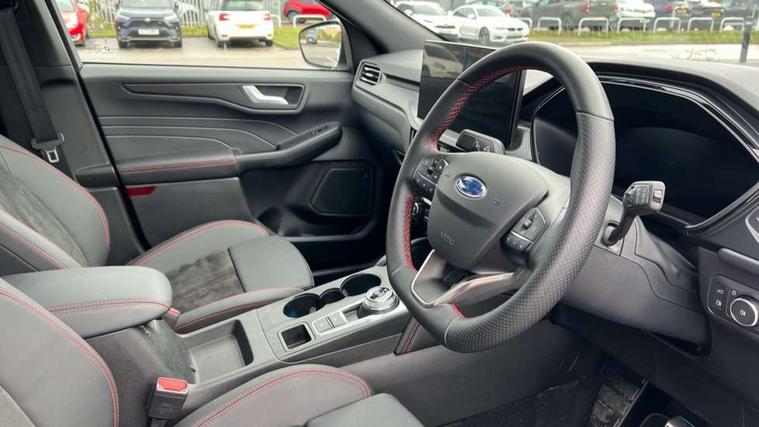 12.3" digital colour instrument cluster, 360 degree camera, e-Call (emergency call), Ford easy fuel, Ford SYNC 4 Navigation with 13" touchscreen, DAB radio, emergency assistance, Andriod Auto/Apple CarPlay, 5G modem & Ford Pass connect, Front and rear parking sensors, Hands free power tailgate, Lane centering assist, Lane keeping aid with lane departure warning, Power assist steering, Selectable drive modes, Service interval indicator, 3-Pin Home charge cable (230V/16A Domestic socket), Sports suspension, Twist beam rear suspension, B&O premium audio system with 10 speakers, subwoofer and 2 USB ports, Auto headlamps with high and low beam, Black roof rails, Body colour bumpers, Front LED fog lamps, Large rear spoiler, LED daytime running lights, LED rear lights, Pop out door edge protectors, Power front/rear windows with global close, Power heated folding door mirrors with puddle lights, memory function and camera, Power opening panoramic roof, Quickclear heated windscreen, Rain sensing wipers, Rear privacy glass, Rear side wing doors, Rear wiper, ST-Line body styling kit, Third brake light, 12 way ergonomic power adjust driver's seat with memory (AGR certified), 12 way ergonomic power adjust passenger seat (AGR certified), 2nd row sliding seats, Electronic automatic temperature control (EATC), Front and rear head restraints, Partial premium touch sensico upholstery, Rear centre head restraint, Single front passenger seat, Sports seats, Driver assistance pack with intelligent adaptive cruise control - Kuga FHEV/PHEV, Winter pack - Kuga, 3x3 point rear seatbelts, Airbags - front driver/passenger, front and rear curtain, Drivers knee airbag, Dynamic brake support, Electronic stability control (ESC) and ABS, Evasive steering assist, Ford MyKey Gen 2 safety system, Manual child proof rear door locks, Pre collision assist with autonomous emergency braking, Rear seat Occupancy alert, Red brake calipers, Tyre pressure monitoring system, Engine immobiliser, Keyless entry and Ford power start button (Keyless start), Locking wheel nuts, Remote powered central double locking doors, Thatcham category 1 alarm,
