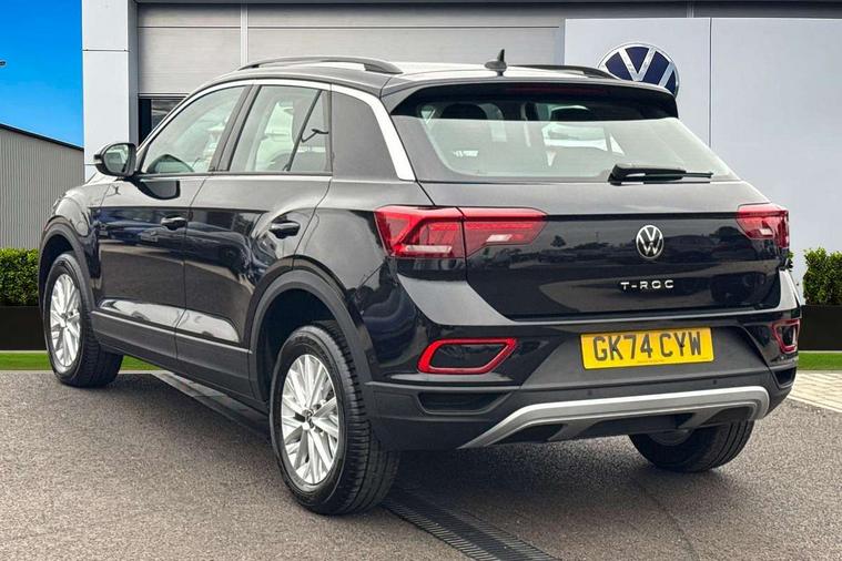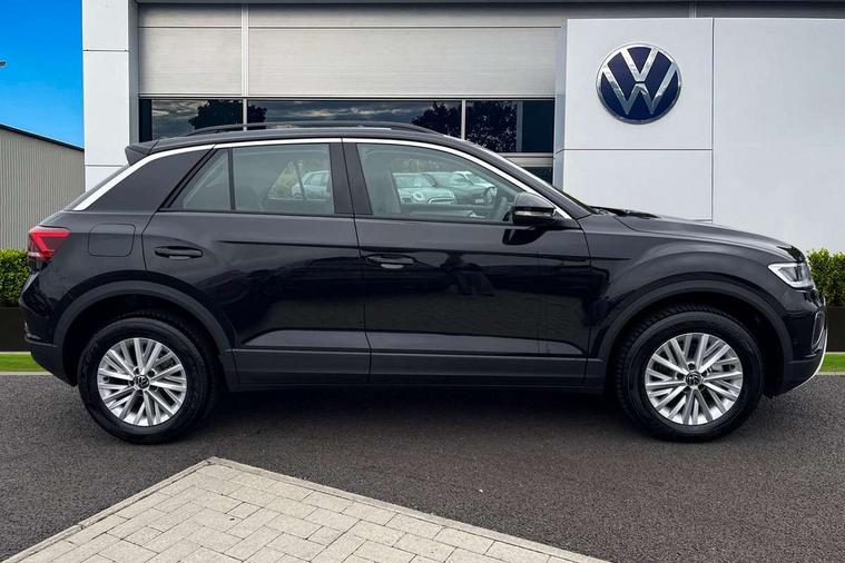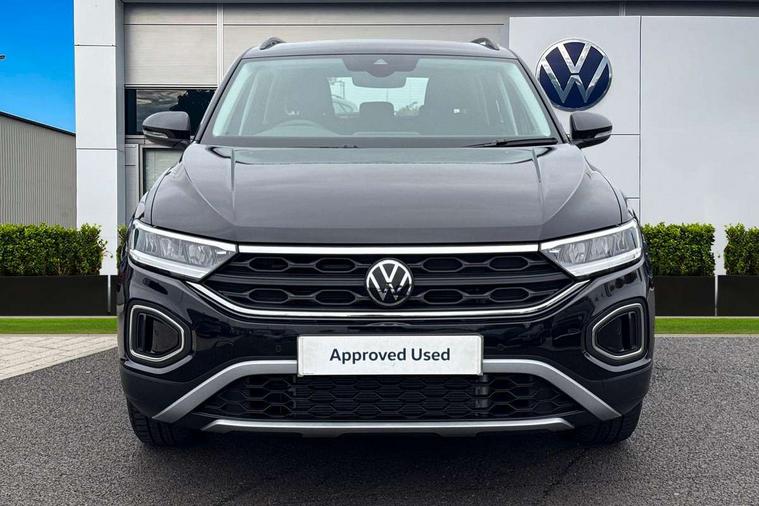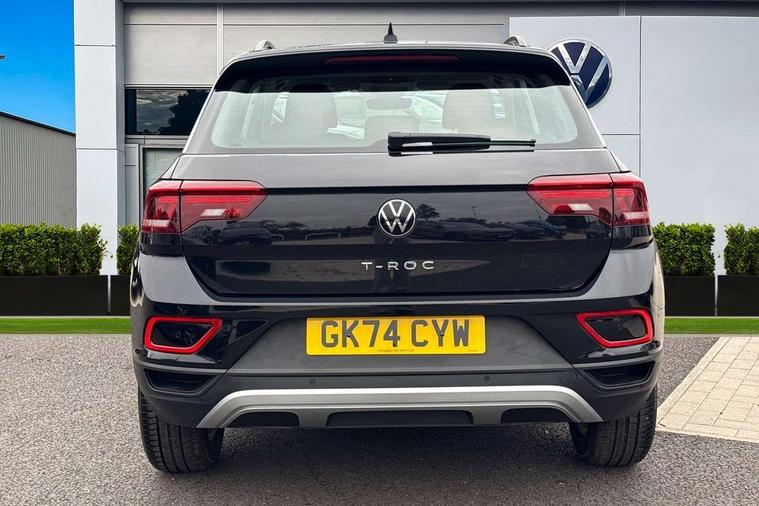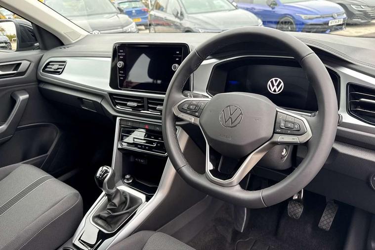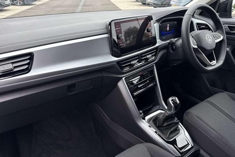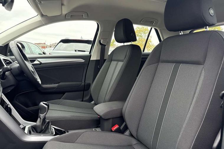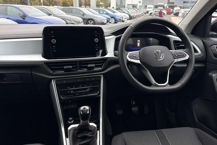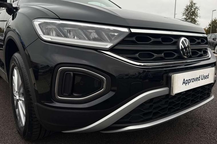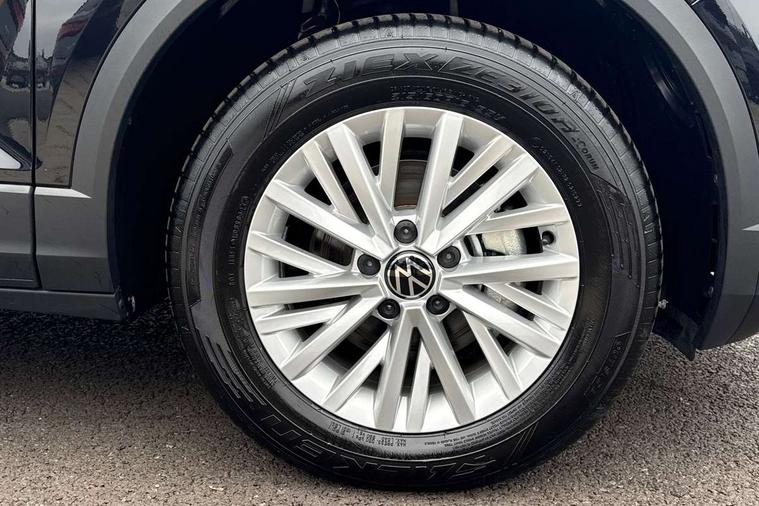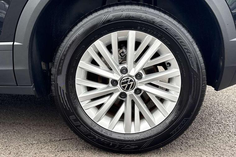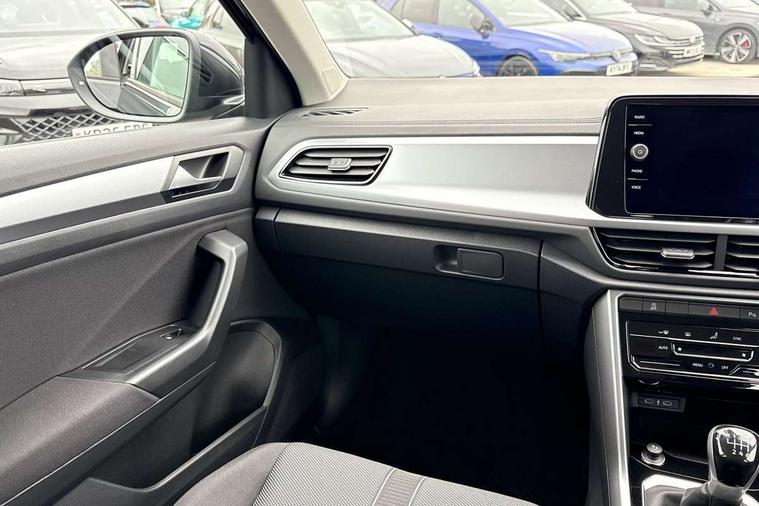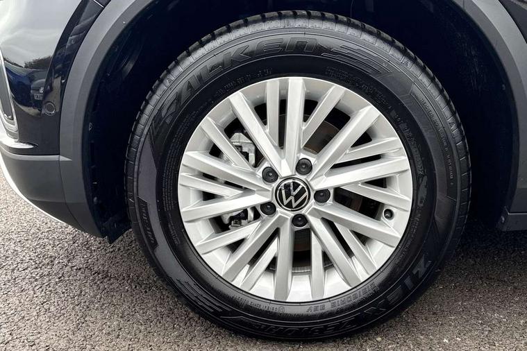 Advanced driver attention and drowsiness monitor, Dynamic road sign display, Emergency call service, Lane keeping system Lane Assist, Mobile phone interface, Modified key software - reduce switch off time for key status change to Long no motion, Online services, Park assist including front and rear parking sensors, Power assisted speed sensitive steering, Service interval indicator, Tailgate/trunk lid release from outside, Think blue trainer driver tips and journey analysis, Warning sound and light for front seatbelts unfastened, Wireless app connect, Battery regeneration during braking, Front shock absorption, Rear shock absorption chassis with increased ride height, Start/stop function with battery regeneration, DAB Digital radio, Diversity antenna for FM reception, Front and rear 6 speakers, Music playback - MP3, WMA and AAC files, Premium USB cable in choice of either Apple or Android smartphone compatibility, SD card slot, Simultaneous pairing of 2 compatible mobile devices, Title and cover art display, We Connect and We Connect Plus functionality, Auto dimming interior rear view mirror, Automatic hazard lights activation under emergency braking, Automatic headlight control with LED separate daytime running lights with coming/leaving home function, Black roof rails, Body coloured bumpers and radiator grille with chrome trim and front fog lamps with chrome bezel, Body coloured exterior mirror housings and door handles, Electrically adjustable and heated door mirrors, Extended roof spoiler, Exterior mirrors aspherical on driver side, convex on front passenger side, External USB type C socket and charging sockets, Front windscreen wiper with intermittent wipe and 4 position delay, Heated rear window, LED 3rd brake light, LED rear combination lamps, LED rear number plate lights, Power windows with comfort operation and circuit breaker, Rain sensor, Rear exhaust tailpipe, Rear fog light on one side and reversing lights on both sides, Rear side wing doors, Rear wash/wipe with intermittent wipe setting, Remote electrically foldable door mirrors, puddle lights and reverse activated passenger's door mirror, 12V power socket in centre console, 3 rear head restraints, 3 seat bench in 2nd row, 4 load lashing points in luggage compartment, Air care climatronic air conditoning system with active combination filter and 2-zone temperature control, Ambient lighting with mirror logo projection, Cloth upholstery, Door and side trim panel in cloth, Drawer under drivers seat, Driver/front passenger seat height adjustment, Front centre armrest, Front comfort sports seats, Front cupholders x 2, Front reading light, Front seat back storage pockets, Glove compartment door with light, Instrument lighting, white adjustable panel illumination, Interior light delay, Isofix child seat preparation, Leather gearshift handle, Load-through provision with cup holder when folded down ('Unsplit rear seat bench, split folding backrest, with centre armrest), Luggage compartment lighting, Lumbar support for driver's and front passengers seat, Non-folding front passenger seat backrest, Single front passenger seat, Storage compartment in left and right luggage area, Storage compartment in rear doors, Storage compartments in driver and front passenger doors, Sunvisors with illuminated vanity mirrors, Variable boot floor, height adjustable and removable, Driver assistance pack without proactive passenger protection - T-Roc Life/Match, 3 point height adj front seatbelts + pretensioners, 3 point seatbelts in outer rear with ECE label, ABS, Child locks on rear doors, City emergency braking and pedestrian monitoring, Driver and front passenger airbag with front passenger airbag deactivation, Driver and front passenger safety-optimised head restraints, Drivers seatbelt reminder, Electronic parking brake, Electronic Stability Control (ESC) inc EDL (Electronic Differential Lock) and ASR (Traction Control), Front and rear passengers curtain airbag system including front side airbags, Front disc brakes, Hill start assist, Predictive pedestrian protection, Rear disc brakes, Two tone horn, Tyre pressure loss indicator, Volkswagen roadside assistance, Alarm with interior protection, Pewter matt decorative inserts for intrument panel, centre console and door panels at the front, Trims for alloy wheels,