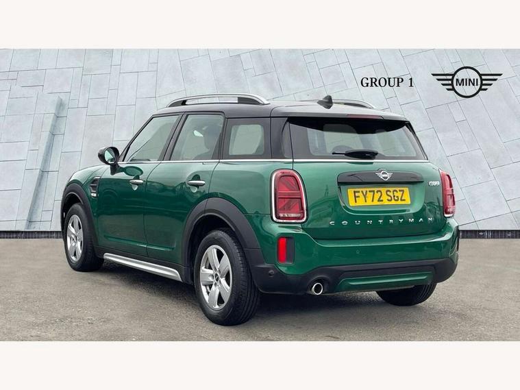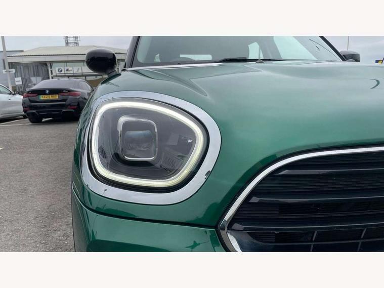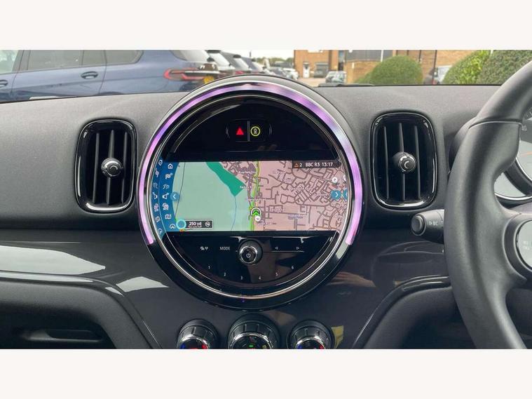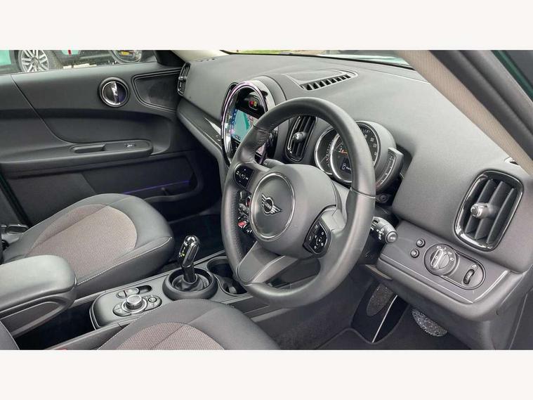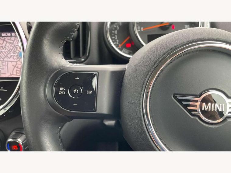 Active Guard incl speed limiting and lane departure functions with auto steering, and front collision warning with brake intervention, Automatic start/stop function with brake energy recuperation, Compatible mobile phone bluetooth with audio streaming, Cruise control with brake assist, Electro-mechanical speed dependant steering assistance, Instrument cluster, Mini E-call, On board computer, Rear parking distance control, 51 Litre fuel tank, Double Vanos system, Fully variable valve control, High precision injection, Performance Control, Steptronic transmission with double clutch, FM tuner and DAB digital radio, 3rd brake light, Body colour fuel filler cap, Day time driving lights, Door sill strips, Dynamic brake lights, Electric windows, Heated rear window, Heated windscreen washer jets, LED fog lights, LED Headlights, Left exhaust tailpipe with chrome finisher, Model logo, Model logo on Tailgate, Radiator grille, Rain sensor with auto headlights, Rear fog lights, Rear side wing doors, Rear window wiper, Side scuttle panel with integrated indicator, Split rear doors, Sun/heat protection glass, White indicator lenses, 12V socket in centre console, 3 seat bench in 2nd row, 3 spoke sport leather steering wheel + limiter function and audio controls, 360L luggage compartment capacity, 4 lashing eyes in luggage compartment, 40:20:40 split folding rear seats, Chrome interior highlights, Colour line - Carbon black, Cupholders, English handbook, Floor mats, Front headrests, Glove compartment, Headliner with grab handles and clothes hooks, Height and length steering column adjustment, Interior lighting with 12 basic colours selectable via toggle switch in roof, Isofix rear child seat preparation, Leather gearshift lever and handbrake gaiters, LED reading lights, vanity mirror lights, front foot well light and spotlight on front seats, Manual air conditioning, Mechanical seat adjustment, driver seat height adjust, forward/back and front seats backrest, Multifunction steering wheel, Passenger seat height adjuster, Rear headrests, Single front passenger seat, Storage compartments in doors, Sunvisors with vanity mirrors, Excitement pack - Countryman, Navigation pack - Countryman, 2 tone horn, 3 point seatbelts on all seats, 6 Airbags - front, side, head and seat belt tensioners, Anti-lock braking system (ABS), DSC - Dynamic Stability Control, Electronic handbrake, Front and rear disc brakes, Hill start assist, Manual rear child locks, Tyre pressure monitoring system, Alarm system with tilt sensor, monitoring doors, bonnet interior and tailgate, Auto drive away locking, Deadlocking function, Electronic vehicle immobiliser, Locking wheel bolts, Start/stop toggle with keyless go, Tool kit,