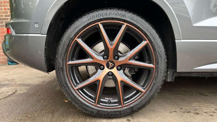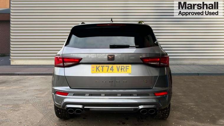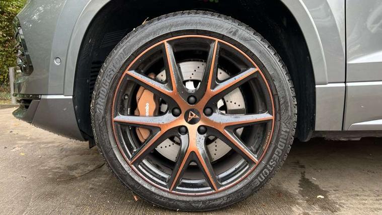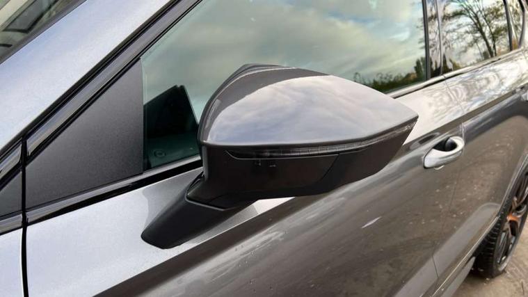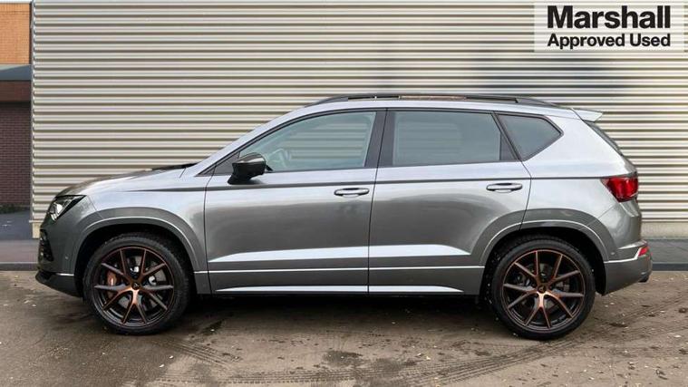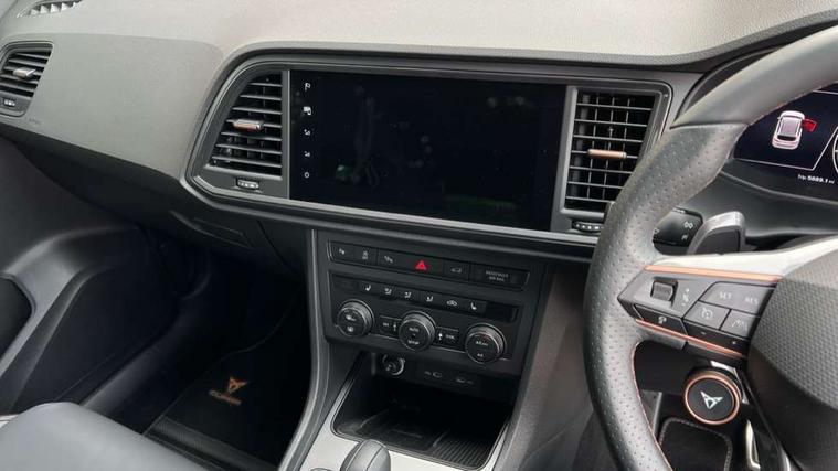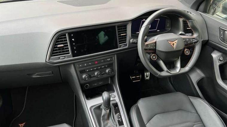 CUPRA drive profile - Normal, sport, CUPRA and individual modes and Hydraulic damper control (DCC), Digital cockpit, E-call, Electric tailgate with virtual pedal, Front and rear view camera, Outside temperature gauge, Progressive power assisted steering, Self parking functionality (includes front and rear parking sensors), Top view camera, Trip computer, wired and wireless full link smartphone integration, Wireless phone charger, CUPRA sport suspension, Steering wheel mounted audio/phone controls, Body colour bumpers with dark aluminium diffusor, Body coloured wheel arch surrounds, Dark tinted rear windows, Daytime running lights, Door mirrors with welcome CUPRA light silhouette, Dynamic headlight range control with self adjusting whilst driving, Electric adjustable/heated/folding door mirrors, Front and rear electric windows, Front grille frame in chrome, Full LED headlamps with lens and LED front fog lamps with cornering function, Gloss black door mirrors, Gloss black roof rails, Gloss black side mouldings, Gloss black side window trim, Illuminated aluminium front door sill, LED rear tail lights with dynamic indicators, Rear fog lights, Rear side wing doors, Rear spoiler, Rear wash/wipe, Specific CUPRA design front bumper, Third brake light, Visible twin black exhaust pipes in both sides, 12v socket in front, 3 seat bench in 2nd row, 60/40 split folding rear seat, Aluminium pedals, Black roof lining, Cupra steering wheel emblem, CUPRA supersports steering wheel including satellite buttons, Dual zone climate control, Electric driver seat with memory function, Front and rear head restraints, Front centre armrest, Front seat back storage pockets, Heated front seats, Heated steering wheel, Height adjustable driver and passenger seat with lumbar adjustment, ISOFIX points in outer rear seats with top tether anchorage points, Leather sport bucket seats, Multicoloured ambient lighting with LED interior illumination, Pedal cluster, Rear armrest and easy back seat release mechanism from boot, Single front passenger seat, Storage compartment in roof console for sunglass, Storage compartment under driver's seat, Convenience pack - Ateca, Interior lighting pack - Ateca, Navigation system plus pack with DAB - Ateca, Safe and driving pack with High beam control - Ateca, 3x3 point rear seatbelts, ABS, Traction control system (TCS), Electronic stability control (ESC) and Electronic differential lock system (XDS), Airbags - Driver and front passenger airbag with deactivation, front side, two curtain and driver's knee airbags, Attention and drowsiness assist, Black brake callipers with CUPRA logo, Electric parking brake with auto hold function, Front and rear seatbelt reminder, Hill hold control, Manual rear child locks, Performance brakes with front brembo calipers, Single tone horn, Tiredness recognition system, Tyre pressure monitoring system, Tyre pressure warning light, Alarm, Keyless entry, Locking wheel bolts, 19" Copper alloy wheels, Tyre repair kit,