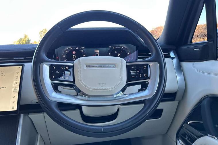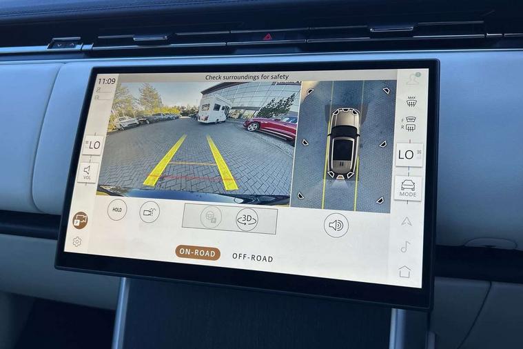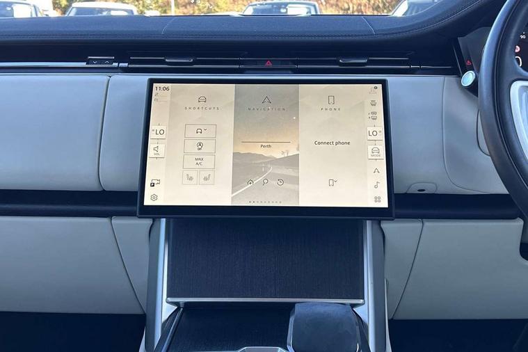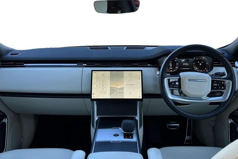 13.1" Touchscreen, 3D surround camera inc frwd traffic detection, vehicle clearance guidance, 3D view, clearsight ground view, manoevure light, 360 parking aid, wade sensing, All Terrain Info Centre, All wheel steering, Android Auto, Apple car play, Blind spot assist, Bluetooth connectivity streaming, Driver condition response, Eco mode, Electric power assisted steering (EPAS), Emergency call service, Front and rear parking aid, Interactive driver display, Lane keep assist, Rear collision monitor, Rear traffic monitor, Remote, Traffic sign recognition with adaptive speed limiter, Wi-Fi Enabled with data plan, Wireless device charging with phone signal booster, 8 speed automatic transmission, Active damper technology system, Adaptive dynamics, All terrain progress control, All Wheel Drive (AWD), Automatic access height, Terrain Response 2 Auto, Twin speed transfer box, Digital Audio Broadcast radio-DAB, Pivi pro including smart settings, Connected navigation pro, nuance speech, USB socket, Acoustic laminated windscreen, Animated directional indicators, Automatic headlights, Automatic levelling headlights, Centre high mounted stop light, Electric windows with one touch open/close and anti trap, Engine cover, Flush deployable exterior door handles, Front and rear recovery eyes, Front fog lights, Headlamp power wash, Heated rear window, Heated washer jets, LED tail lights, No badges, Power fold, auto-dimming, heated door mirrors with approach lights, Rain sensing windscreen wipers, Rear boot, Rear fog lights, Rear side wing doors, Side repeater indicators in mirror, Trailer stability assist, Winter wiper park position, 12V power sockets, 3 seat bench in 2nd row, Air quality sensor, Bright metal pedals, Cabin lighting, Customer configurable single point entry, Driver and passenger front seat armrests, Easy boot loading, Ebony Carpet, Front and rear cupholders, Front and rear grab handles, Front head restraints, Gearshift paddles, Heated steering wheel, Hook in load space, Loadspace light, Luggage tie down in loadspace, Multifunction steering wheel, Rear centre armrest, Rear head restraints, Rear ISOFIX, Single front passenger seat, Twin blade sunvisors with Illuminated vanity mirrors, Upper and lower glovebox, Online pack with data plan - Range Rover, 3x3 point rear seat belts, Anti-lock braking system (ABS), Brake hold function, Cornering brake control (CBC), Customer configurable autolock, DSC - Dynamic Stability Control, Electronic brake force distribution, Electronic parking brake, Electronic traction control, Emergency brake assist, Emergency braking, Front airbags with passenger seat occupant detector, Front side airbags, Hill descent control, Hill launch assist, Low traction launch, Occupant protection assist, Power operated child locks, Roll stability control, Tyre pressure monitoring system (TPMS), Immobiliser, Intrusion sensor and alarm, Keyless entry, Locking wheel nuts, Remote central locking, Noble chrome controls,