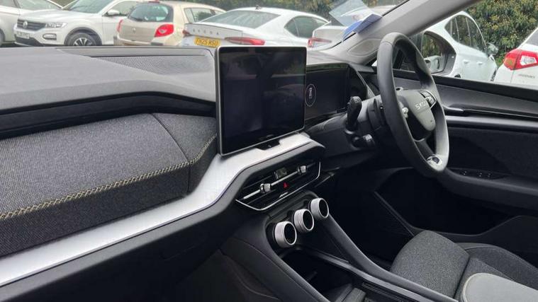 13" satellite navigation touchscreen display, Blind spot detection with door exit warning, Bluetooth system, ChatGPT functionality, Driver alert - Fatigue and drowsiness monitor, Dry display cleaner, Emergency call, Front and rear parking sensors, Front cross traffic assist, Lane assist, PAS, Rear traffic assist, Rear view camera, Tailgate unlocking from outside, Traffic sign recognition, USB C Port x 2 in front centre console, Virtual Cockpit - 10.25" digital display, Voice control system, Wireless charging for two smartphones (15W) with cooling function, Wireless SmartLink for Apple CarPlay and Android Auto, Stop/start function, 2x USB-C in the rear, 8 Speakers, DAB Digital radio, Aero front windscreen wipers with intermittent function, All weather light, Auto dimming rear view mirror, Black wheel arch surrounds, Body colour bumpers, Body colour door mirrors and handles, Cornering light and poor weather light, Electric folding /adjustable/separted heated/folding door mirrors, auto dimming with boarding sports and memory function, Electric front and rear windows, Exterior black decorative trims, Heat insulating glass in windshield, Heated rear window, Ice scraper in fuel tank cap, Invisible tailpipe, LED daytime running lights, LED front fog lamps, LED Headlights, LED rear fog light, LED rear lights, LED third brake light in rear spoiler, Light assistant with automatic headlight control and coming home feature, Logo projection in door mirrors, Rear roof spoiler, Rear side wing doors, Rear window wiper, Safety reflectors on front and rear doors, Unique dark chrome design logo on alloy wheels, Window control switches with black trim, Windscreen wipers with rain sensor, Without engine designation, 1.5l bottle holder points in all door, 1x centre rear reading light, 2 seat bench in 3rd row, 3 configurable smart dials with 32mm coloured display, 3 seat bench in 2nd row, 4 foldable roof handles with rear coat hooks, Ambient interior lighting - Dashboard, front-door stowage compartments, front and rear door panels and footwell lighting, Automatic gear selector on steering column, Chrome interior door handles, Driver/front passenger reading lights, Fabric headlining, Fixed bench 40:60:40 split folding backrests, Front and rear floor mats, Front centre armrest with jumbo box storage compartment, cup holder and 12V socket, Height adjustable front headrests, Isofix child seat fittings in outer middle row rear seats and front passenger with top tether, Manual height adjustment for front passenger seats and thigh support extender, Manual lumbar support for front passenger seat, Manually adjustable steering column, Pollen filter, Rear centre armrest with cupholders, Rear seat boot backrest release, Single front passenger seat, Skoda lettering on steering wheel, Storage pocket including mobile phone pockets on the backs of the front seats, Sunvisors with illuminated vanity mirrors, Three rear height adjustable headrests, Ticket holder on A Pillar, Tri zone climate control, Umbrella in door panel x1 made from sustainable materials, Upper and lower glovebox with card holder and coin compartment, USB C port by rear view mirror for charging only (15W), Variable boot floor, Auto door release and activation of warning lights in the event of an accident, Driver and front passenger airbag with knee airbag and front passenger airbag deactivation, Electric child locks, Electronic parking brake, ESC (incl. ABS+EMD+MSR+ASR+EDL+HBA+DSR+RBS+ESBS+MCB+TSA+XDS), Front assist with braking reaction to vehicles, pedestrians and cyclists, Front disc brakes, Fuel cut off safety device, Height adjustable front 3 point seatbelts + pretensioners, Hill hold assist, Junction assist with automatic emergency braking, Rear disc brakes, Safety vest holder in door, Seat belt reminder for all seats, Three point rear seat belts, Two tone horn, Tyre pressure monitor, Alarm with interior monitoring and tilt sensor with safe function, Anti-theft wheel bolts, Immobiliser, Remote central locking with 2 keys, Breakdown kit, Tool kit,