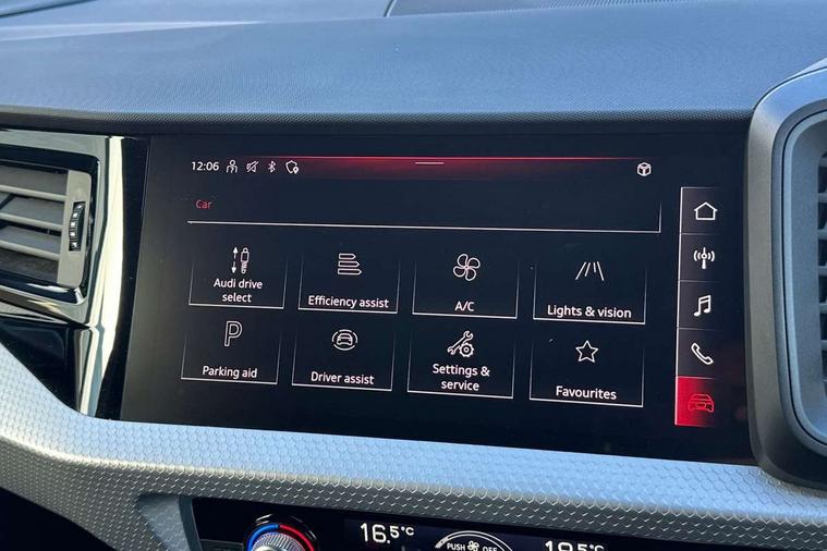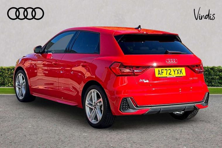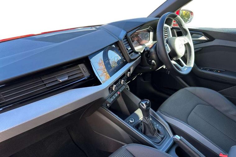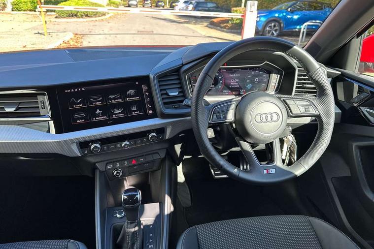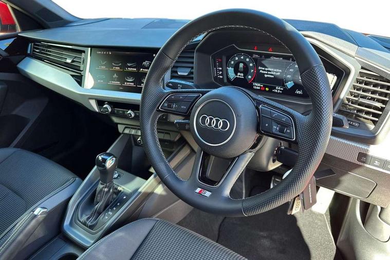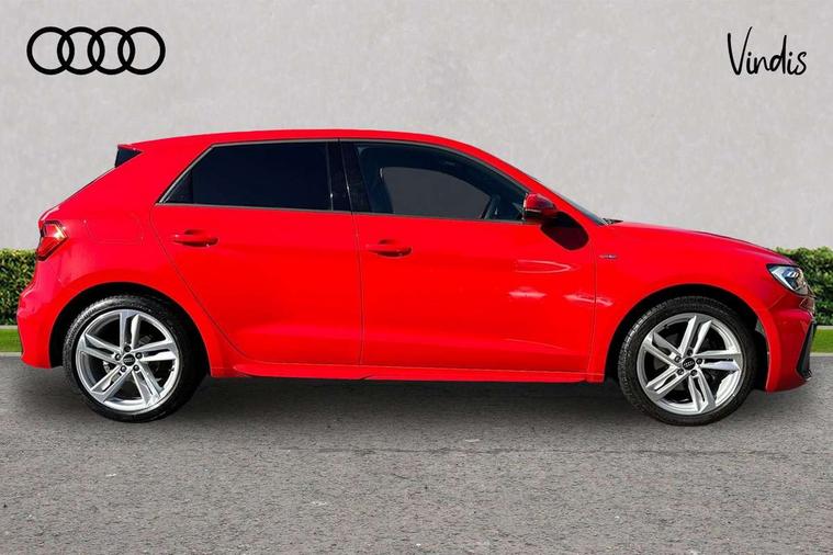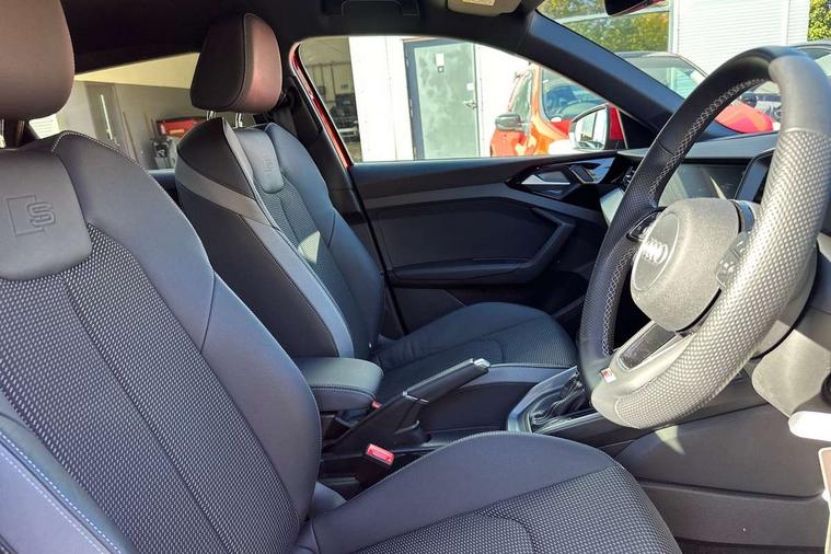 Audi drive select - power steering assistance + engine + gear shift 3 preset modes (auto, dynamic, efficiency and an Individual mode), Automatic start/stop system, Bluetooth interface, Cruise control, Driver's information system, Electromechanical power steering, Emergency e-call, Emergency services call system, Lane departure warning system, Service interval indicator, Speed limiter, Voice control system, Washer fluid level indicator, Sports suspension, 1 x SDXC card reader, 2 x USB type C connection points, DAB Digital radio, MMI radio plus with 8.8" colour MMI display screen and MMI touch, Auto dimming rear view mirror, Body coloured door mirrors, Door sills with aluminium inlays and S Line logo, Electric front and rear windows, Electrically adjustable, heated, folding door mirrors with integrated LED side indicator, Front side air inlets in grained matt black and C frame in titanium black, Heat insulating glass windscreen and side windows, Heated rear windscreen, High level LED brake light, LED headlights with LED rear lights + dynamic rear indicators + headlight adjustment and high beam, turning light + LED daytime running lights, Radiator grille and rear diffuser in matt titanium black, Radiator protective grille frame in matt aluminium silver, Rain and light sensors, Rear fog lights, Rear side wing doors, Rear wing door, Rear wiper, S line badges on front wings, Side front spoiler lips in grained matt black, 12V socket in centre console with two cup holders, 3 rear seats with headrests, 3 seat bench in 2nd row, 40:60 Split folding rear seat or folded fully, Black cloth headlining, Driver and passenger seat with manual height adjust with forward and backwards adjustment, Front and rear black floor mats with contrast stitching in fine silver, Front head restraints, Front passenger seat, Height and reach adjustable steering wheel, ISOFIX child seat mounting for front passenger and outer rear seats including top tether attachment point of outer rear seats, Leather gear knob with aluminium trim, Luggage compartment light with front and rear reading lights, Manually adjustable lumbar support in front seats, Stainless steel pedals, LED interior lighting pack - A1, Luggage compartment pack - A1, S line exterior styling pack - A1 Sportback, Technology pack - A1 Sportback, 3x3 point rear seatbelts, Audi pre-sense front with pedestrain and cyclist recognition, Brake assist function, Driver and front passenger airbag with front side and head airbags, Electronic Stability Control including ABS, EBD, ASR and EDL, Front passenger airbag deactivation switch, Hill hold assist, Manual rear child locks, Seatbelt height adjustment for front seats, Seatbelt monitoring, Tyre pressure warning light, Warning triangle and first aid kit, Anti theft alarm, Anti theft wheel bolts and loose wheel warning, Immobiliser, Remote central locking with 2 foldaway keys, Aluminium trim for control switches, air vents and digital instrument cluster, Silver grey inlays polygon structure in diamond paint finish, Structured grey accent areas including air vents, door handle recesses and centre console in quartz paint finish,