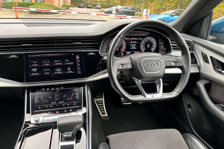 10.1" and 8.6" Dual colour touchscreens, Audi connect safety and service (e-call), Audi drive select, Audi lane departure warning, Audi phone box with wireless charging, Audi smartphone interface, Automatic start/stop system, Electro-mechanical PAS, Low washer fluid indicator, MMI - Multi Media Interface control system, MMI navigation plus with MMI touch, On board computer, Operating buttons in black, glass look with haptic feedback, Power operated tailgate, Rear view camera, Service interval indicator, Virtual cockpit, Voice control system, Adaptive air suspension, Diesel particulate filter, 2 USB ports, Audi music interface, Aux-in socket, DAB Digital radio, Acoustic windscreen, Auto dimming rear view mirror, Coming/leaving home lighting function, Electric front+rear windows, Electric/heated/folding door mirrors with memory, HD Matrix LED headlights with dynamic front and rear indicators, Headlight washers, Heat insulating glass, LED daytime running lights, LED signature DRL, Privacy glass, Rain and light sensors, Rear wiper, S line badges on front wings, S Line body styling, S line front and rear bumpers, air inlets and door trim strips, 4 way electrically adjustable lumbar support for drivers seat, 4 way electrically adjustable lumbar support for front passenger seat, 40:20:40 split folding rear bench seat, Black cloth headlining, Door sill trims with S line logo, Front centre armrest with storage compartment and angle adjustment, Front head restraints, ISOFIX on front passenger and rear outer seats, Luggage compartment sill protection in stainless steel, Rear centre armrest with 2 cupholders, Rear headrests, Self-locking centre differential, Stainless steel pedals, Sunvisors with illuminated vanity mirrors, Tool kit, Top tether anchor plate for isofix child seat, 3 point seatbelts on all seats, ABS, Curtain airbags, Driver and passenger airbags, EDL + ASR, Electromechanical parking brake, Electronic stability control, ESP, Front passenger airbag deactivation, Front side airbags, Hill descent control, Hill hold assist, Pre sense front, Predictive pedestrian protection, Seatbelt warning, Traction control, Tyre pressure monitoring system, Warning triangle and first aid kit, Anti theft alarm, Anti-theft wheel bolts and wheel loosening detection, Immobiliser, Keyless Go access/ignition system, Remote central locking, Tyre repair kit,