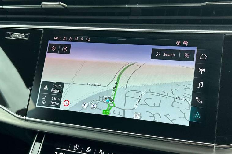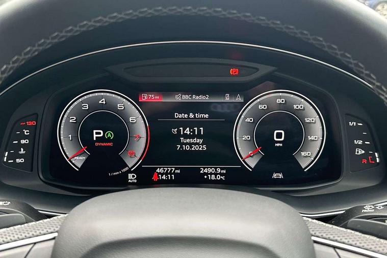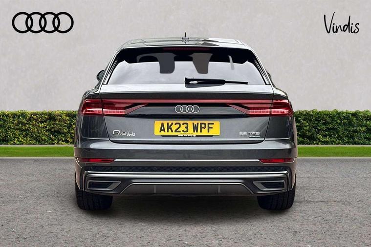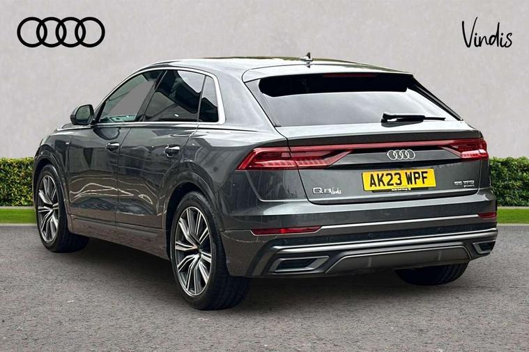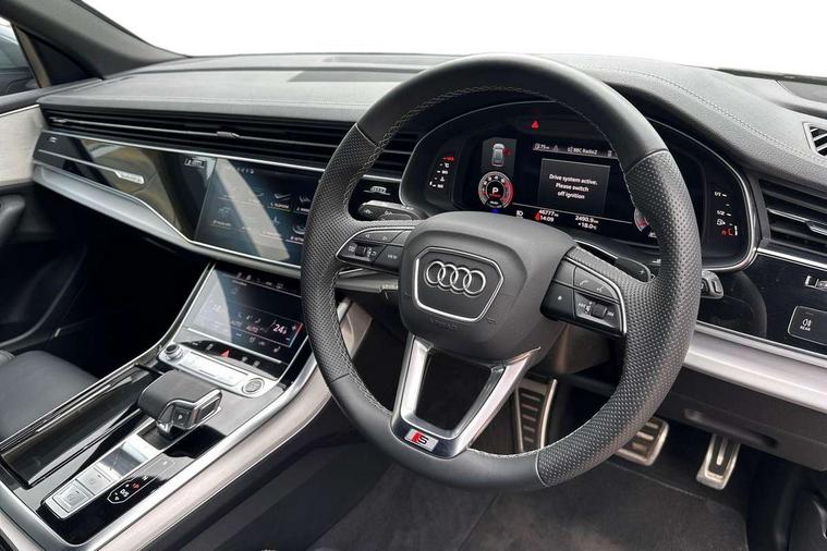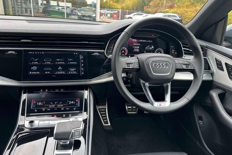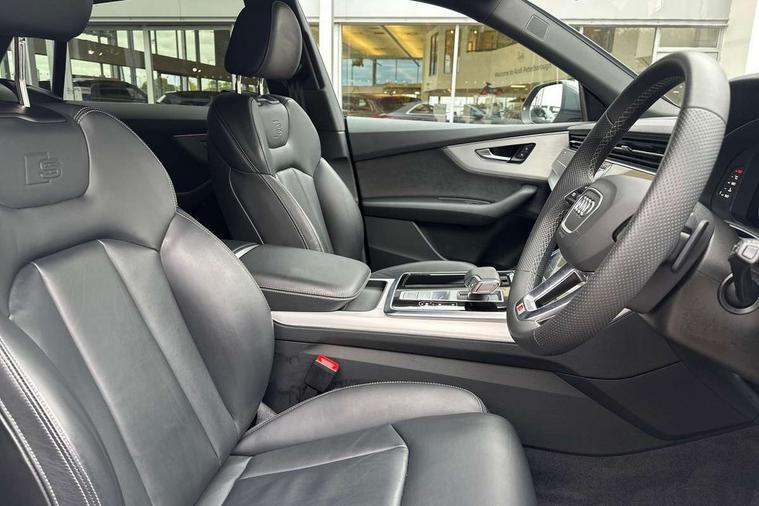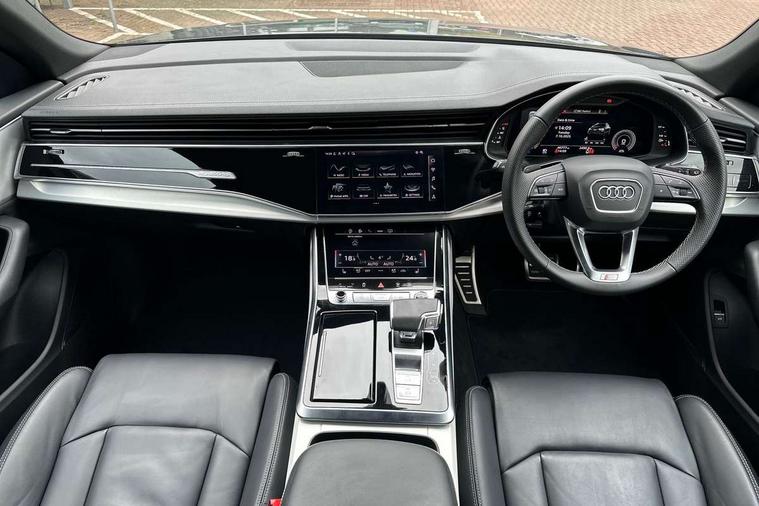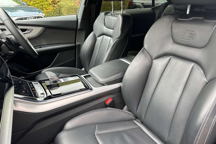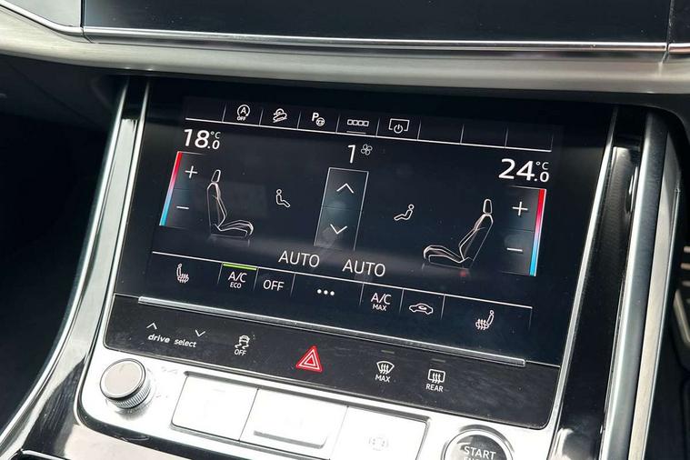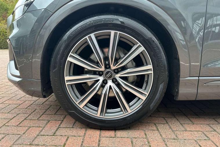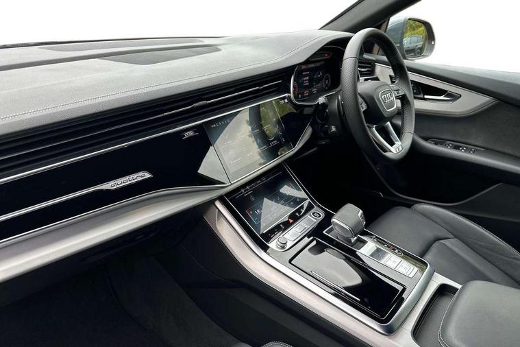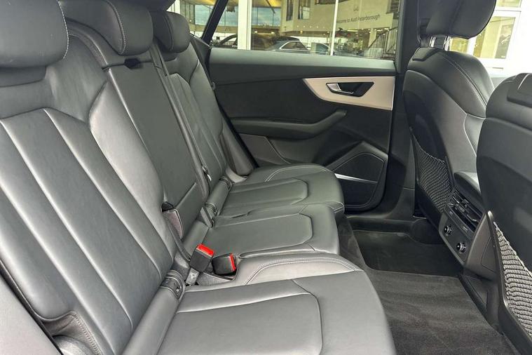 10.1" and 8.6" Dual colour touchscreens, Audi connect safety and service (e-call), Audi connect with Amazon Alexa Integration, Audi drive select, Audi parking system plus includes 360 degree display with front and rear sensors, Audi phone box light with wireless charging, Audi virtual cockpit - 12.3" high resolution LCD display with fully customisable instrument cluster, Automatic start/stop system, Electro-mechanical PAS, Low washer fluid indicator, MMI - Multi Media Interface control system, MMI navigation plus with MMI touch, Natural voice recognition, On board computer, Operating buttons in black, glass look with haptic feedback, Power operated tailgate, Rear view camera, Service interval indicator, Smartphone interface includes wireless Apple carplay/Android Auto, 48V Mild hybrid technology, 85 litre fuel tank, Adaptive sport air suspension, Quattro all wheel drive with self locking centre differential, Audi music interface with 2 USB ports with charge and data functions, Audi sound system with 6 channel amplifier, 180 watt amplifying capacity and 10 loudspeakers including subwoofer, Aux-in socket, DAB Digital radio, 3rd brake light, Acoustic windscreen, Aluminium window trim, Audi HD Matrix LED headlights with dynamic front and rear indicators, Auto dimming frameless rear view mirror, Body colour door mirrors, Coming/leaving home lighting function, Electric front+rear windows, Electrically folding auto dimming/adjustable/heated door mirrors with memory function, LED side indicators and kerb view function for passenger side, Headlight washers, Heat insulating glass in windshield, Illuminated door sill trims with S line logo, LED signature daytime running lights, Platinum grey front spoiler lip and diffuser insert with honeycomb grille in black, Privacy glass - dark tinted rear and rear side windows from B-pillar backwards, Rain and light sensors, Rear side wing doors, Rear wiper, S line badges on front wings, S Line body styling, S line bumpers in full body colour paint finish, S line roof spoiler, S Line side skirts, S line side ventilation grille, 2 zone automatic climate control, 3 bench rear seats in 2nd row, 4-way lumbar support for front seats, 40:20:40 split folding rear bench seat, Audi phone box light, Black cloth headlining, Comfort front centre armrest, Driver seat memory function, Electrically adjustable front seats, Front head restraints, Front/rear floor mats, Heated front seats, ISOFIX child seat mounting for front passenger seat and 2 outer rear seats with top tether child seat mounting for all 3 rear seats, LED interior ambient lighting, Luggage compartment sill protection in stainless steel, Rear centre armrest with 2 cupholders, Rear headrests, Seat cushion displaceable by 100mm in the ratio 60:40, Single front passenger seat, Stainless steel pedals, Sunvisors with illuminated vanity mirrors, 3 point seatbelts on all seats, Audi pre sense front, Child locks on rear doors, Driver and front passenger, front side and curtain airbags, Electromechanical parking brake, Electronic Stability Control (ESC) including ABS, ASR and EDL, Front passenger airbag deactivation, Hill descent control, Hill hold assist, Predictive pedestrian protection, Seatbelt monitoring, Traction control, Tyre pressure loss indicator, Warning triangle and first aid kit, Anti theft alarm with tow away protection, Anti-theft wheel bolts and wheel loosening detection, Immobiliser, Keyless go with remote central locking, Dark matt brushed aluminium inlay, Tool kit, Tyre repair kit,