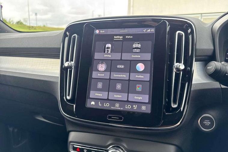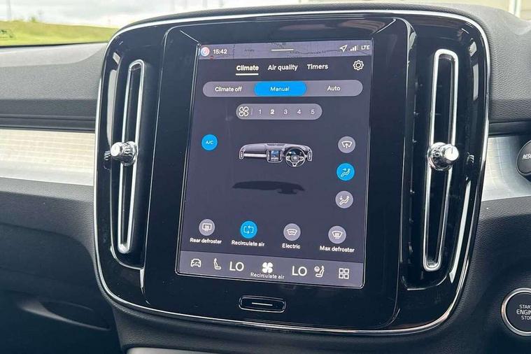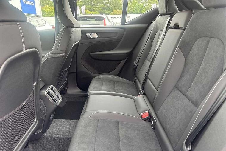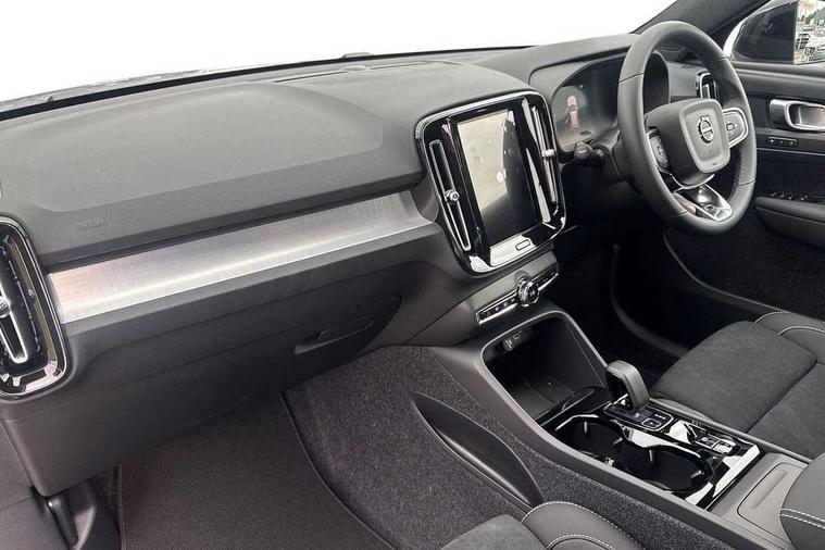 12.3" Progressive Driver Display, 9" centre console portrait touch screen, Adjustable steering wheel force, Android auto (Wired), Apple carplay (wired), Bluetooth handsfree system, Driver alert control, Driver assistance (pilot assist and adaptive cruise control), Driver awareness - Blind spot information system with steer assist, cross traffic alert with autobrake and rear collision warning and mitigation, E-call, Front and rear parking sensors, Front park assist, Google automotive services - Enabled entertainment apps, navigation with google maps, voice recognition with google assistant, Hands free power tailgate, Intelligent speed assistance, Lane keeping aid, Oncoming Lane Mitigation, Speed sensitive steering, Volvo cars services with app - Driving journal, emergency and breakdown call, engine remote start, remote door locking/unlocking and vehicle dashboard, Wireless/Inductive Mobile Phone Charging, Automatic transmission with start/stop and manual change functions, Dynamic chassis, DAB Digital radio, Steering wheel mounted remote controls, Adaptive brake lights with high level LED brake lights, Auto dimming feature for exterior door mirrors, Auto dimming interior mirror, Auto folding and heated power door mirrors, Automatic headlamp levelling, Automatic LED Headlights + Active high beam incorporating daytime running lights, Front aluminium tread plates, Front and rear electric windows, High gloss black front and rear skid plate, High gloss black front bumper deco, High gloss black mesh front grille with high gloss black surround, High gloss black window trim, Home safe and approach lighting, Integrated roof rails in high gloss black, LED front fog lights, Puddle lights, Rain sensor with automatic windscreen wiper activation, Rear side wing doors, Rear wiper, Roof antenna, Roof spoiler, Visible VIN plate, 12V socket in front tunnel console and luggage compartment, 2-Zone electronic climate control with CleanZone air quality system and pollen filter, 3 seat bench in 2nd row, 3 Spoke tailored steering wheel with chrome trim, 60/40 versatile split folding rear seat, Centre console cupholders and storage, Charcoal carpet and floor mats, Charcoal headlining, Connect suede textile/microtech upholstery, Flexible load floor and grocery bag holder, Front headrests, Front seat cushion extensions, Glovebox bag hook, Heated front seats, Height adjustable passenger seat, Height/reach adjustable steering column, High gloss centre tunnel deco, High level illumination - Front door pocket, front side step (under door), tailgate, instrument panel, front door inlay, rear courtesy&reading lights, Integrated waste bin, Isofix attachments on outer rear seats, Load cover, Load protection net, Mid level illumination - Front footwell, luggage & glovebox compartment, front cabin courtesy & reading lights, illuminated vanity mirrors+ticket holder, Multi directional lumbar support for driver and passenger seat, Power driver seat with memory + exterior mirrors memory, Rear armrest with cupholders, Rear headrests, Single front passenger seat, Underfloor luggage compartment storage, Climate pack without heated front seats - XC40, 3x3 point rear seatbelts, City safety with steering support with Pedestrian + cyclist + front collision warning with full auto brake and rear auto brake, Driver and passenger airbags, Drivers knee airbag, Electronic parking brake with auto hold, First aid kit, Front and outer rear seatbelt reminder and pretensioners, Front seats SIPS airbags, Hill descent control - Off-road drive mode, Hill start assist, IC (Inflatable Curtains) - Full Length, Passenger airbag cut-off device, Power child locks on rear doors, Road sign information display, Run off Road Protection, SIPS (Side Impact Protection System), Slippery road and hazard light alert, Stability and Traction Control with Spin control, Engine Drag Control and Corner Traction Control, Tyre pressure monitoring system, Vehicle deceleration control with Anti-lock Brake System, Electronic Brake Distribution and Emergency Brake Assist, Warning triangle, WHIPS whiplash protection system - front, 2 x Key integrated remote control central locking including with deadlocking system and auto open/close windows, Anti-theft alarm including immobiliser/volume sensor + level sensor, Keyless drive includes keyless entry and keyless start, Locking wheel nuts,