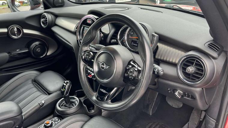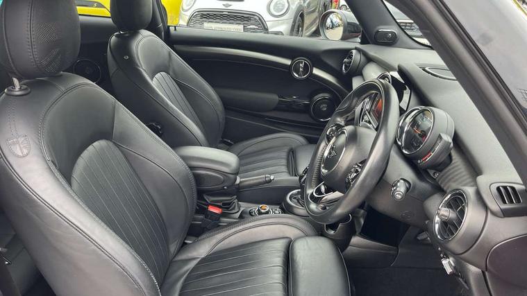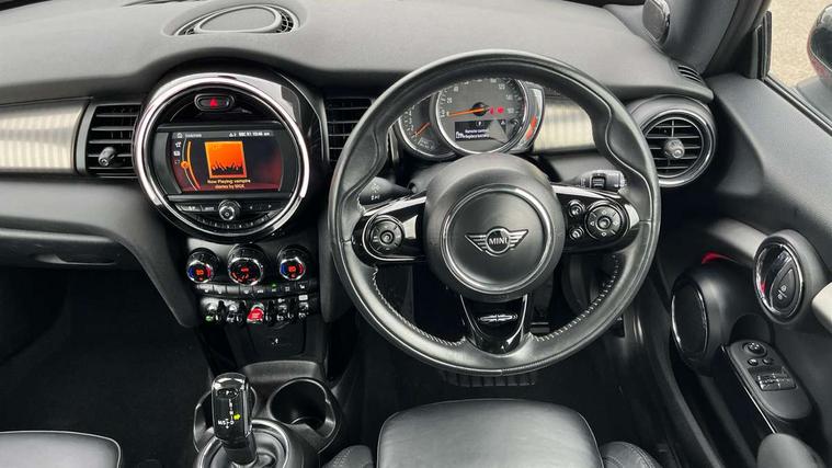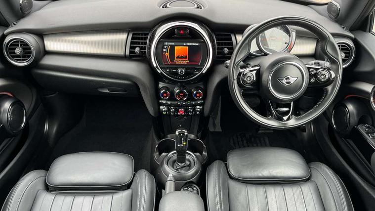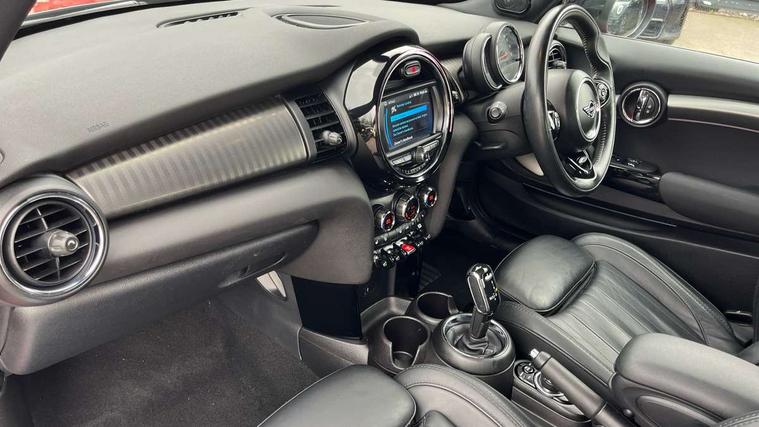 Automatic start/stop function with brake energy recuperation, Compatible mobile phone bluetooth with audio streaming, Electro-mechanical speed dependant steering assistance, Instrument cluster, Mini E-call, MINI TeleServices, On board computer, Service interval indicator, Double Vanos system, Fully variable valve control, Gear change indicator display, High precision injection, Steptronic transmission with double clutch, 6.5" touchscreen with LED ring, FM tuner and DAB digital radio, Automatic headlight activation switch, Body colour fuel filler cap, Chrome border high gloss black slats radiator grille, Chrome line exterior, Dynamic brake lights, Electric front+rear windows, Heated rear window, Heated windscreen washer jets, LED headlight with closed ring and daytime driving lights, Left exhaust tailpipe with chrome finisher, Metal door sill strips with MINI imprint, Model logo Cooper on right of tailgate, Radiator grille bars, tailgate handle, lower front grille grating, rear central fog light in chrome, Rain sensor window wipers, Rear fog lights, Rear LED lights with union jack design, Rear window wiper, Side scuttle panel with integrated indicator, Sun/heat protection glass, White indicator lenses, 12V Accessory socket in centre console, 4 lashing eyes in luggage compartment, 60/40 split folding rear seat, Air vents, gear lever base, speakers in doors, door handles in chrome, Carbon Black colour line, knee roll and door armrests, Chrome interior highlights, Cupholders, Front and rear head restraints, Front and rear isofix with front passenger airbag deactivation, Glove compartment, Height and length steering column adjustment, Interior lighting with 12 basic colours selectable via toggle switch in roof, Leather gearshift lever and handbrake gaiters, LED reading lights, vanity mirror lights, front foot well light and spotlight on front seats, Manual air conditioning, Mechanical seat adjustment, driver seat height adjust, forward/back and front seats backrest, Mini logo projection on floor from drivers exterior mirror, MINI Yours leather steering wheel with silver contrasting stitching with MINI Yours badge, Multifunction steering wheel, Storage compartments in doors, Sunvisors with vanity mirrors, 3 point seatbelts on all four seats, 6 Airbags - front, side, head and seat belt tensioners, Anti-lock braking system (ABS), DSC - Dynamic Stability Control, Front and rear disc brakes, Hill start assist, Single tone fanfare horn, Tyre pressure monitoring system, Alarm system with tilt sensor, monitoring doors, bonnet interior and tailgate, Electronic vehicle immobiliser, Start/stop toggle with keyless go, Chrome line interior, Tool kit,