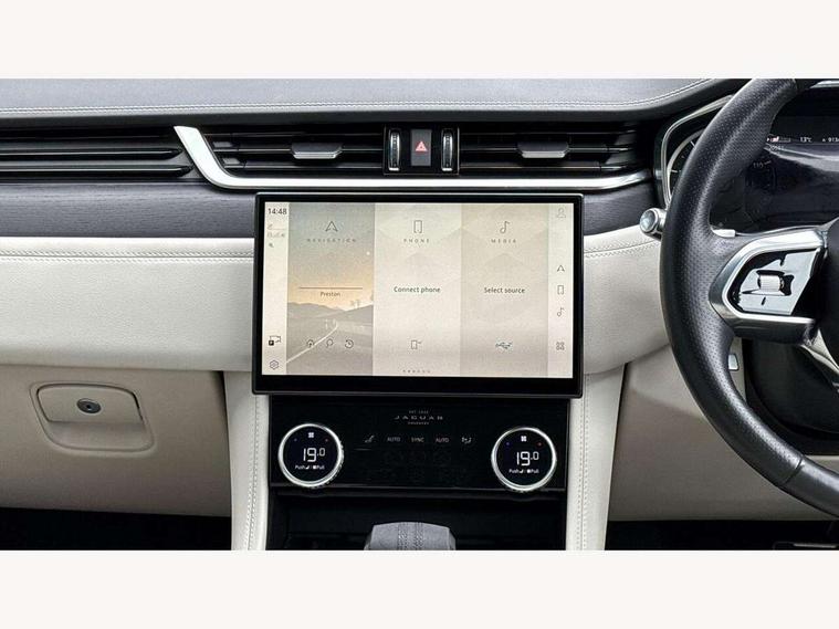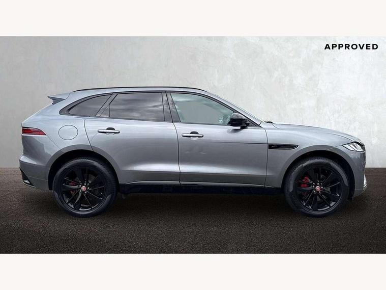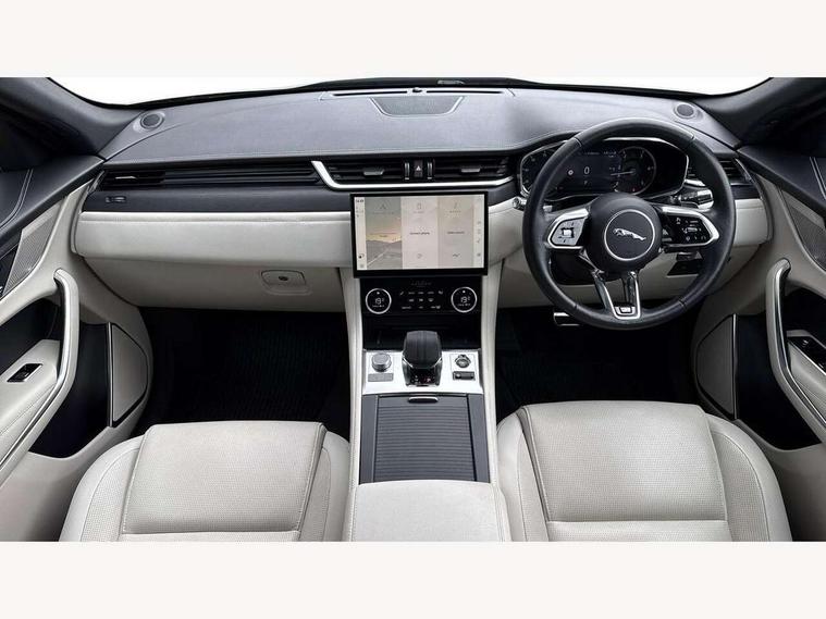 11.4" touchscreen, Android Auto, Apple car play, Bluetooth connectivity, Driver alert system, Driver condition monitor, eCall emergency call system, Eco driving style assistant, Electric power assisted steering, InControl remote, Jaguar Toggle shift selector, Lane departure warning system, Lane keep assist, Outside temperature gauge, Personalisation profile management, Pivi pro connected navigation system with app interface and media storage, Pro services and wifi hotspot, Push button starter, Service interval indicator, Speed proportional steering, Start up sequence with movement in dials and lighting, Traffic sign recognition with adaptive speed limiter, Trip computer, Voice control system, 8 speed automatic transmission, All terrain progress control, All Wheel Drive (AWD), Open differential with torque vectoring by braking, AM/FM radio, Bluetooth streaming, DAB Radio (Digital Audio Broadcasting), Dynamic volume control, InControl apps, InControl protect, iPod integration, 3 flash lane change indicators, Animated directional indicators, Approach Illumination, Auto dimming rear view mirror, Automatic headlights, Electric windows with one touch open/close and anti trap, F-Pace and R Dynamic badge, Gloss black door mirrors, Gloss black roof rails, Green tinted glass, Heated front windscreen + heated washer jets, Heated rear window with timer, Jaguar script and leaper, LED High level third brake light, LED tail lights, Non acoustic front windscreen, Privacy glass, R Dynamic badge on side door, Rain sensor windscreen wipers, Rear fog lights, Rear metal tread plates, Rear side wing doors, Rear wiper, Trailer stability assist, Variable front intermittent wipers, 12V power point front, 3 rear headrests, 3 seat bench in 2nd row, Air distribution speed, Bright metal foot pedals, Centre armrest console, Centre console with side storage, Deletion loadspace storage rails, Door sill tread plates, Fold flat front seats, Front centre armrest with storage compartment, Front door storage space, Glovebox finisher with jaguar script, Heated steering wheel, Hooks in loadspace, Illuminated glovebox, Interior front door handles with separate locking switches, ISOFIX on outer rear seats, Jaguar sense, Luggage tie downs in loadspace, Mist sensing, Multifunction steering wheel, Overhead lighting console, Overhead stowage for sunglasses, Passive front head restraints, Premium cabin lighting, Premium carpet mats, R-Dynamic branded leather steering wheel, Rear air vents, Rear armrest with twin cupholders, Rear centre headrest, Rear door storage space, Reversible boot floor, Satin chrome gearshift paddles, Shopping bag hook, Single front passenger seat, Sunvisors with illuminated vanity mirrors, Twin front cupholders with cover, Black Exterior pack - F Pace R-Dynamic/Sport, Exterior pack - F Pace R-Dynamic, Online Pack with data plan - F-Pace, 355mm front brakes and 325mm rear brakes, 3x3 point rear seatbelts, ABS, All surface progress control (ASPC), Brake pad warning light, DSC - Dynamic Stability Control, Electric parking brake (EPB), Emergency brake assist, Front airbags with passenger seat occupant detector, Front and rear seatbelt reminder, Front side airbags, Full length side window curtain airbag, Hill launch assist, Power operated child locks, Torque vectoring brake, Traction control, Tyre pressure monitoring system, Immobiliser, Keyless Start, Locking wheel nuts, Perimeter alarm, Remote central locking, Valet mode,