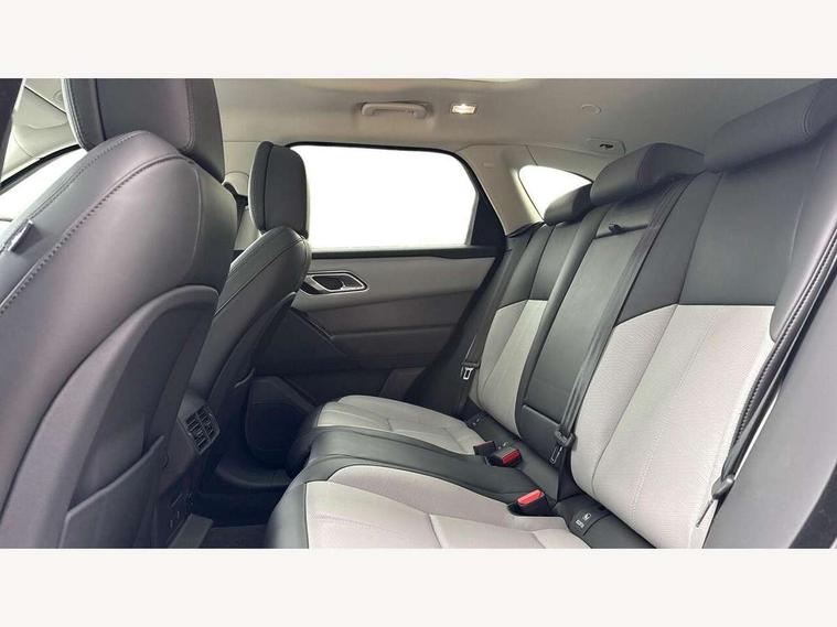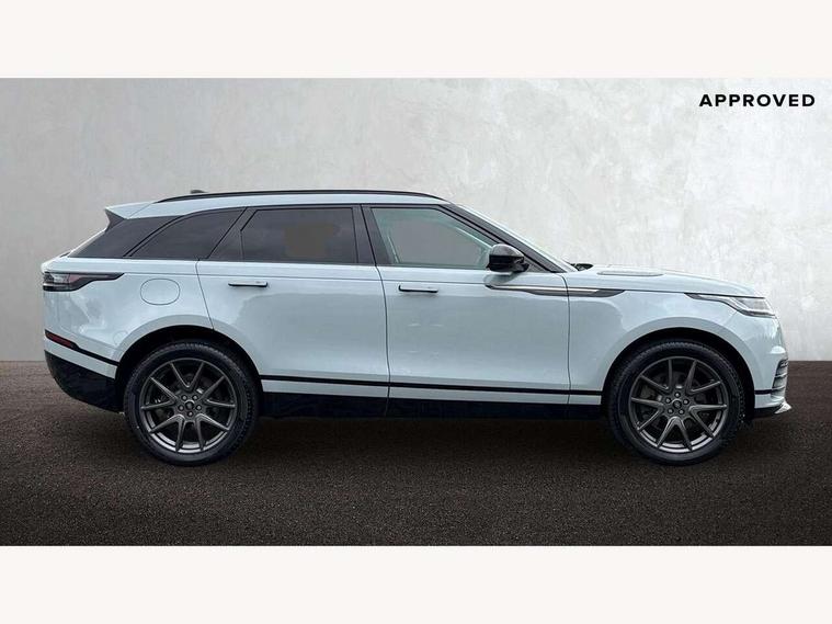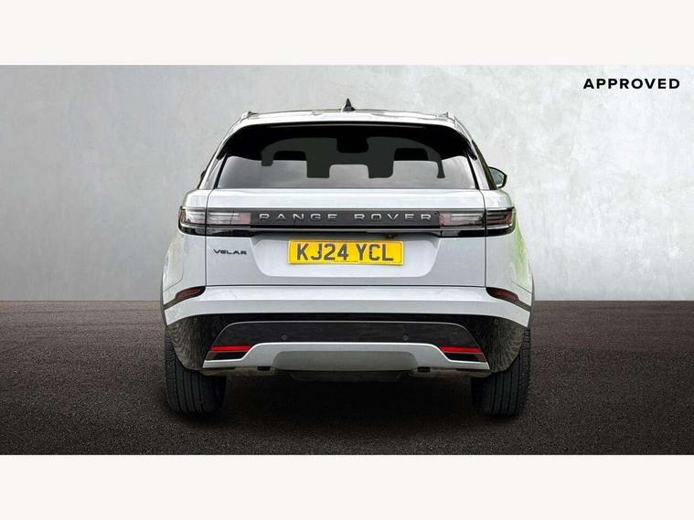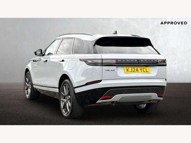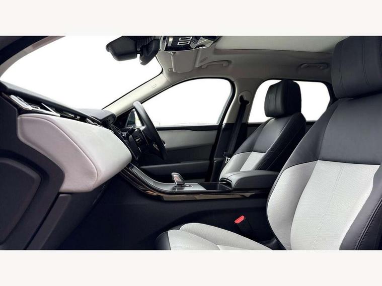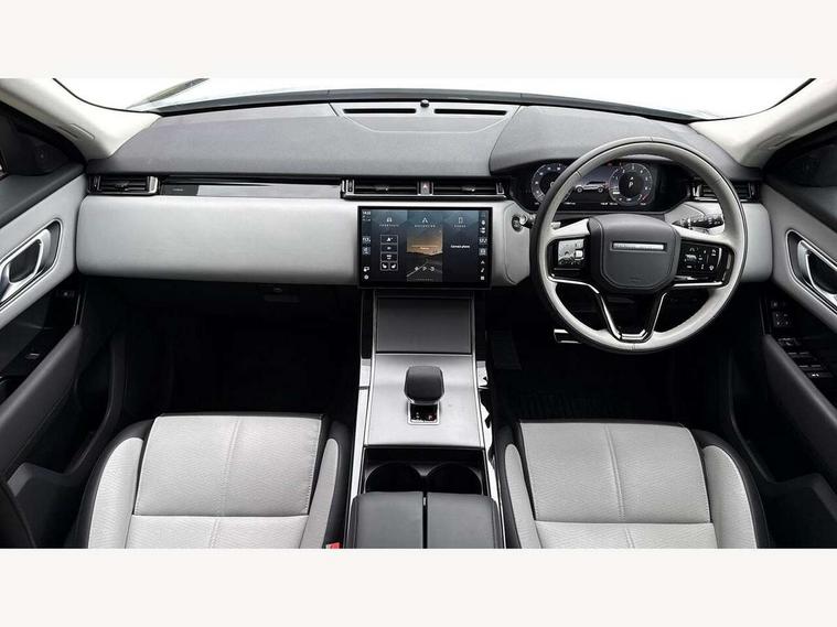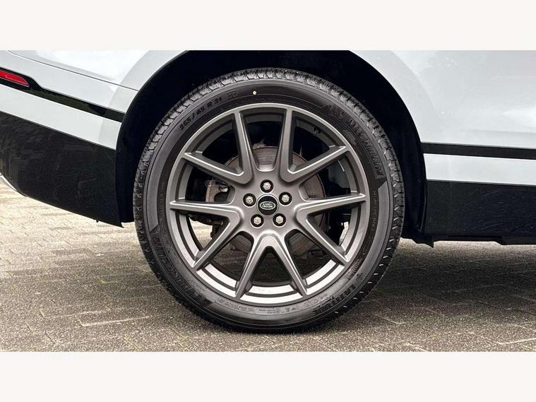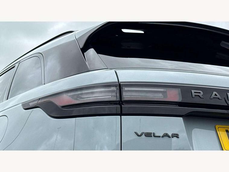 Adaptive cruise control with steering assist, Android Auto, Apple CarPlay, Blind spot assist, Bluetooth connectivity, Brake pad wear indicator warning light, Driver condition monitor, eCall emergency call system, Front and rear parking aid, InControl remote, Land Rover InControl apps, Lane keep assist, Pivi pro with connected navigation, Rear collision monitor, Rear traffic monitor, Service indicator, Speed proportional electronic power assisted steering (EPAS), Traffic sign recognition with adaptive speed limiter, Trip computer, Voice control system, Wireless device charging, 7kw on board charger, 8 speed automatic transmission, AC/DC charging, Adaptive dynamics, All terrain progress control, Coil suspension system, Home charging cable, Open differential with torque vectoring by braking, Public charging cable, Single speed transfer box, DAB radio, Steering wheel mounted controls, 3rd brake light, Acoustic laminated windscreen, Auto dimming interior rear view mirror, Automatic headlamp levelling, Automatic headlights, Body coloured bumpers, Boot protection plate, Electric windows with one touch open/close and anti trap, Flush deployable exterior door handles, Follow me home headlights, Heated rear window with timer, Heated washer jets, Heated windscreen, Metal front tread plates, Metal load space scuff plates, Pixel LED headlights with signature DRL, Power fold, auto-dimming, heated door mirrors with memory and approach lights, Rain sensor windscreen wipers, Rear animated directional indicators, Rear fog lights, Rear side wing doors, Rear wash/wipe, Tailgate/boot lid spoiler, Trailer stability assist, Velar badge, 3 seat bench in 2nd row, Ambient lighting, Bright metal pedals, Carpet mats, Driver/passenger sunvisors with illuminated vanity mirrors, Ebony morzine headlining, Electrically adjustable steering column, Extended leather upgrade, Heated steering wheel, Isofix system on outer rear seats, Loadspace cover, Overhead lighting console, Overhead stowage for sunglasses, Passive front headrests, Rear air vents, Rear centre headrest, Single front passenger seat, Twin front cupholders, Twin sliding front centre armrest, Online pack with data plan - Velar, Power socket pack 2 - Velar, 380mm front brakes and 325mm rear brakes, 3x3 point rear seatbelts, Anti-lock braking system (ABS), Cornering brake control, Curtain airbags, Customer configurable autolock, Door side intrusion beams, Driver airbag, DSC - Dynamic Stability Control, Electronic brake force distribution, Electronic parking brake, Electronic traction control, Emergency braking, Front and rear seatbelt reminder, Hill descent control, Hill launch assist, Low traction launch, Passenger airbag, Power operated child locks, Rear airbags, Roll stability control, Side airbags, Tyre pressure monitoring system (TPMS), Unpainted brake calipers, Global lock and unlock switch on driver door, Immobiliser, Intrusion sensor, Keyless entry, Lock only switch on front passenger door, Locking wheel nuts, Perimetric alarm, Remote central locking, All season tyres,