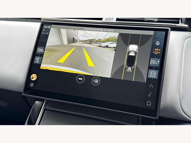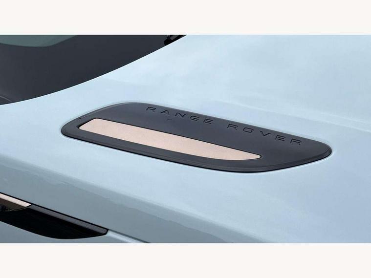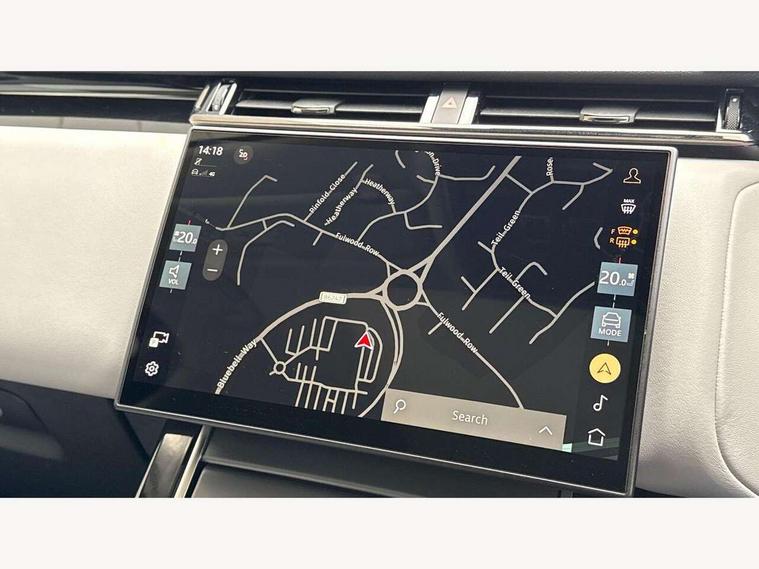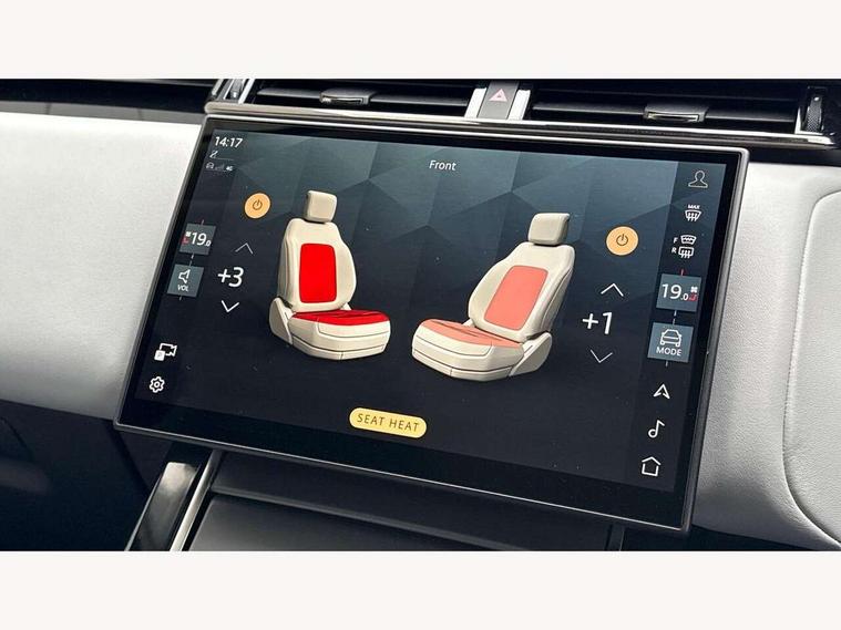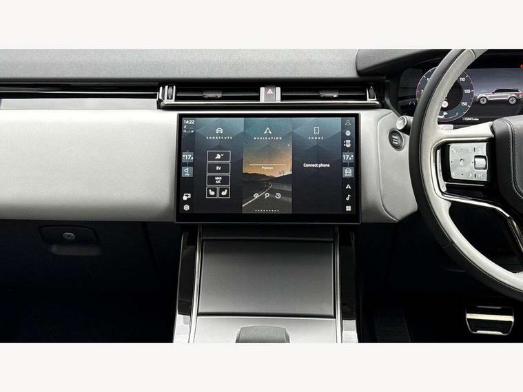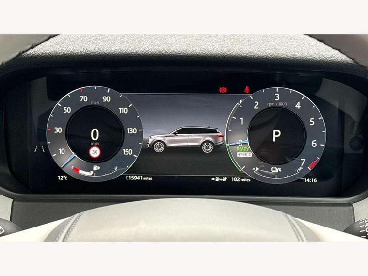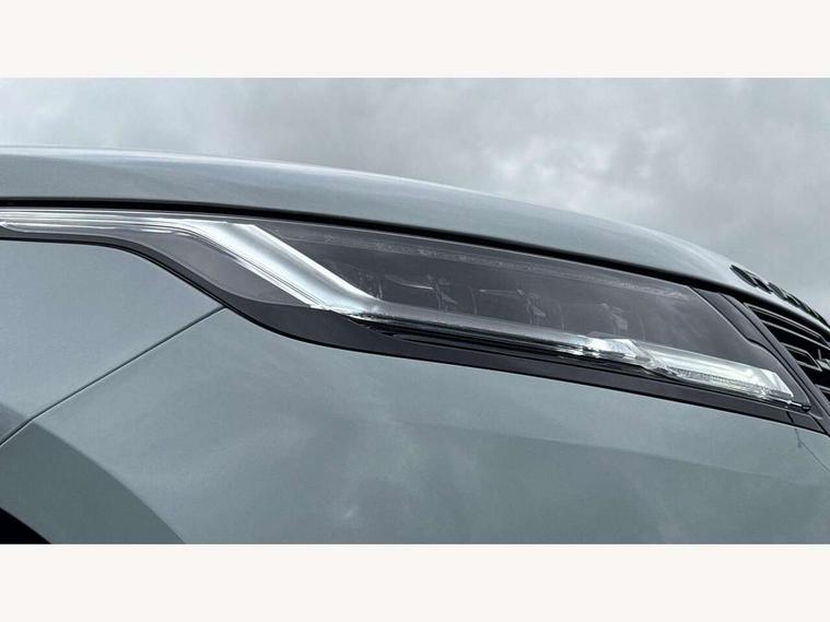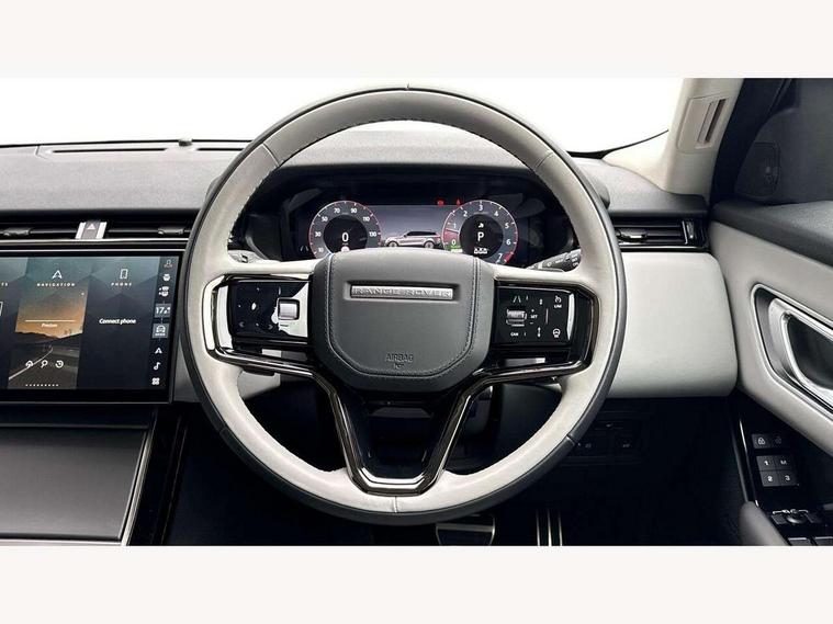 Adaptive cruise control with steering assist, Android Auto, Apple CarPlay, Blind spot assist, Bluetooth connectivity, Brake pad wear indicator warning light, Driver condition monitor, eCall emergency call system, Front and rear parking aid, InControl remote, Land Rover InControl apps, Lane keep assist, Pivi pro with connected navigation, Rear collision monitor, Rear traffic monitor, Service indicator, Speed proportional electronic power assisted steering (EPAS), Traffic sign recognition with adaptive speed limiter, Trip computer, Voice control system, Wireless device charging, 7kw on board charger, 8 speed automatic transmission, AC/DC charging, Adaptive dynamics, All terrain progress control, Coil suspension system, Home charging cable, Open differential with torque vectoring by braking, Public charging cable, Single speed transfer box, DAB radio, Steering wheel mounted controls, 3rd brake light, Acoustic laminated windscreen, Auto dimming interior rear view mirror, Automatic headlamp levelling, Automatic headlights, Body coloured bumpers, Boot protection plate, Electric windows with one touch open/close and anti trap, Flush deployable exterior door handles, Follow me home headlights, Heated rear window with timer, Heated washer jets, Heated windscreen, Metal front tread plates, Metal load space scuff plates, Pixel LED headlights with signature DRL, Power fold, auto-dimming, heated door mirrors with memory and approach lights, Rain sensor windscreen wipers, Rear animated directional indicators, Rear fog lights, Rear side wing doors, Rear wash/wipe, Tailgate/boot lid spoiler, Trailer stability assist, Velar badge, 3 seat bench in 2nd row, Ambient lighting, Bright metal pedals, Carpet mats, Driver/passenger sunvisors with illuminated vanity mirrors, Ebony morzine headlining, Electrically adjustable steering column, Extended leather upgrade, Heated steering wheel, Isofix system on outer rear seats, Loadspace cover, Overhead lighting console, Overhead stowage for sunglasses, Passive front headrests, Rear air vents, Rear centre headrest, Single front passenger seat, Twin front cupholders, Twin sliding front centre armrest, Online pack with data plan - Velar, Power socket pack 2 - Velar, 380mm front brakes and 325mm rear brakes, 3x3 point rear seatbelts, Anti-lock braking system (ABS), Cornering brake control, Curtain airbags, Customer configurable autolock, Door side intrusion beams, Driver airbag, DSC - Dynamic Stability Control, Electronic brake force distribution, Electronic parking brake, Electronic traction control, Emergency braking, Front and rear seatbelt reminder, Hill descent control, Hill launch assist, Low traction launch, Passenger airbag, Power operated child locks, Rear airbags, Roll stability control, Side airbags, Tyre pressure monitoring system (TPMS), Unpainted brake calipers, Global lock and unlock switch on driver door, Immobiliser, Intrusion sensor, Keyless entry, Lock only switch on front passenger door, Locking wheel nuts, Perimetric alarm, Remote central locking, All season tyres,
