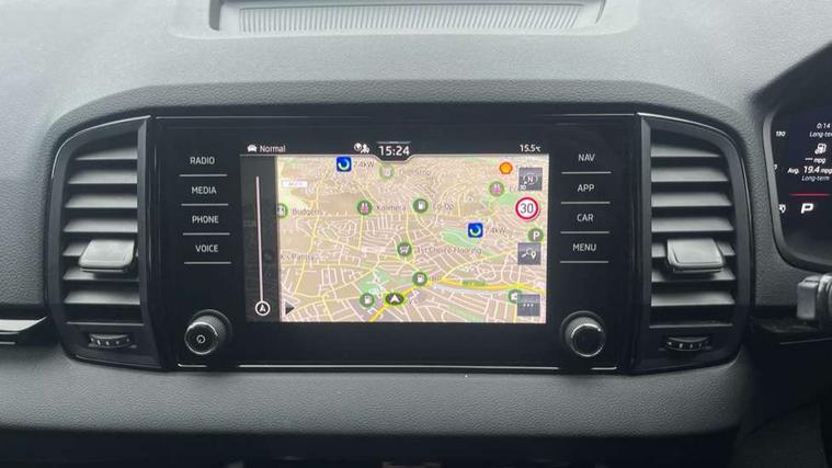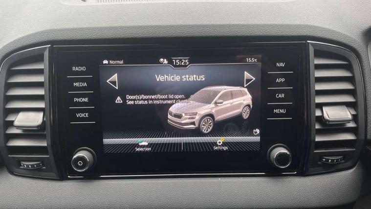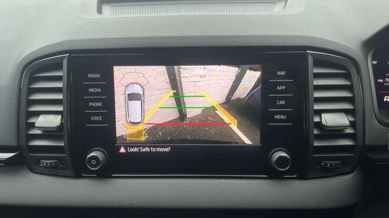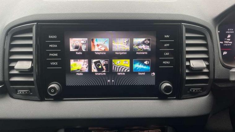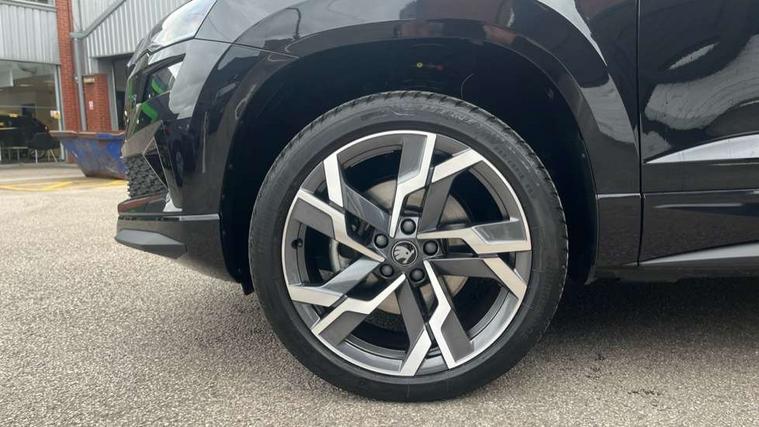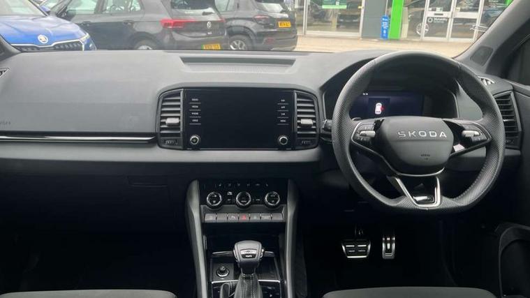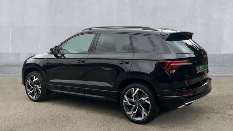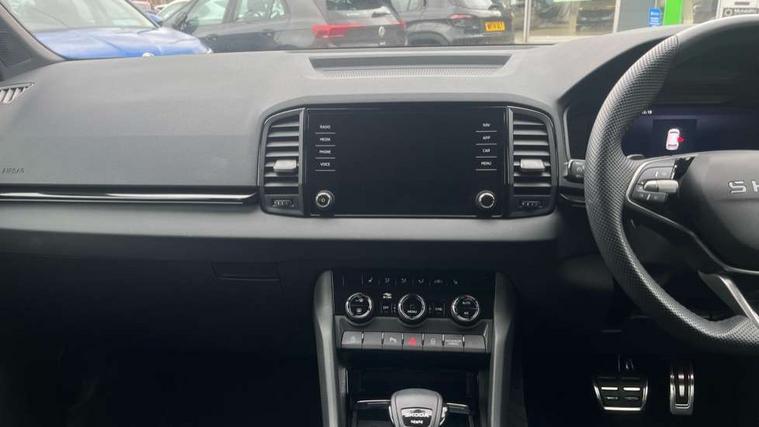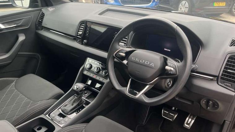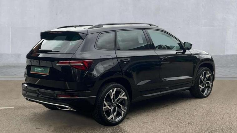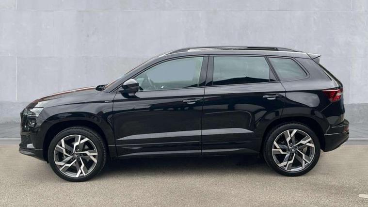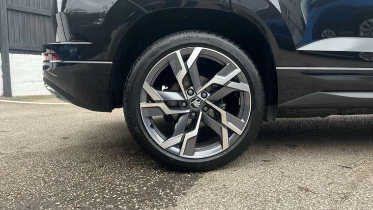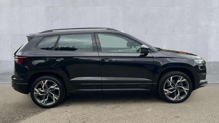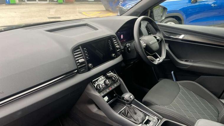 8" Digital display, Advanced driver attention and drowsiness monitor, Emergency services call system, Outside temperature gauge, Sensor for driver assistance systems, Service interval indicator, SmartLink wireless for Apple and wired for Android, Start/stop system with regenerative braking, USB C Port x 2 in front centre console, Virtual Cockpit - 10.25" digital display, Virtual pedal with electrically operated boot door, Wireless smartphone charging, Diesel particulate filter, DAB radio with Bluetooth, USB connection, Acoustic glass, Aero front windscreen wipers with intermittent function, Auto dimming rear view mirror with light and rain sensors, Black door mirrors, Black electric window control buttons, Black radiator grille, Black roof rails, Body colour door handles, Electric front and rear windows with child proof lock, Front door steps with SportLine logo, Heated rear windscreen, LED daytime running lights, LED rear lights with high functionality welcome effect and dynamic indicators, Light assistant (coming/leaving home/tunnel light), Panoramic sliding sunroof, Plastic scuff plates in door apertures, Privacy glass, Protective door side sills in body colour, Rear diffuser, Rear side wing doors, Rear spoiler, Rear window wiper with washer system and intermittent control, Safety reflectors on front doors, Skoda lettering on tailgate in black, Sportline badge on front fender, Sportline decorative inserts with badging, Sports front and rear bumpers, Third brake light, 1.5 litre bottle holders in driver and front passenger door panels, 12V socket in boot, 12v socket in front centre armrest with storage compartment and rear air vents, 2 x Tablet holder, 3 rear height adjustable headrests, 3 seat bench in 2nd row, 3 spoke sports leather heated multifunction steering wheel with DSG paddles, 4 foldable roof handles with rear coat hooks, Black floor carpet, Black roof headlining, Chrome inner door handles, Foldable hooks in the boot, Front head restraints, Height adjustable front three point seats belts with tensioners, Height/reach adjust steering wheel, Ice scraper, Illuminated glovebox, Illuminated luggage compartment, Isofix child seat preparation for front passenger seat, Isofix child seat preparation outer rear, Manual lumbar support for front seats, Pen holder, Pollen filter, Rear boot cover, Rear reading lights, Rear seats fixed folding and divided 60:40, Rubbish bin door, Safety vest holder, Single front passenger seat, Storage box in upper central dashboard closed, Sunvisors with illuminated vanity mirrors, Textile floor mats, Ticket holder, Titan black interior ceiling, Umbrella under passenger seat, Under passenger seat storage compartment, LED Interior lighting pack with Skoda welcome logo - Karoq, Light Pack - Karoq, Non Smokers pack, Automatic door unlocking in case of crash, Automatic fuel cut off in case of crash, Driver airbag, Electronic parking brake with auto hold function, Emergency rear braking signal, ESC (incl. ABS+MSR+ASR+EDS+HBA+DSR+RBS+MKB), Front side airbags, Head airbags, Hill hold control, Knee airbags, Passenger airbag with switch-off function, Pedestrian monitor, Seatbelt reminder signalisation and pretensioner for all seats, Three point seatbelts rear, Two tone horn, Tyre pressure monitor, Alarm with interior monitoring, back up horn and tilt sensor with safe function, Electronic engine immobiliser, Keyless entry and start/stop, Remote central locking with 2 remote folding keys, Black air vent surround, Black centre console, carbon door decor, Satin black dashboard, Satin black door trim, 19" Sagittarius anthracite alloy wheels, Anti-theft wheel bolts protection, Breakdown and tool kit,